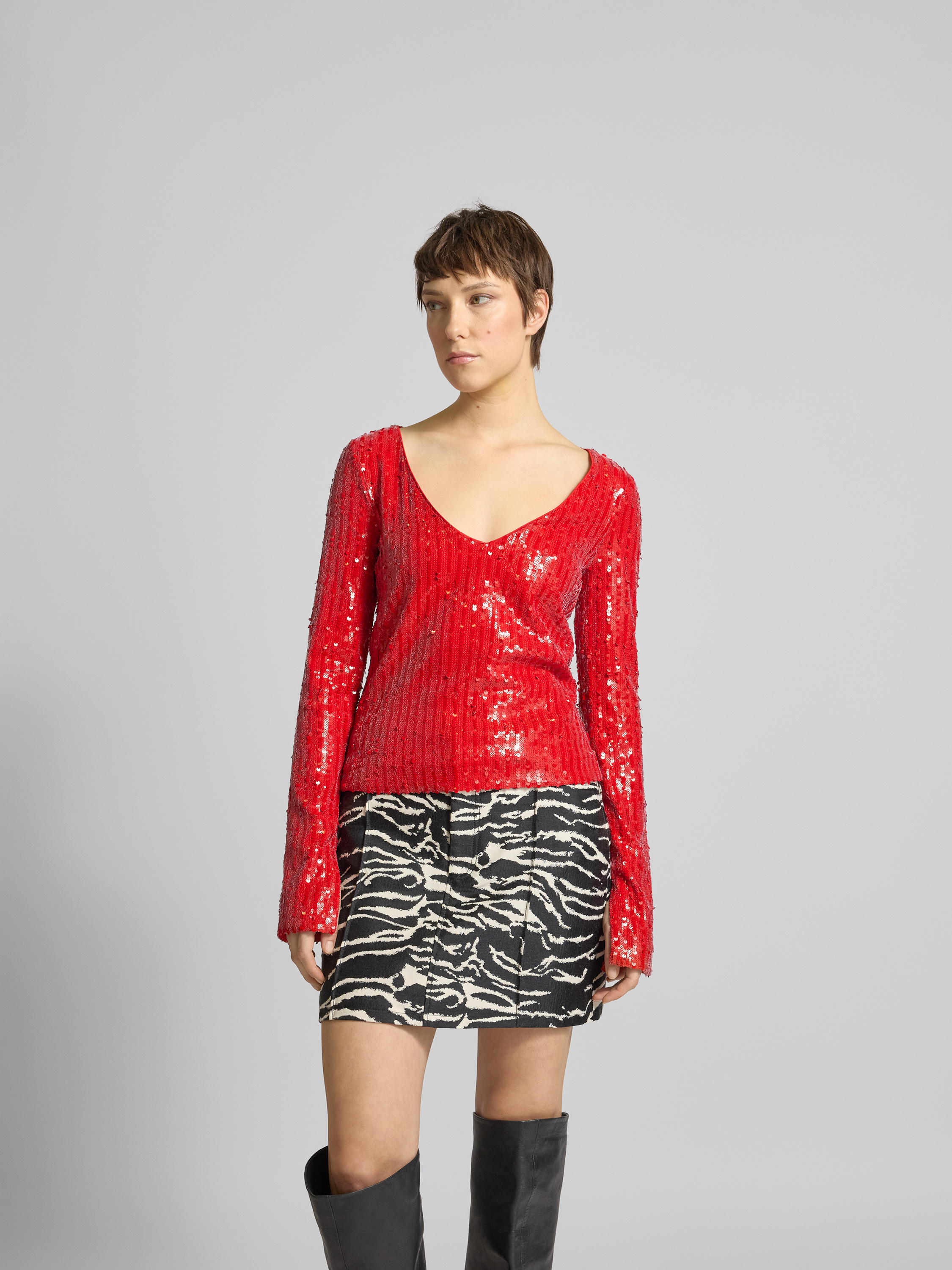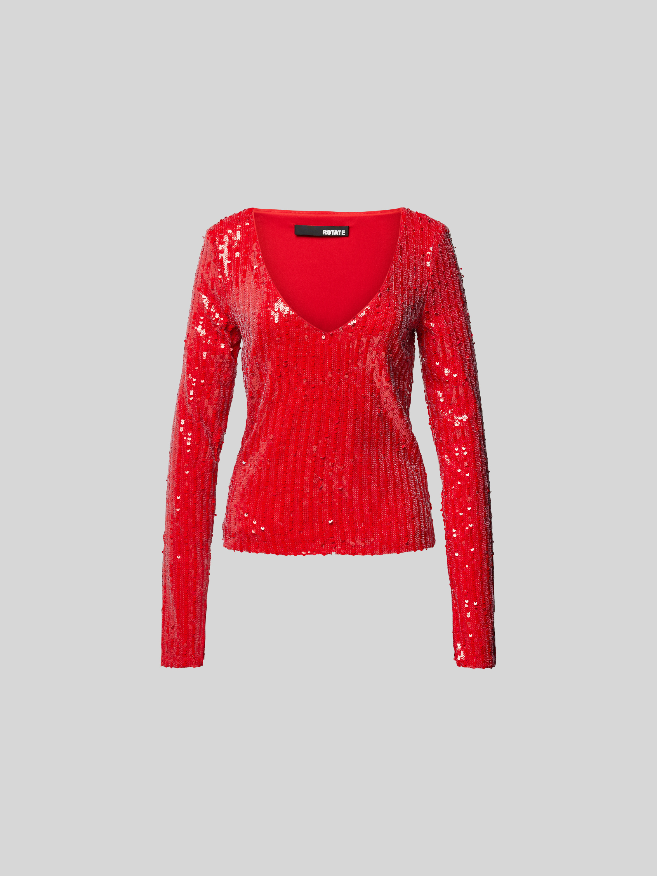 Das Damen Longsleeve von Rotate verbindet einen bequemen Regular Fit mit einem geschmeidigen Material-Mix und Stretch-Anteil, wodurch Bewegungsfreiheit im Alltag ermöglicht wird. Ein V-Ausschnitt und funkelnde Pailletten sorgen für eine lebendige Optik. So eignet sich das Oberteil für unterschiedlichste Anlässe.