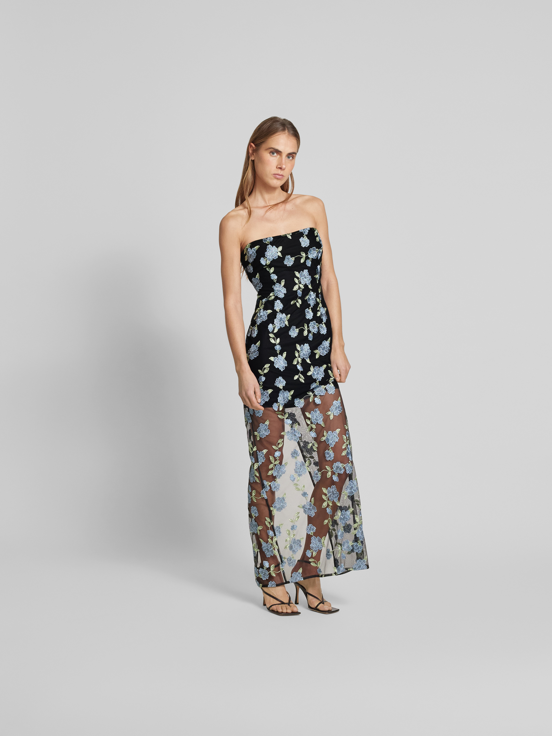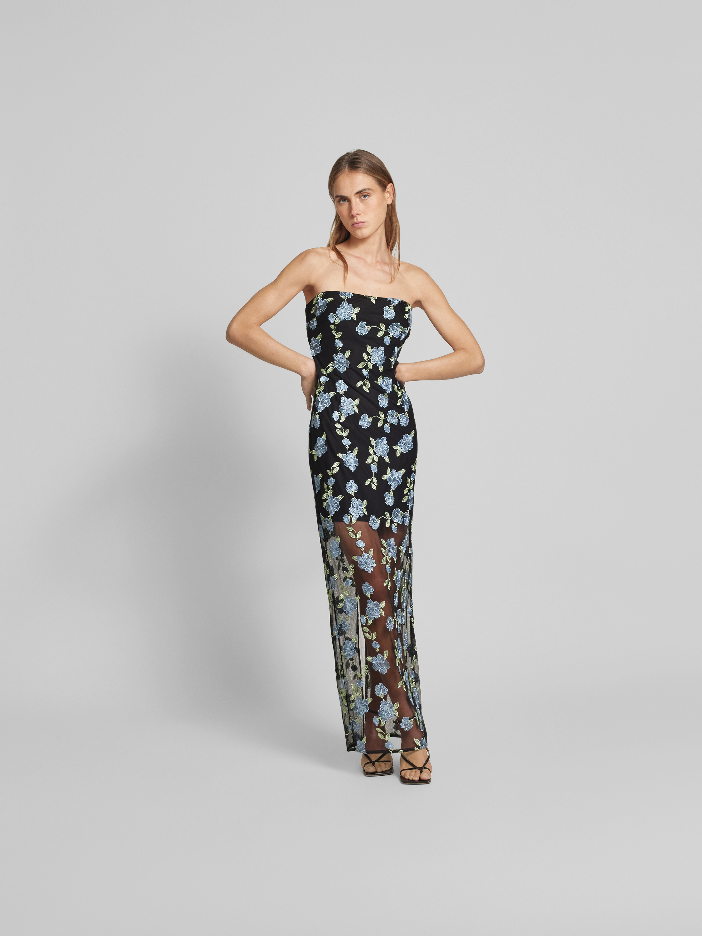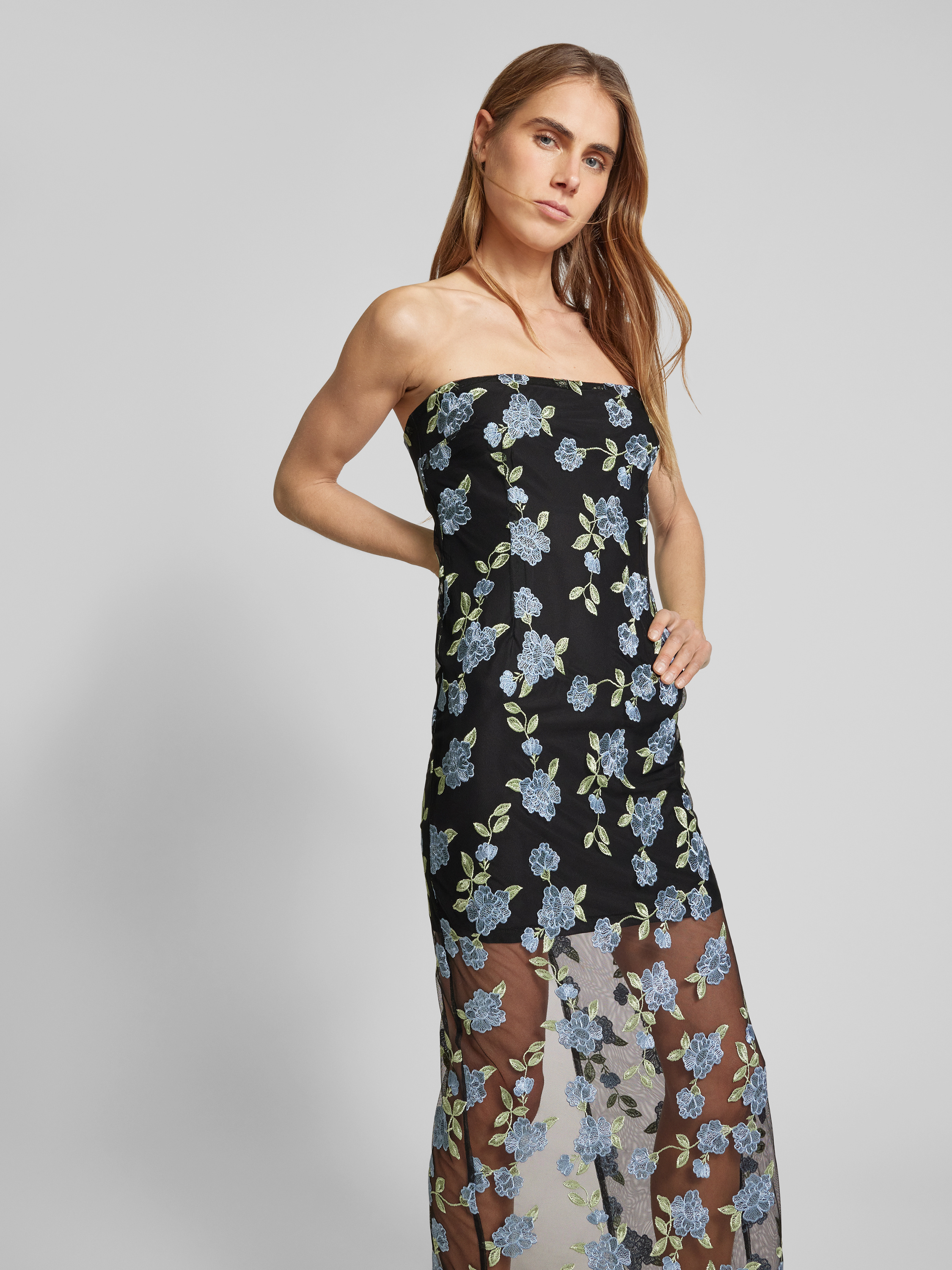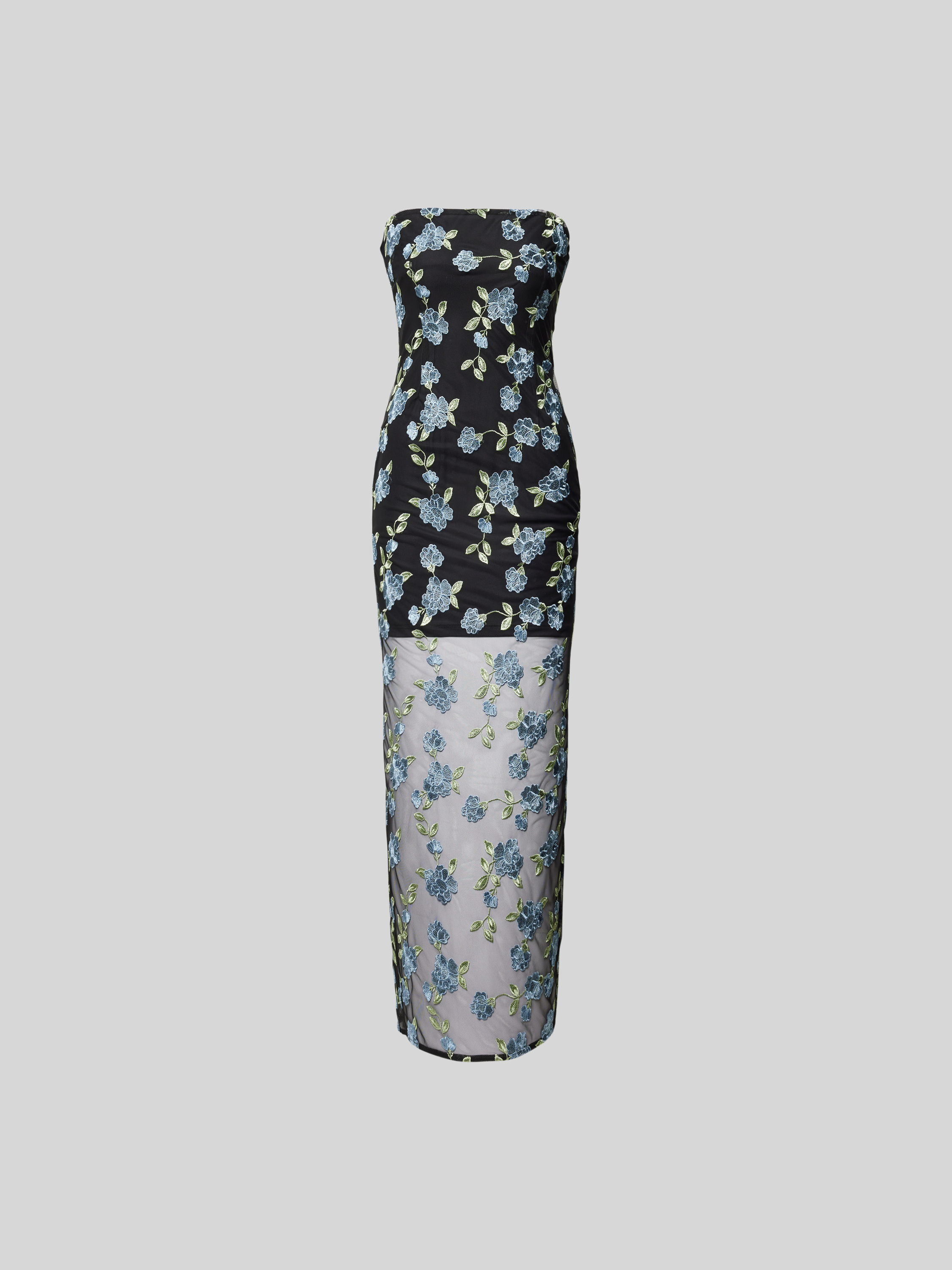 Das Damen Maxikleid von Rotate fällt durch die eng anliegende Passform und die Bandeau-Form auf, die einen femininen Look unterstreicht. Florale Allover-Stickereien setzen auf dem Mesh raffinierte Akzente, während das blickdichte Unterkleid für ein angenehmes Tragegefühl sorgt. Durch das trägerlose Design eignet sich das Modell vielseitig für verschiedenste Anlässe.
