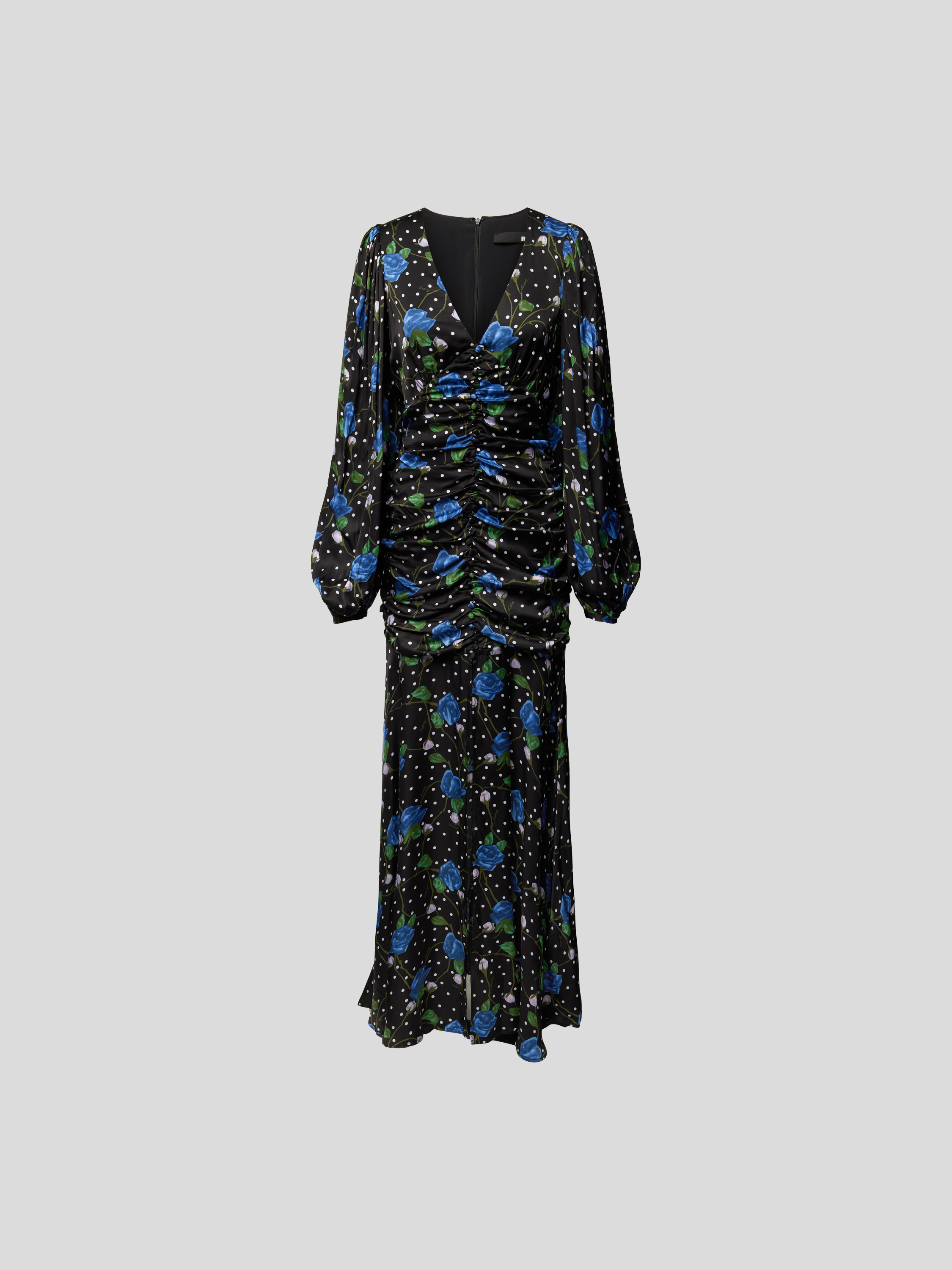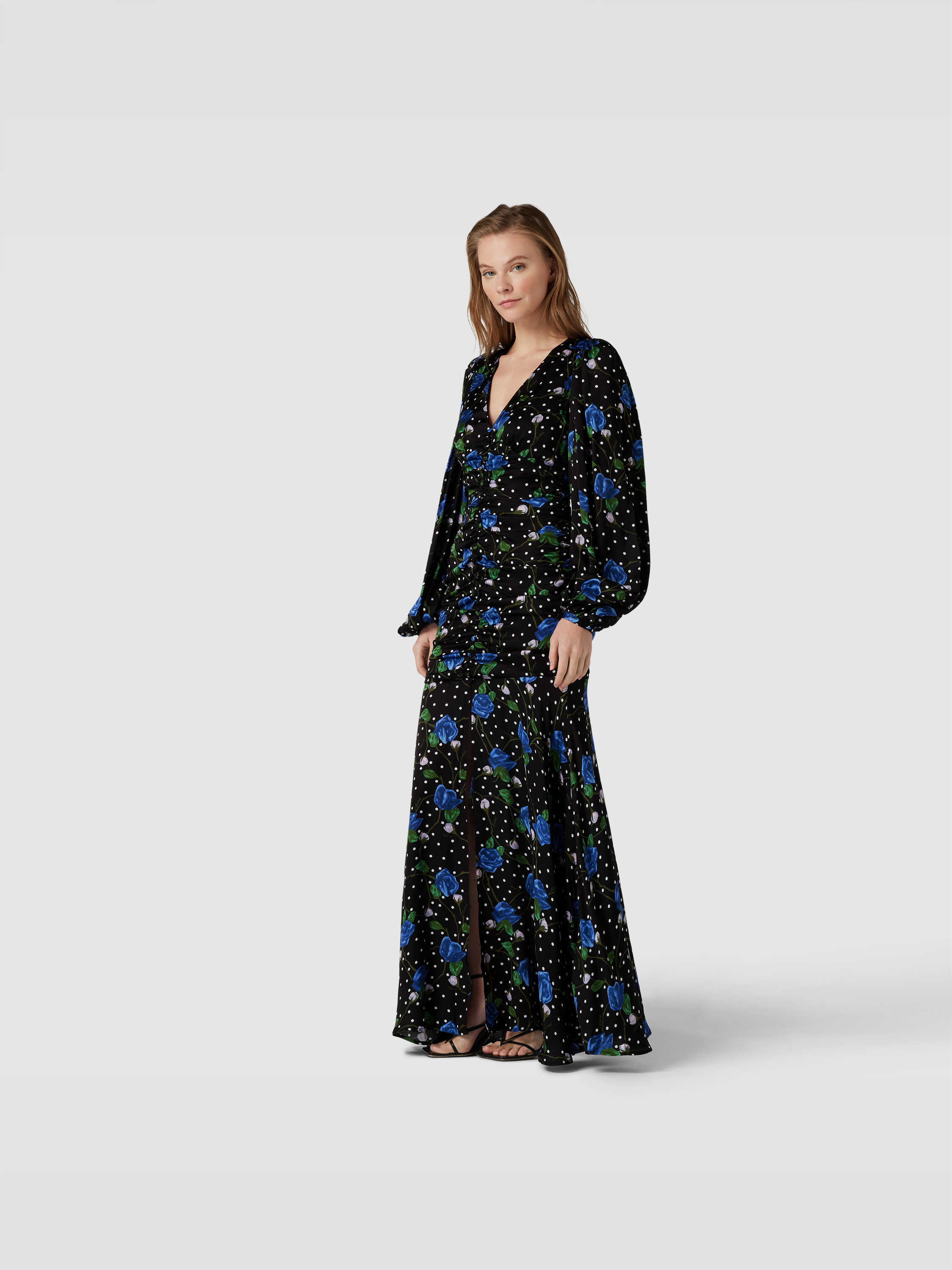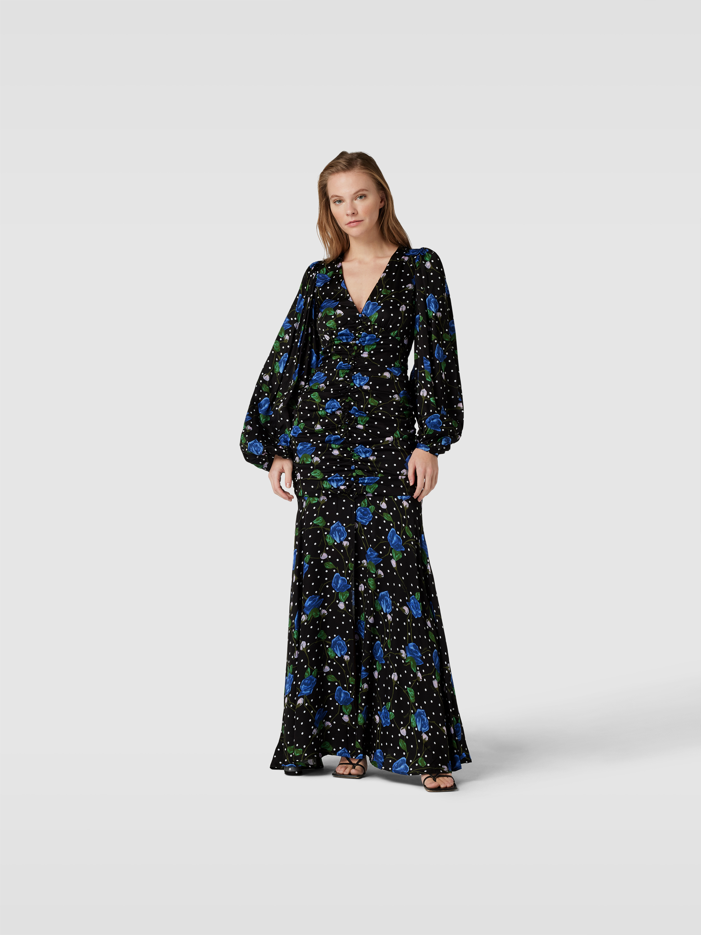 Das Maxikleid mit V-Ausschnitt von ROTATE BIRGER CHRISTENSEN legt sich angenehm an den Körper und betont durch die raffinierte Passform die Silhouette. Ballonärmel und ein florales Muster setzen einen frischen Akzent, während dezente Raffungen für eine sanfte Linienführung sorgen. So entsteht ein harmonischer Look, der sich vielseitig kombinieren lässt.