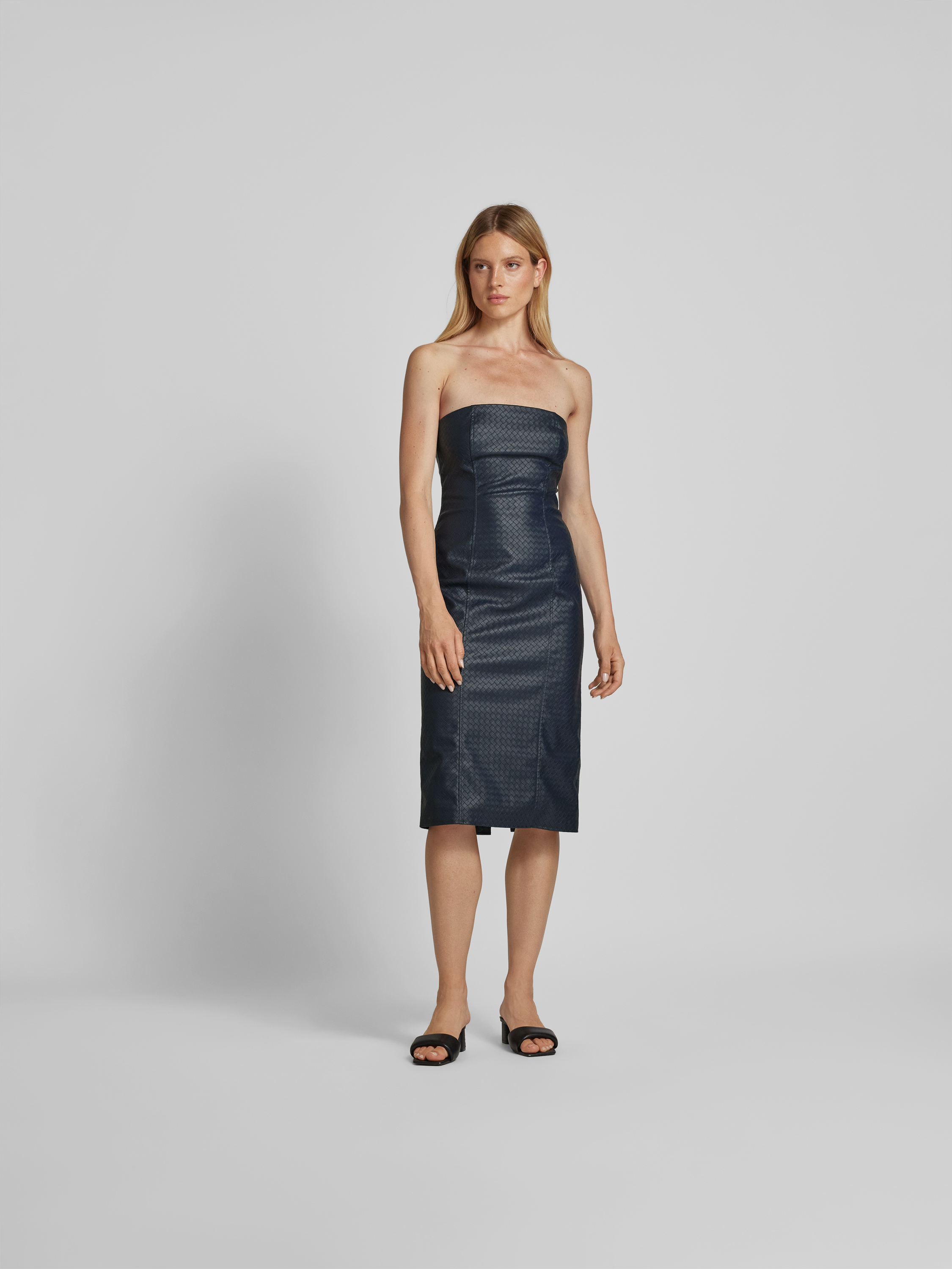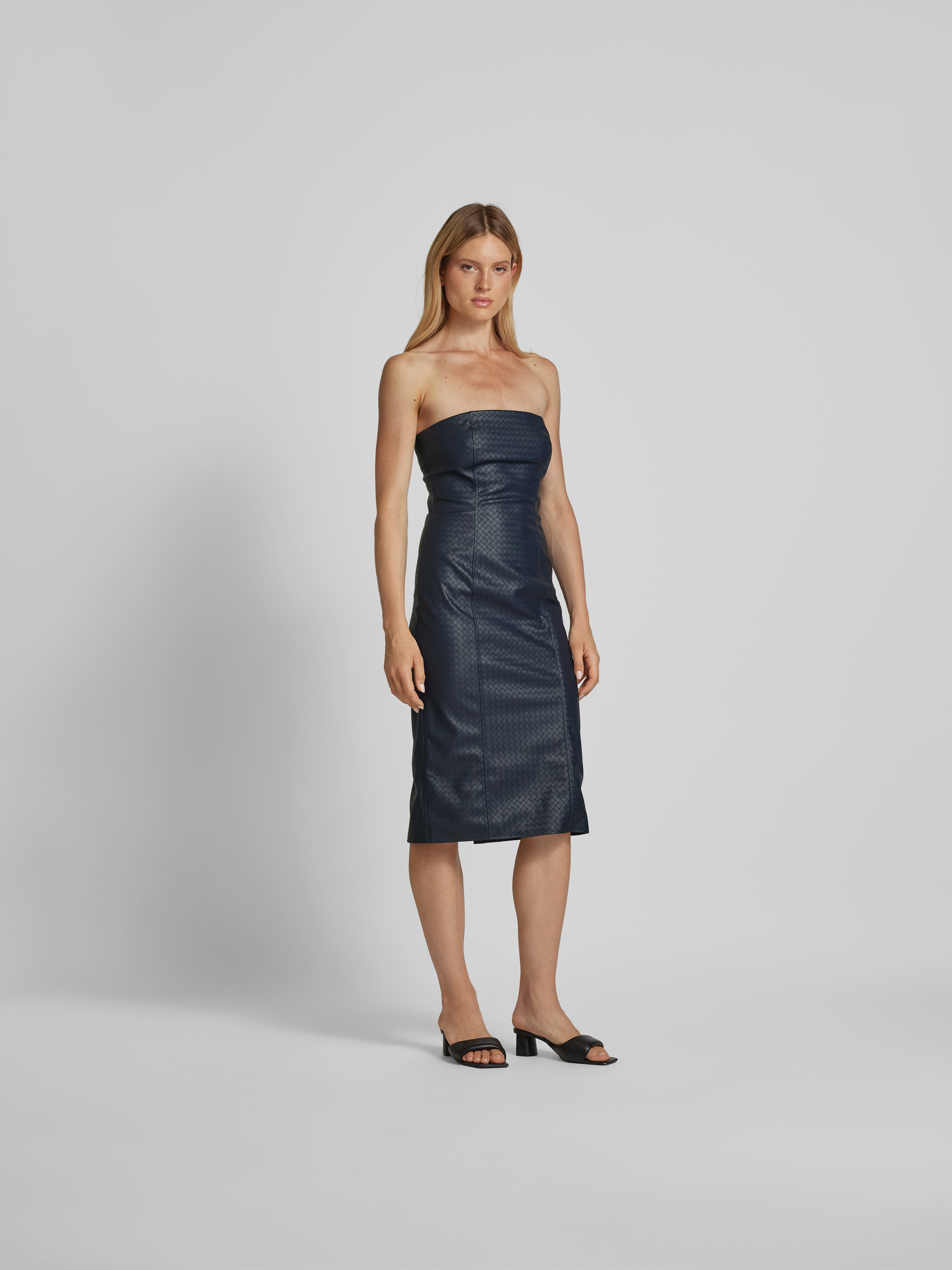 Das Damen Midikleid von Rotate schmiegt sich mit seiner körpernahen Passform angenehm an und bringt durch die Leder-Optik einen modernen Akzent in den Alltag. Der Bandeau-Ausschnitt und das Strukturmuster verleihen dem Modell eine besondere Note, sodass man sich flexibel kombinieren kann. Durch das klare Design entsteht eine vielseitige Grundlage für unterschiedlichste Anlässe.