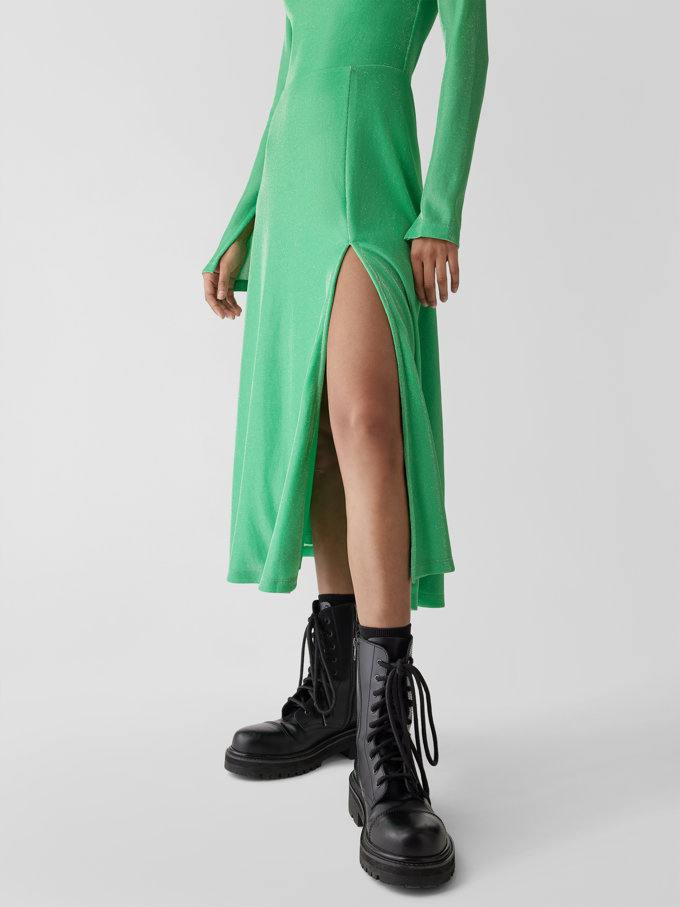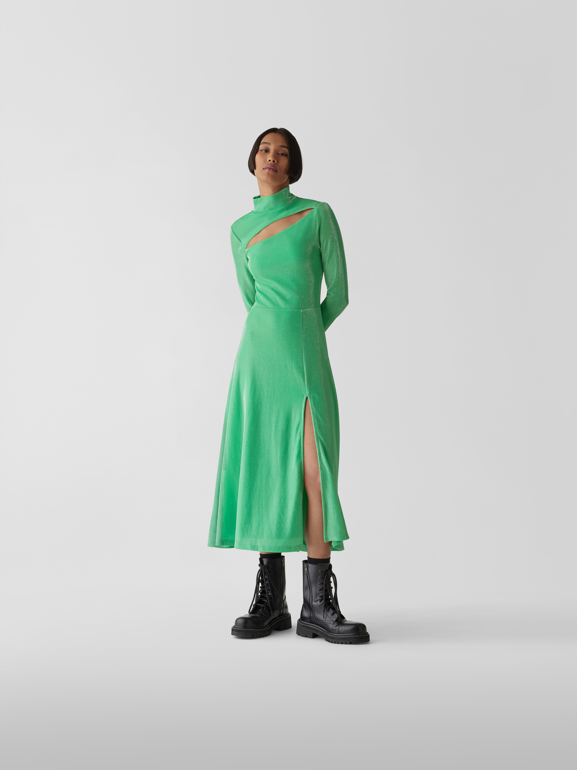 Das Midikleid von ROTATE BIRGER CHRISTENSEN präsentiert sich mit taillierter Passform und schimmernder Oberfläche, wodurch es sich für verschiedenste Anlässe eignet. Durch die raffinierten Cut Outs erhält das Modell einen modernen Akzent, während das langärmelige Design vielseitig kombinierbar bleibt. Strapazierfähiges Material sorgt für angenehmen Tragekomfort.
