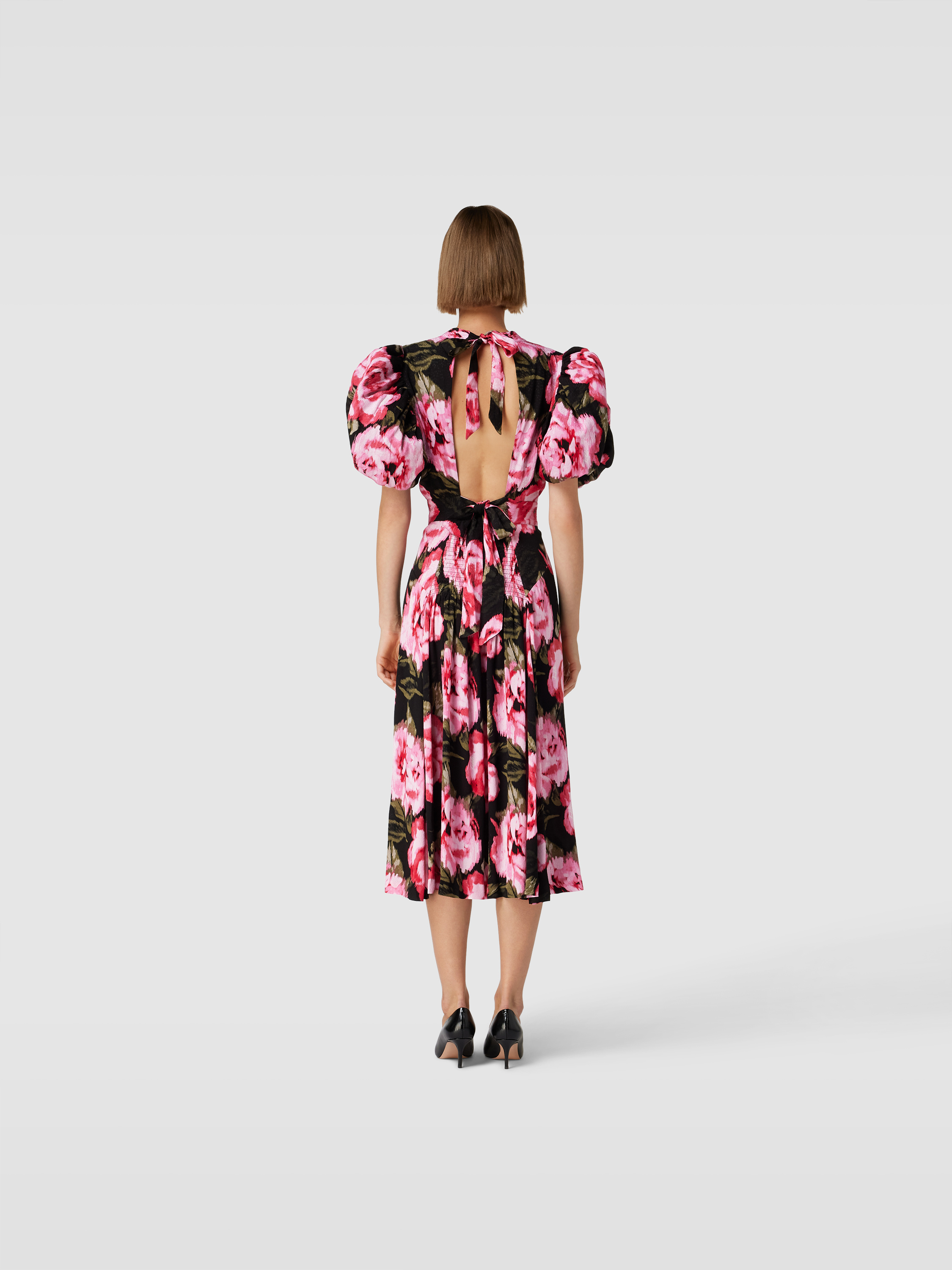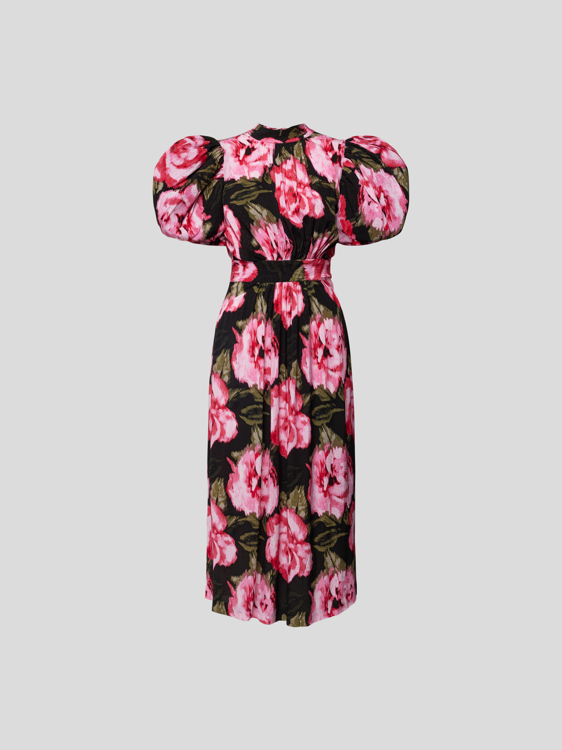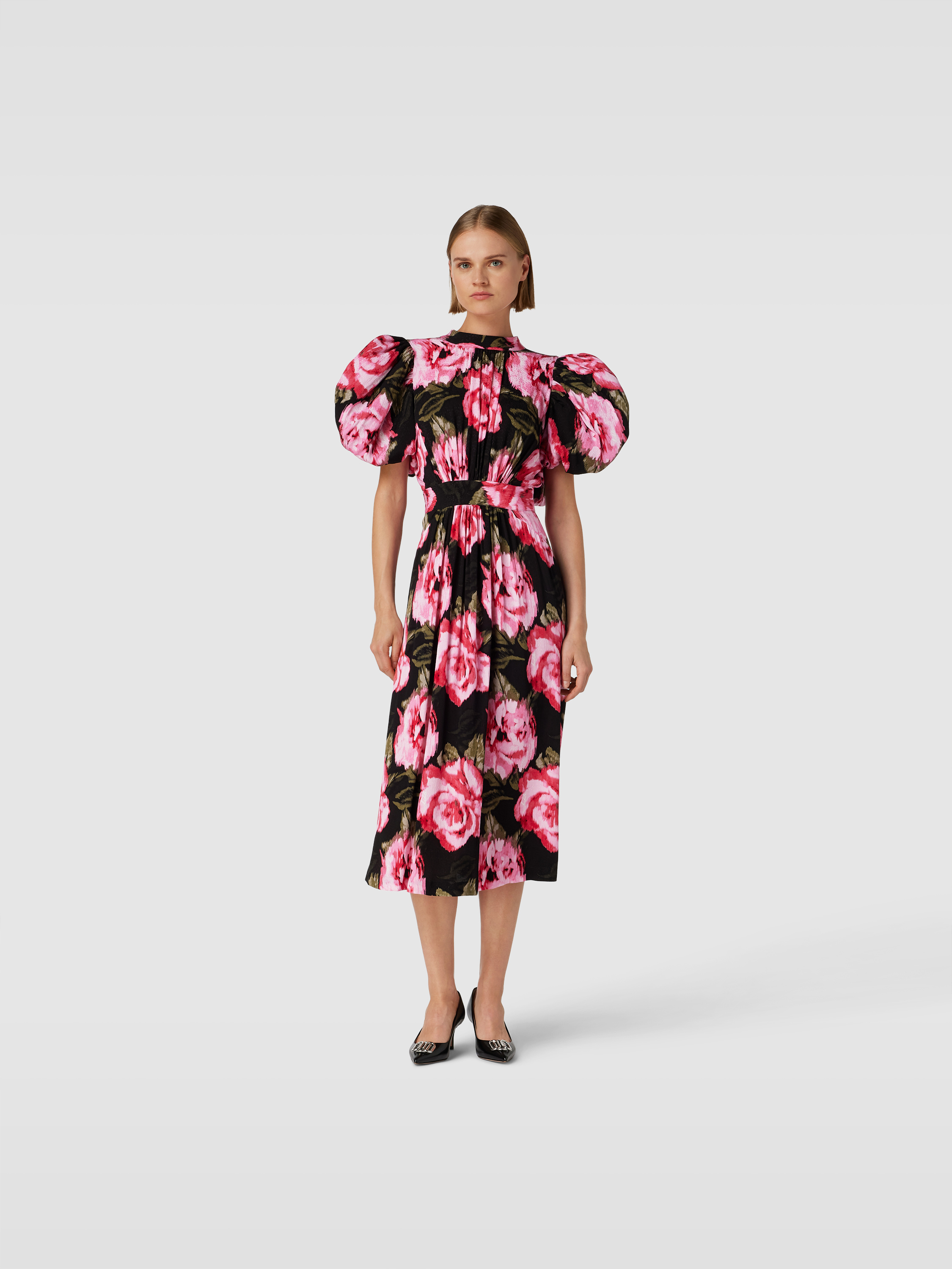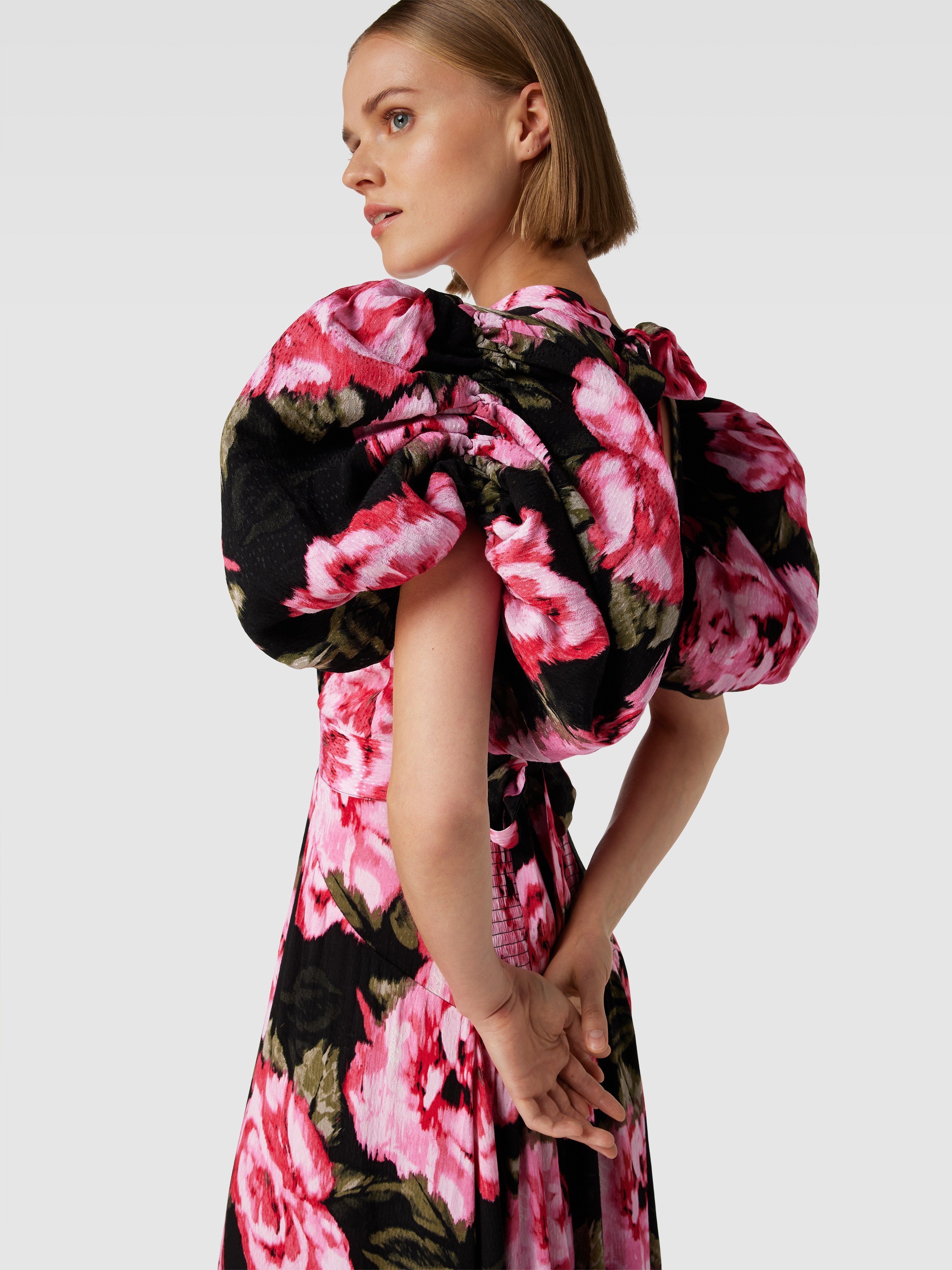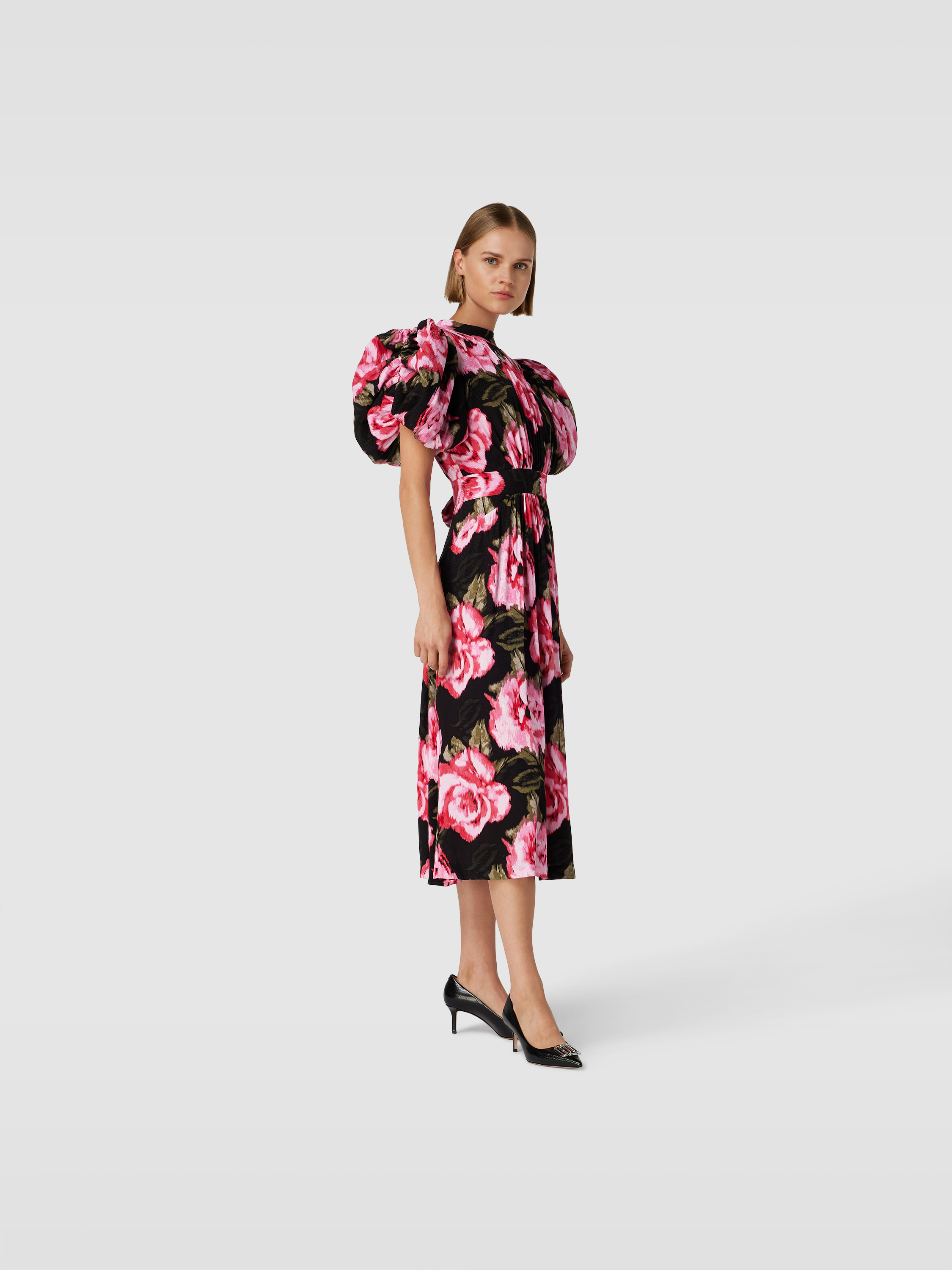 Das Damen Midikleid mit Puffärmeln von ROTATE BIRGER CHRISTENSEN liegt durch seinen taillierten Schnitt angenehm an und bringt mit dem floralen Allover-Muster frische Akzente in den Alltag. Dank Stehkragen und kurzen Puffärmeln erhält das Modell eine besondere Note. Durch den elastischen Material-Mix trägt es sich flexibel.