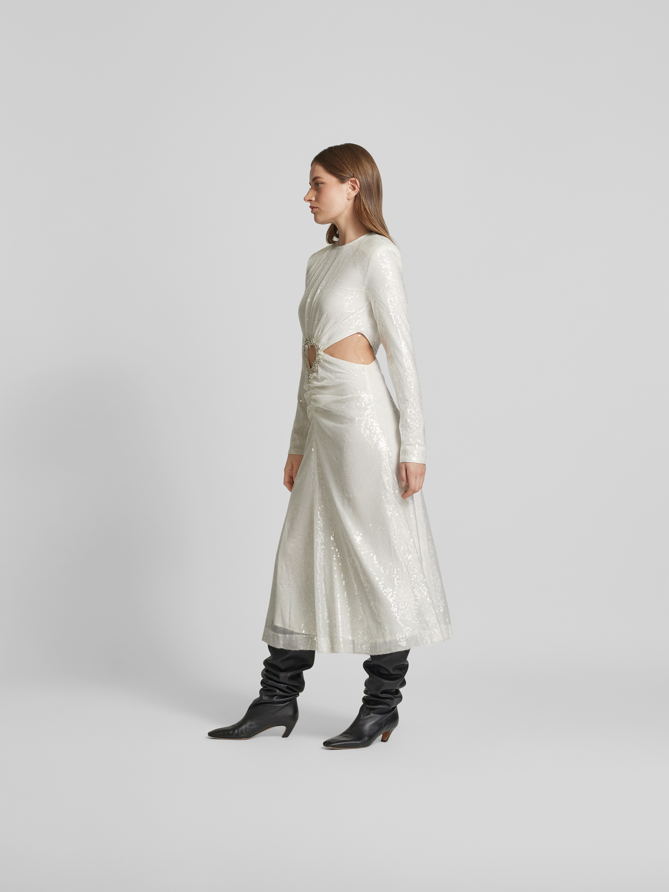 ROTATEMidikleid mit Rundhalsausschnitt in weiss