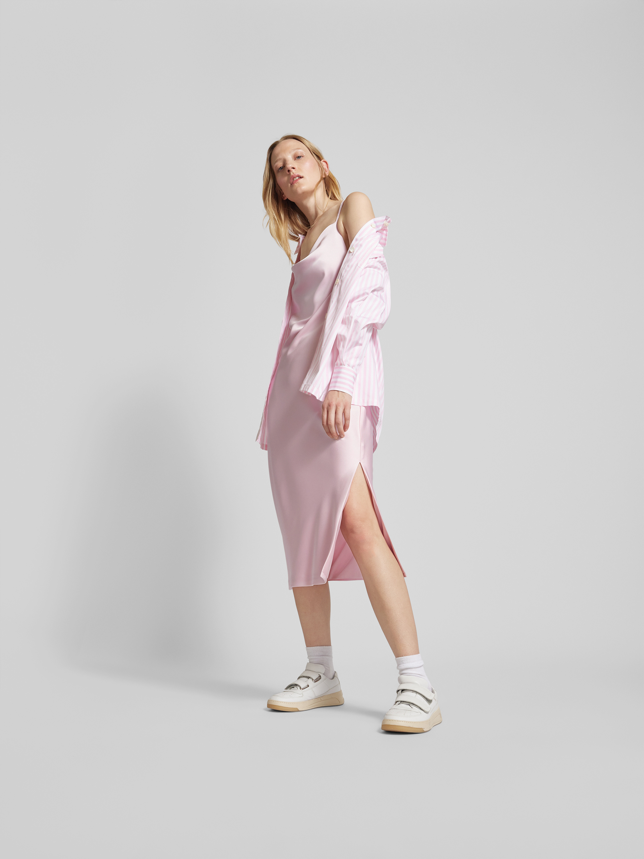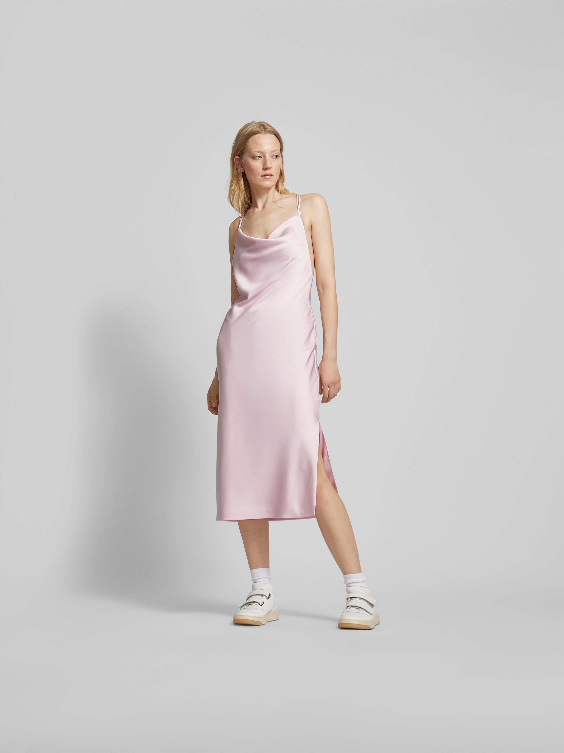 Das Damen Midikleid von ROTATE BIRGER CHRISTENSEN fällt durch den taillierten Schnitt und den fließenden Wasserfall-Ausschnitt angenehm auf, während das unifarbene Design dezent wirkt. Spaghettiträger und ein blickdichtes Unterkleid sorgen für ein angenehmes Tragegefühl. Durch das ärmellose Design eignet sich das Kleid sowohl für wärmere Tage als auch für festliche Anlässe.