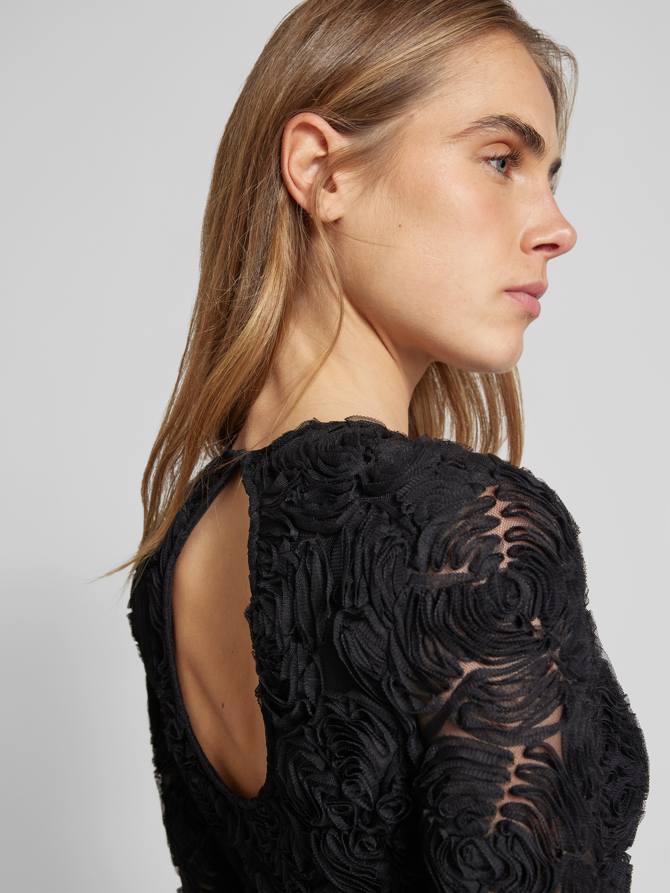 Das Minikleid mit Trompetenärmeln von Rotate schmiegt sich durch seine eng anliegende Passform sanft an die Silhouette. Das zarte Mesh und die floralen Applikationen bringen eine besondere Note ins Spiel, während die ausgestellten Ärmel für einen ausdrucksstarken Abschluss sorgen. Ideal, um sich stilvoll und komfortabel zu kleiden.