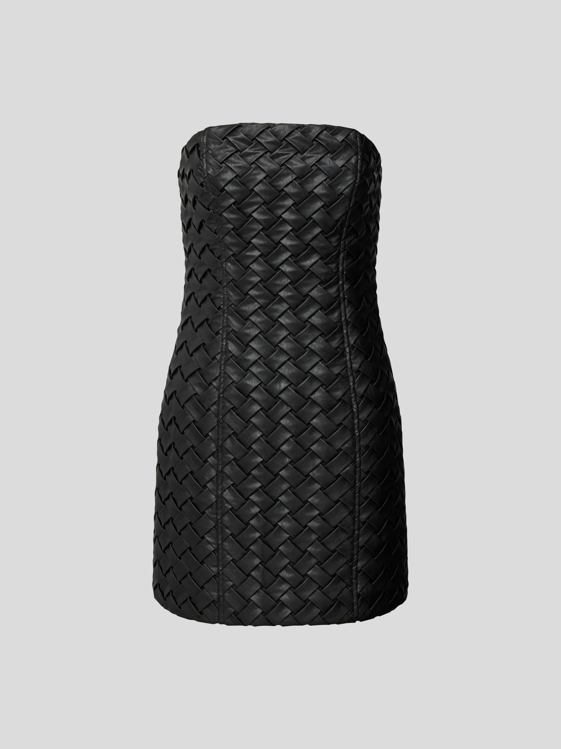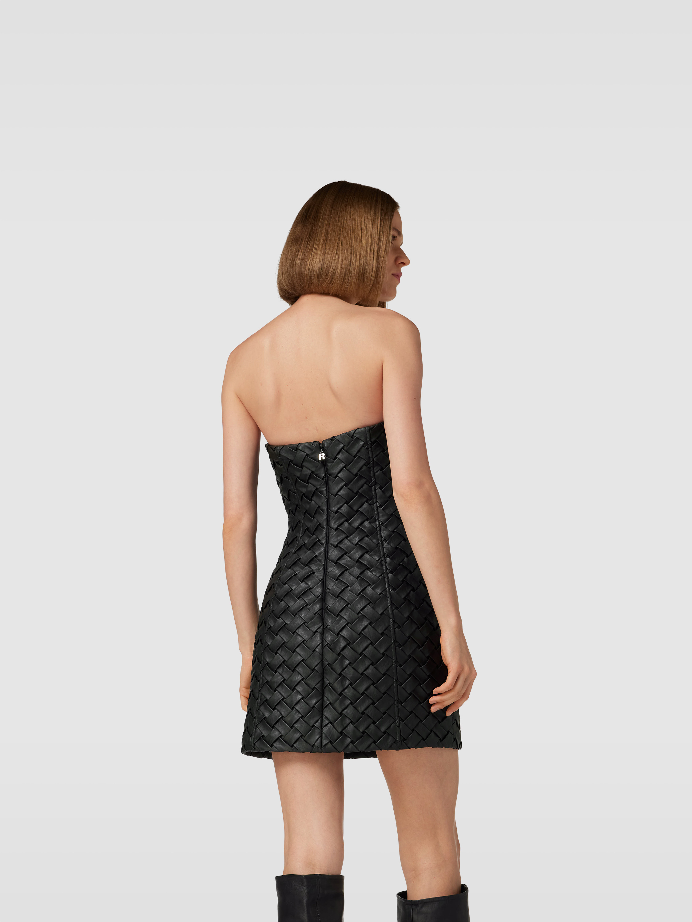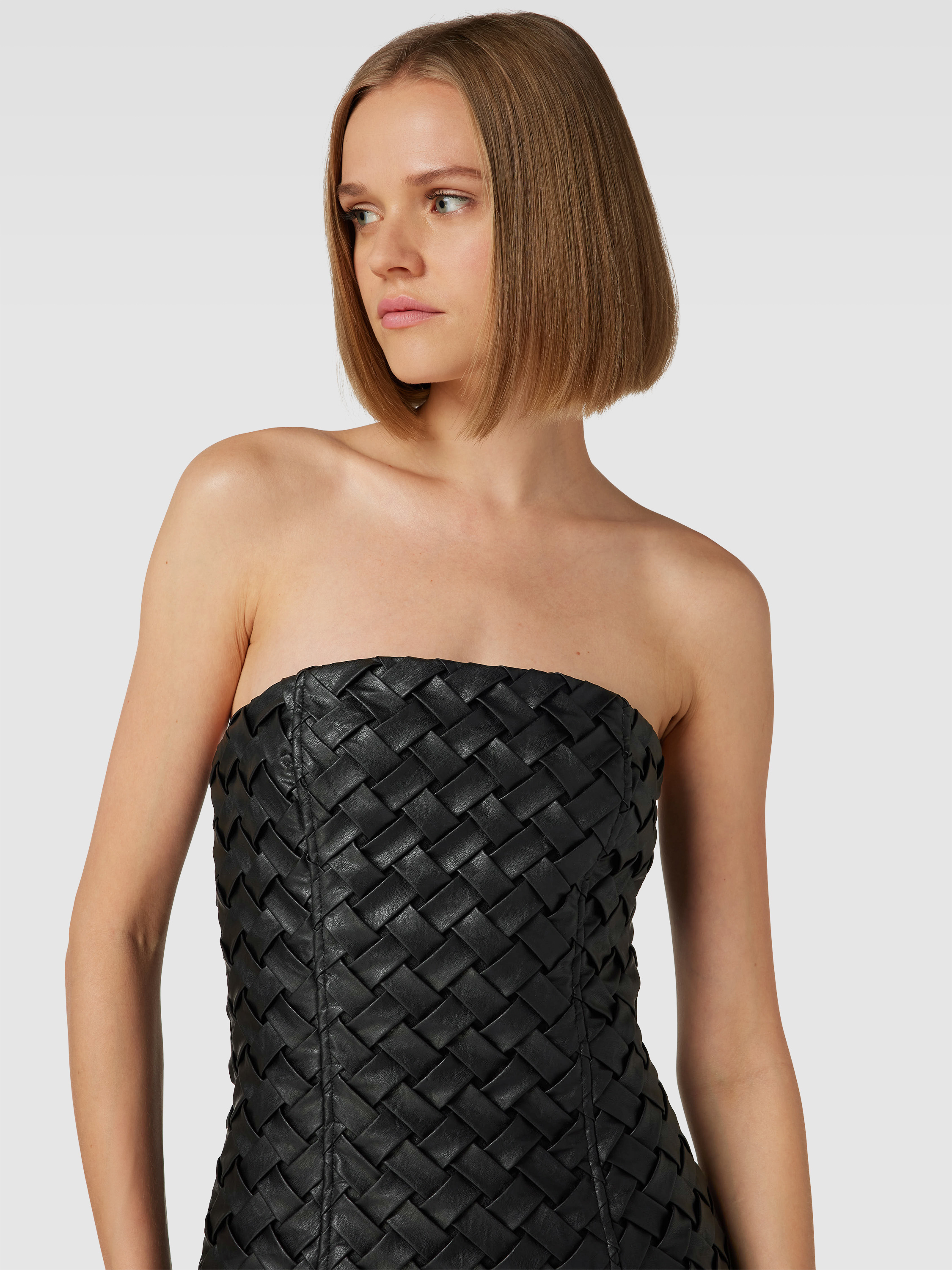 Das Minikleid von ROTATE BIRGER CHRISTENSEN präsentiert sich mit einem trendorientierten Zopfmuster und figurbetonter Passform. Die Leder-Optik sowie markante Ziernähte verleihen dem trägerlosen Bandeau-Design einen modernen Charakter. Dadurch eignet sich das Kleid für vielfältige Anlässe und unterstreicht individuelle Styles.