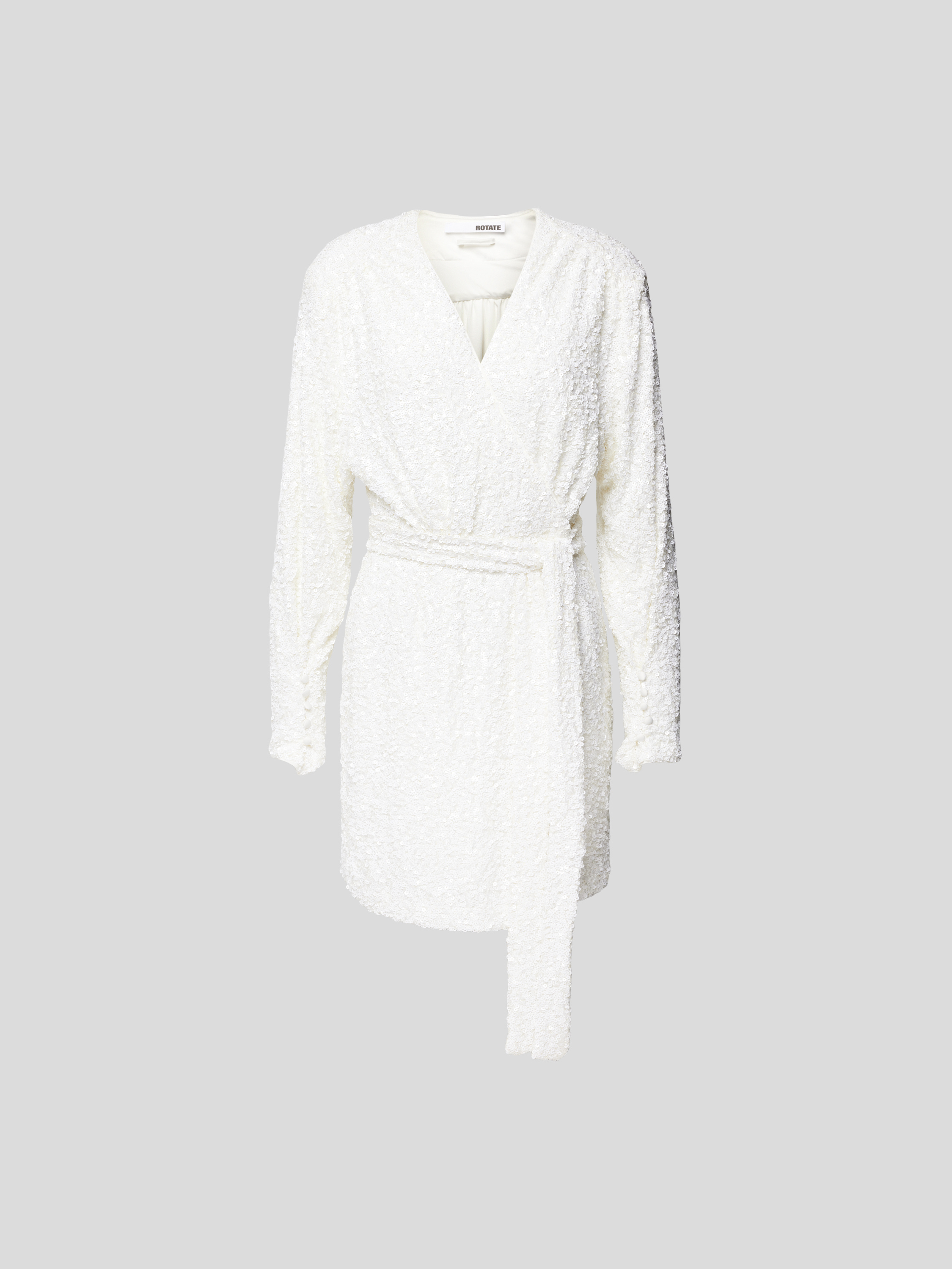 Das Wickelkleid von ROTATE BIRGER CHRISTENSEN bringt durch den Paillettenbesatz dezente Akzente in das Outfit. Die taillierte Passform und der V-Ausschnitt unterstreichen eine feminine Silhouette, während der elastische Material-Mix angenehme Bewegungsfreiheit im Alltag zulässt. Langärmelige Gestaltung ergänzt den Look.