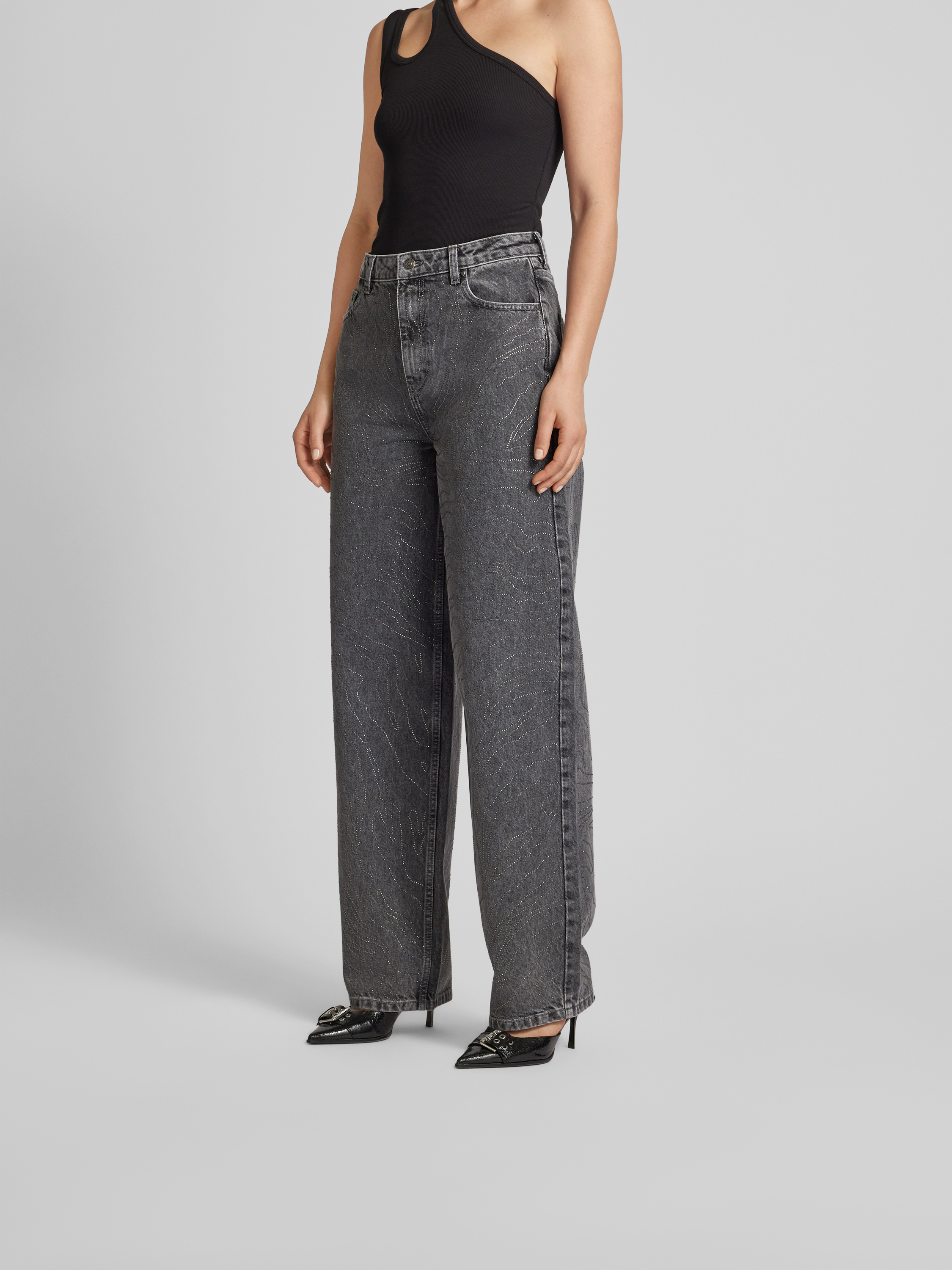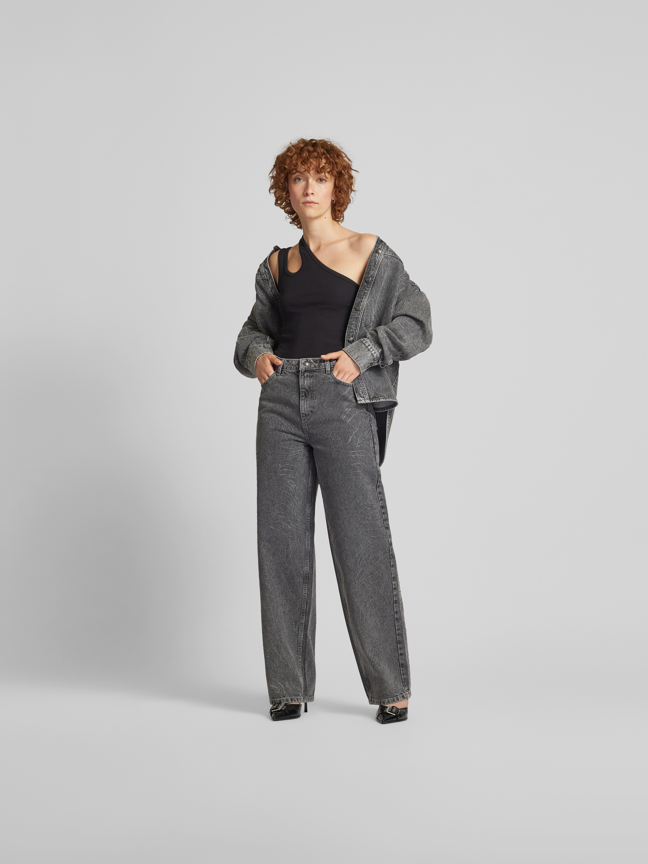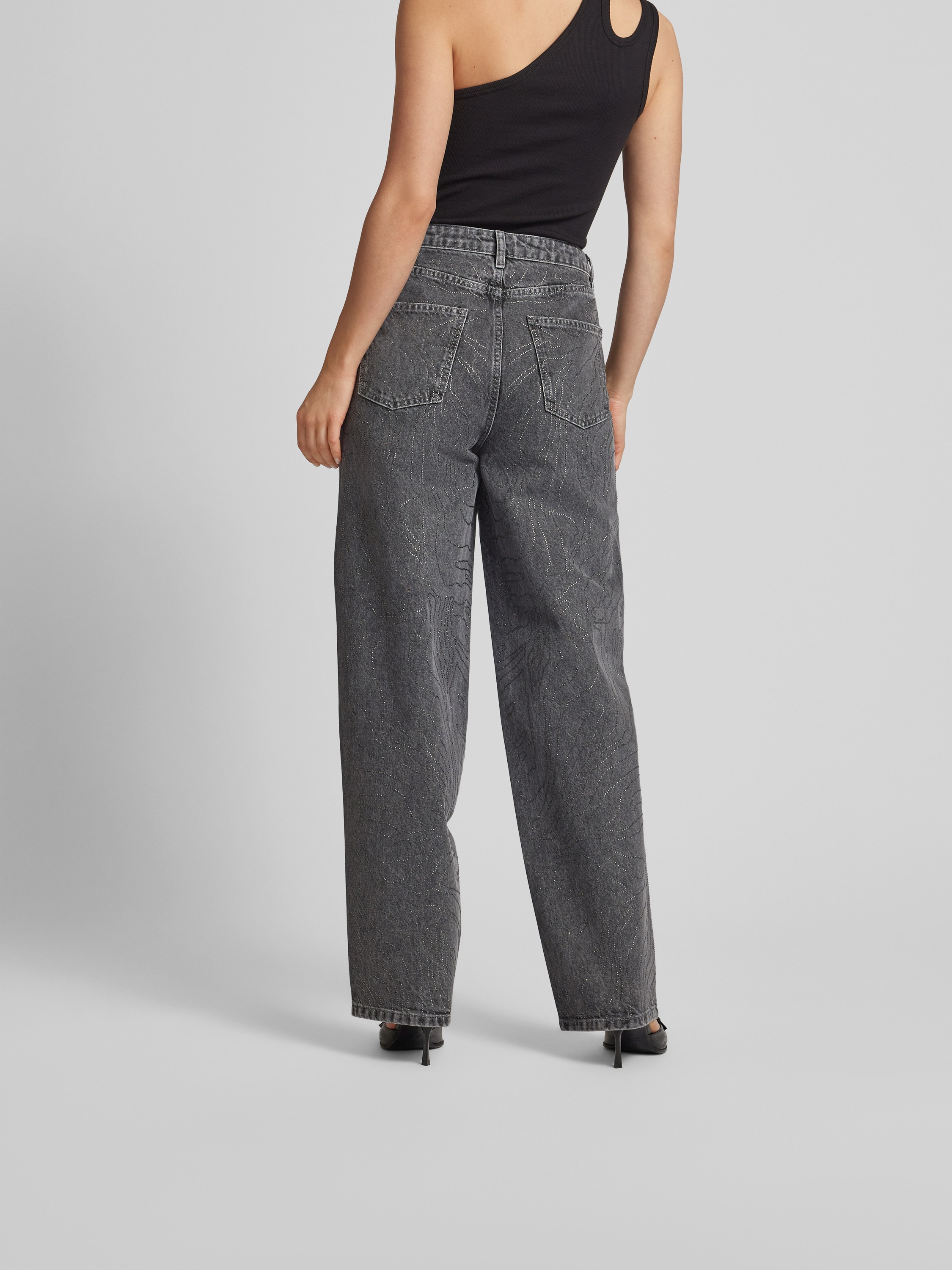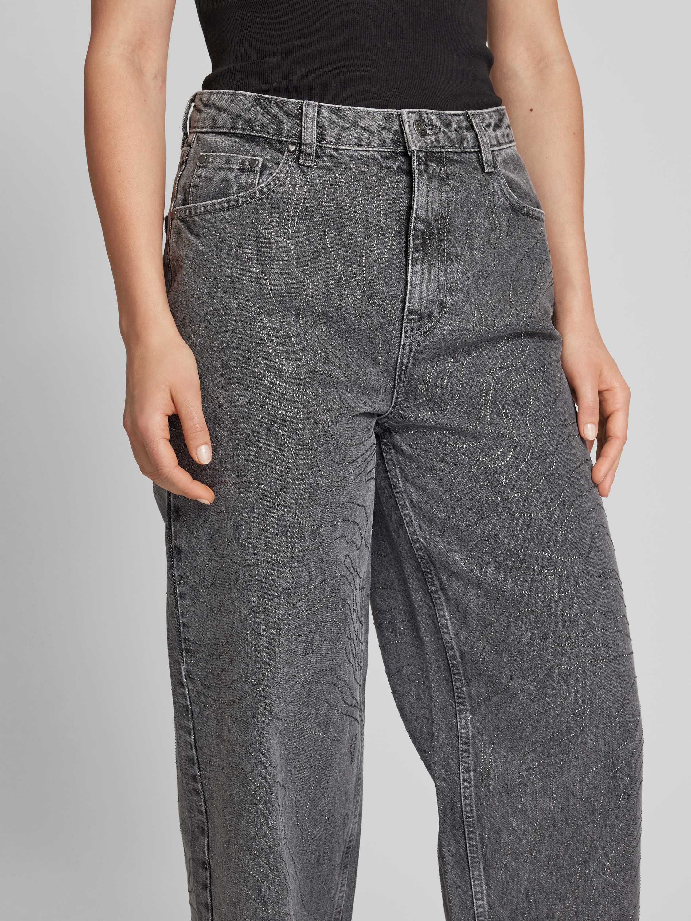 Die Damenjeans von ROTATE BIRGER CHRISTENSEN zeigt sich mit weitem Bein und fällt durch den dekorativen Zierperlenbesatz sofort ins Auge. Gefertigt aus reiner Baumwolle, sorgt sie für ein angenehmes Tragegefühl im Alltag. Das klassische 5-Pocket-Design unterstreicht den lässigen Charakter.