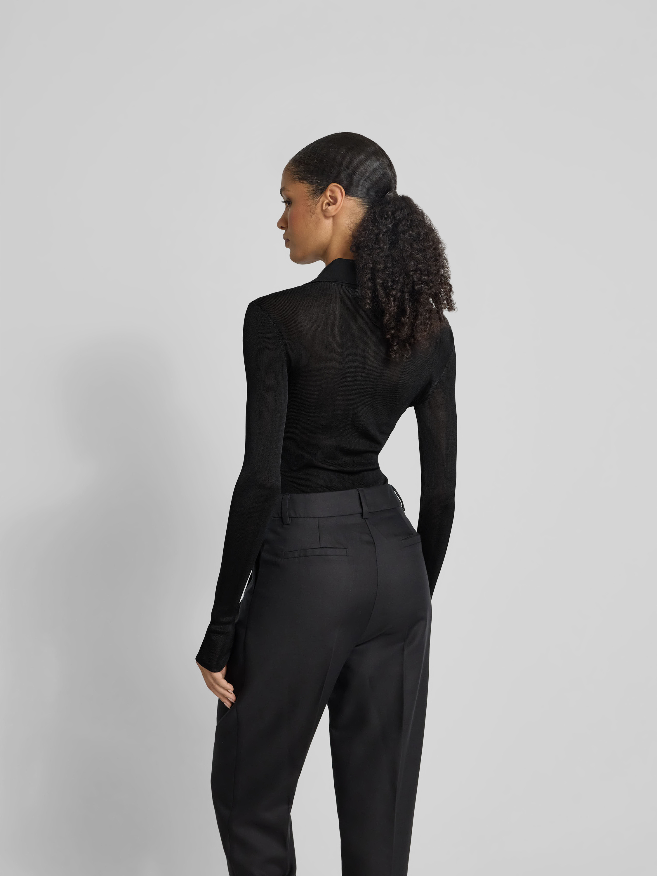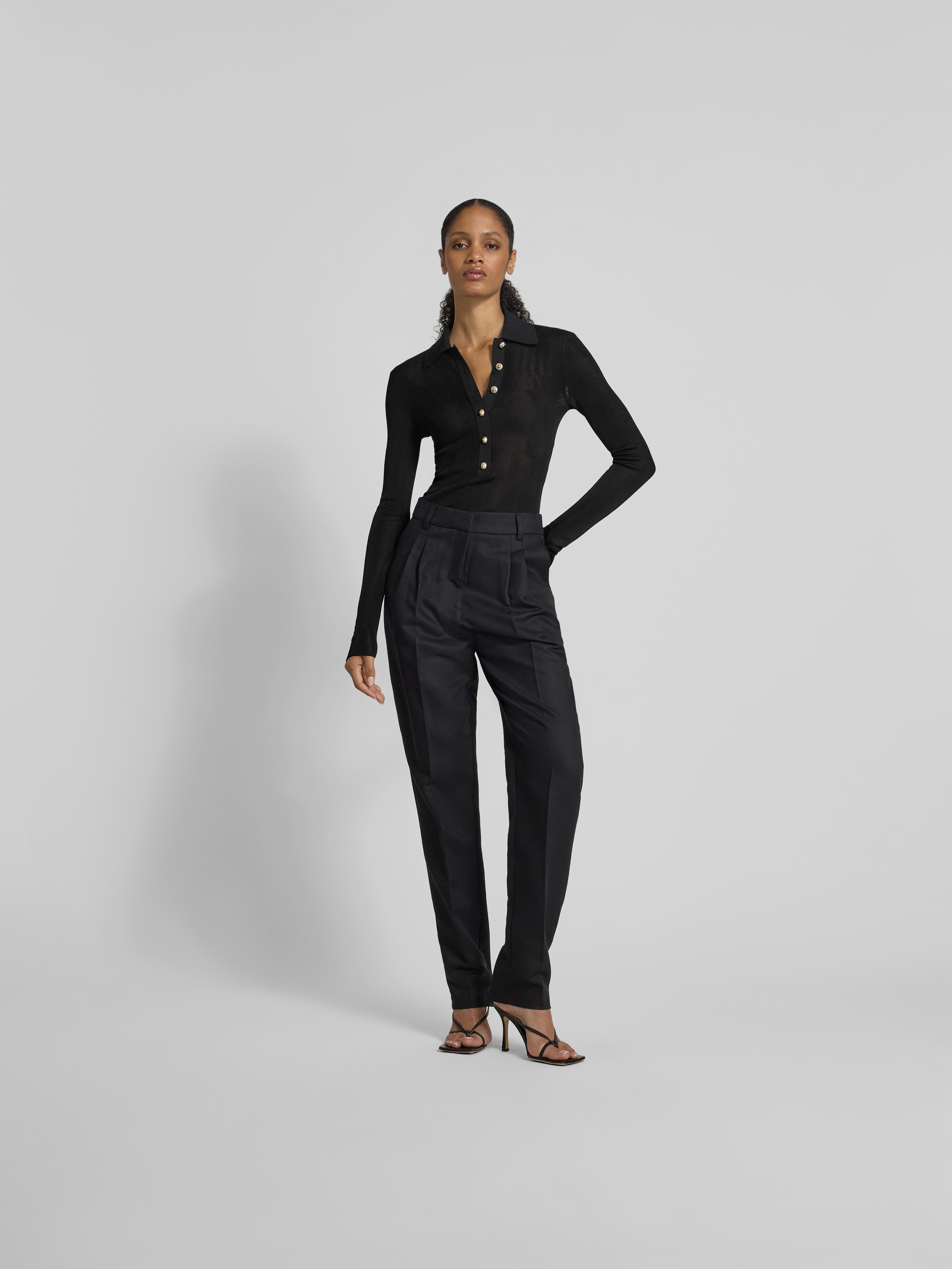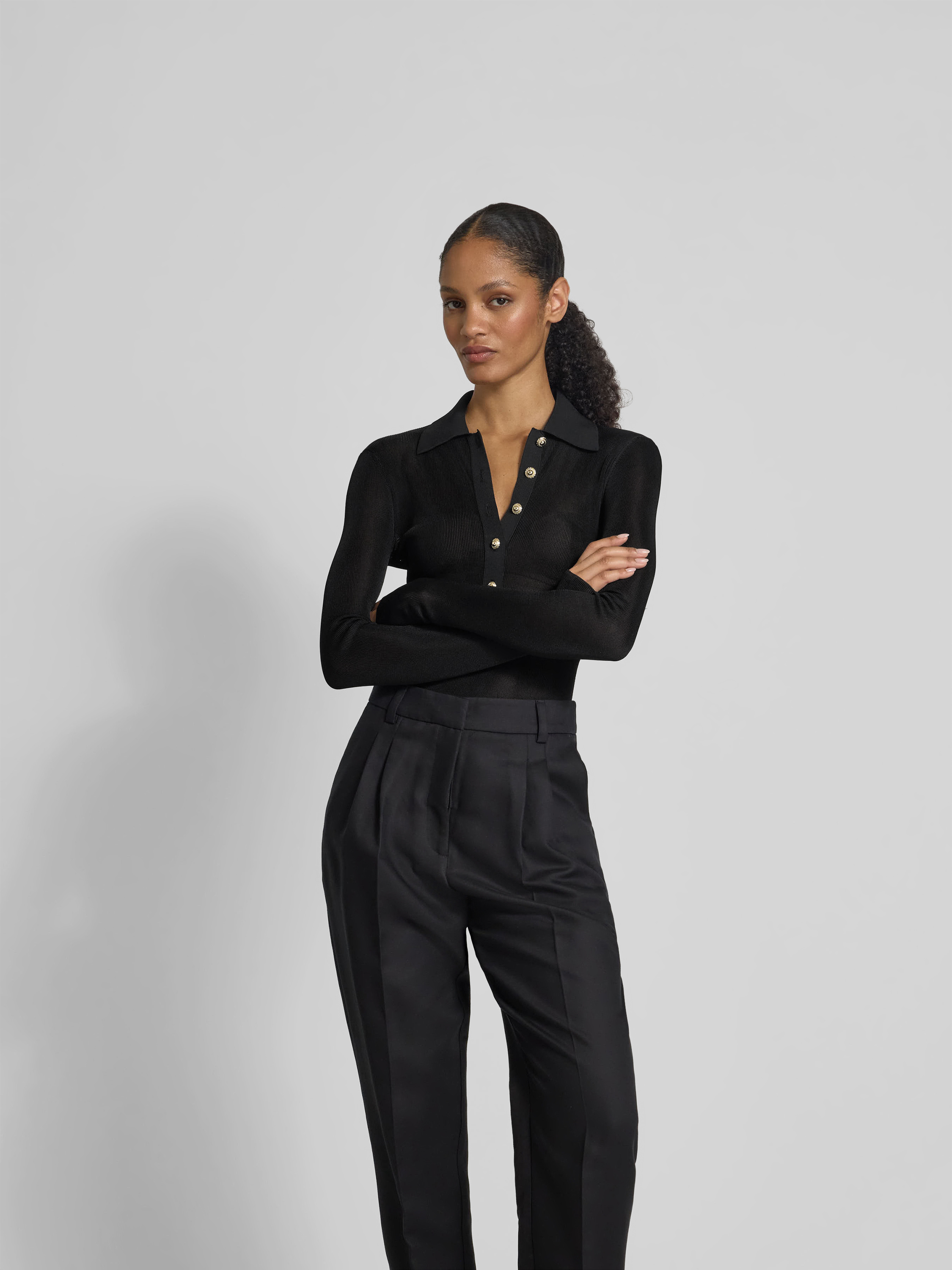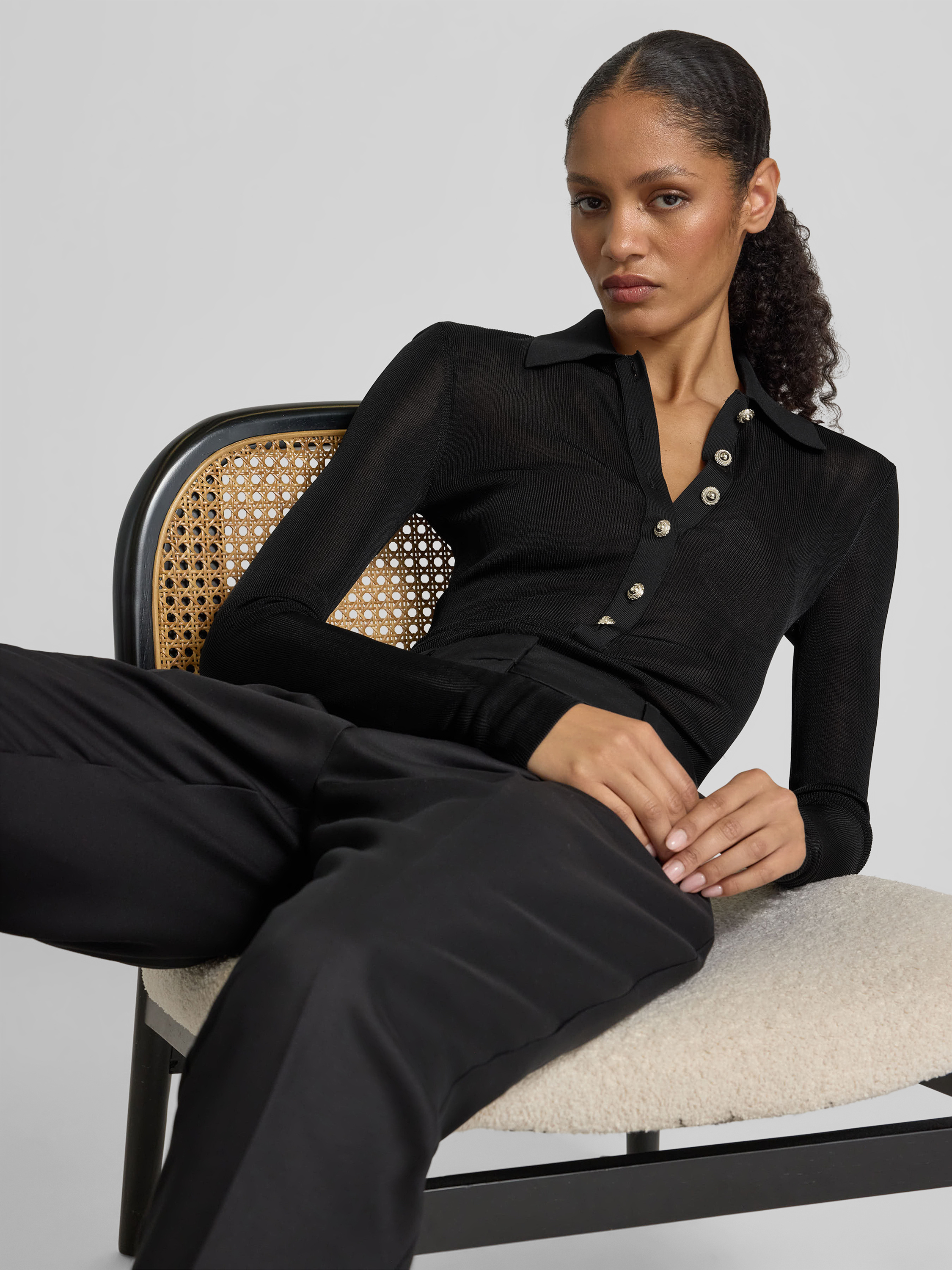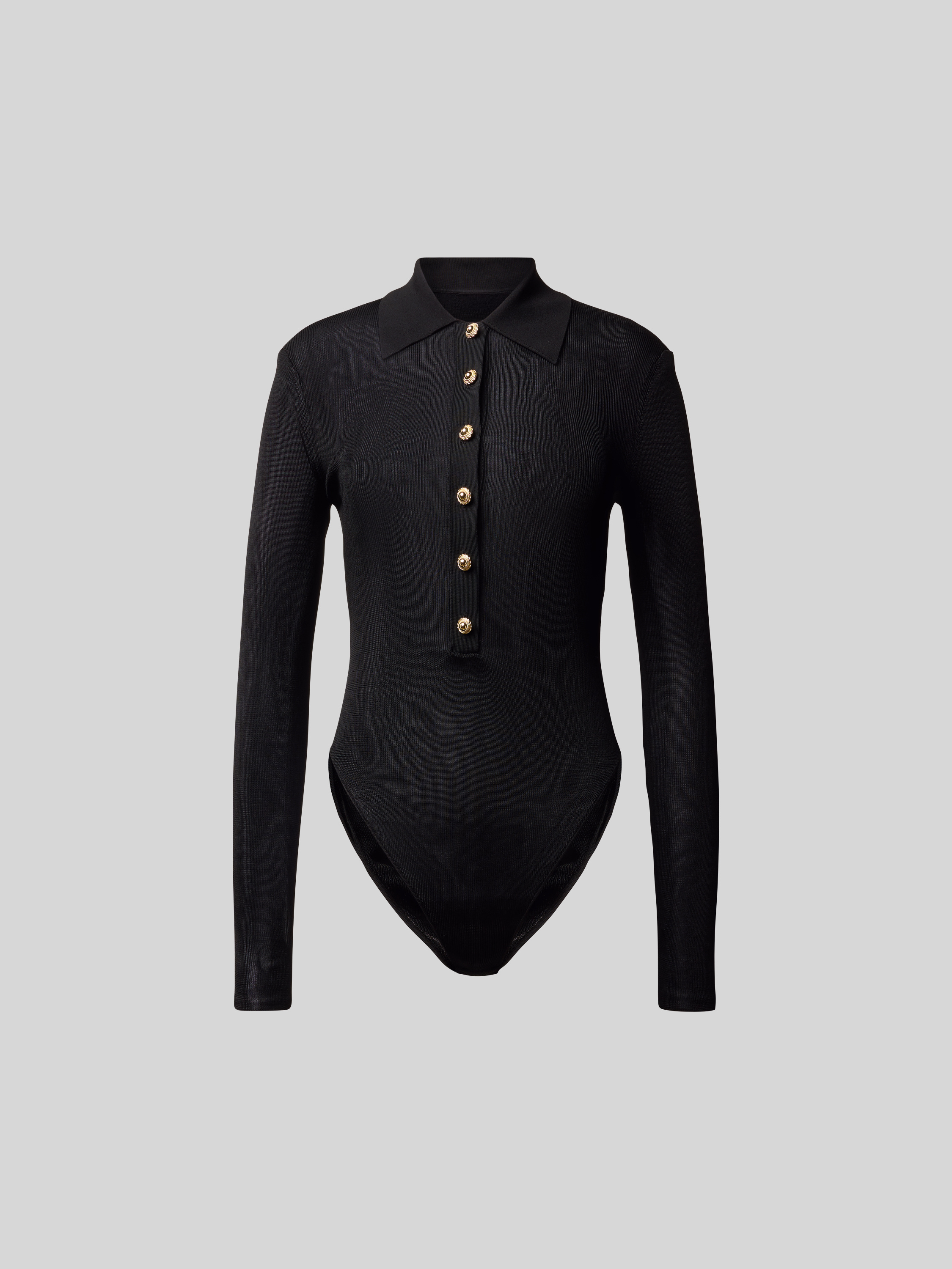 Der Body von Self-Portrait überzeugt durch seine eng anliegende Passform und den klassischen Umlegekragen, der dem langärmeligen Design eine elegante Note verleiht. Aus reiner Viskose gefertigt, sorgt er für ein angenehmes Tragegefühl und schmiegt sich sanft an den Körper an.