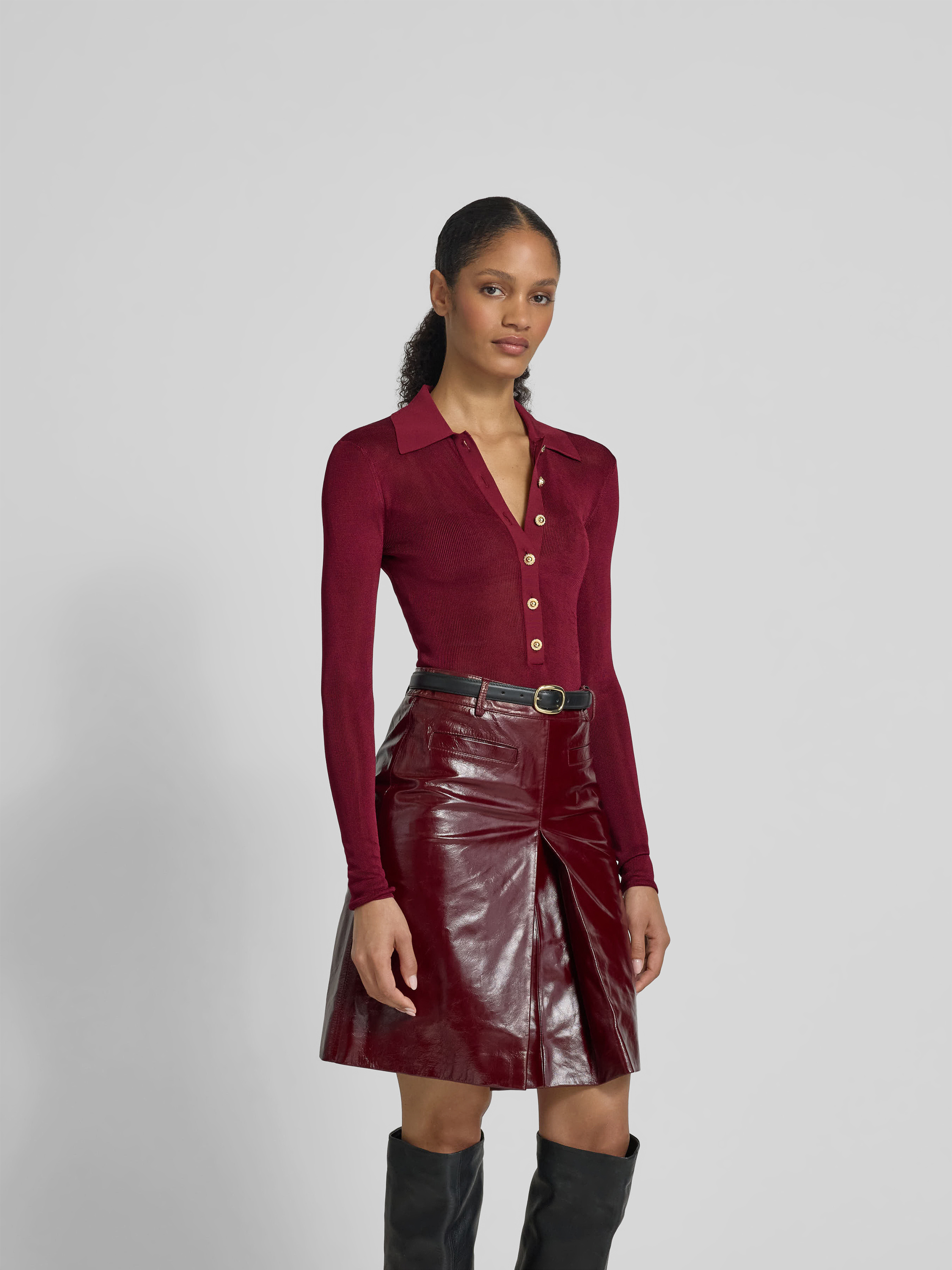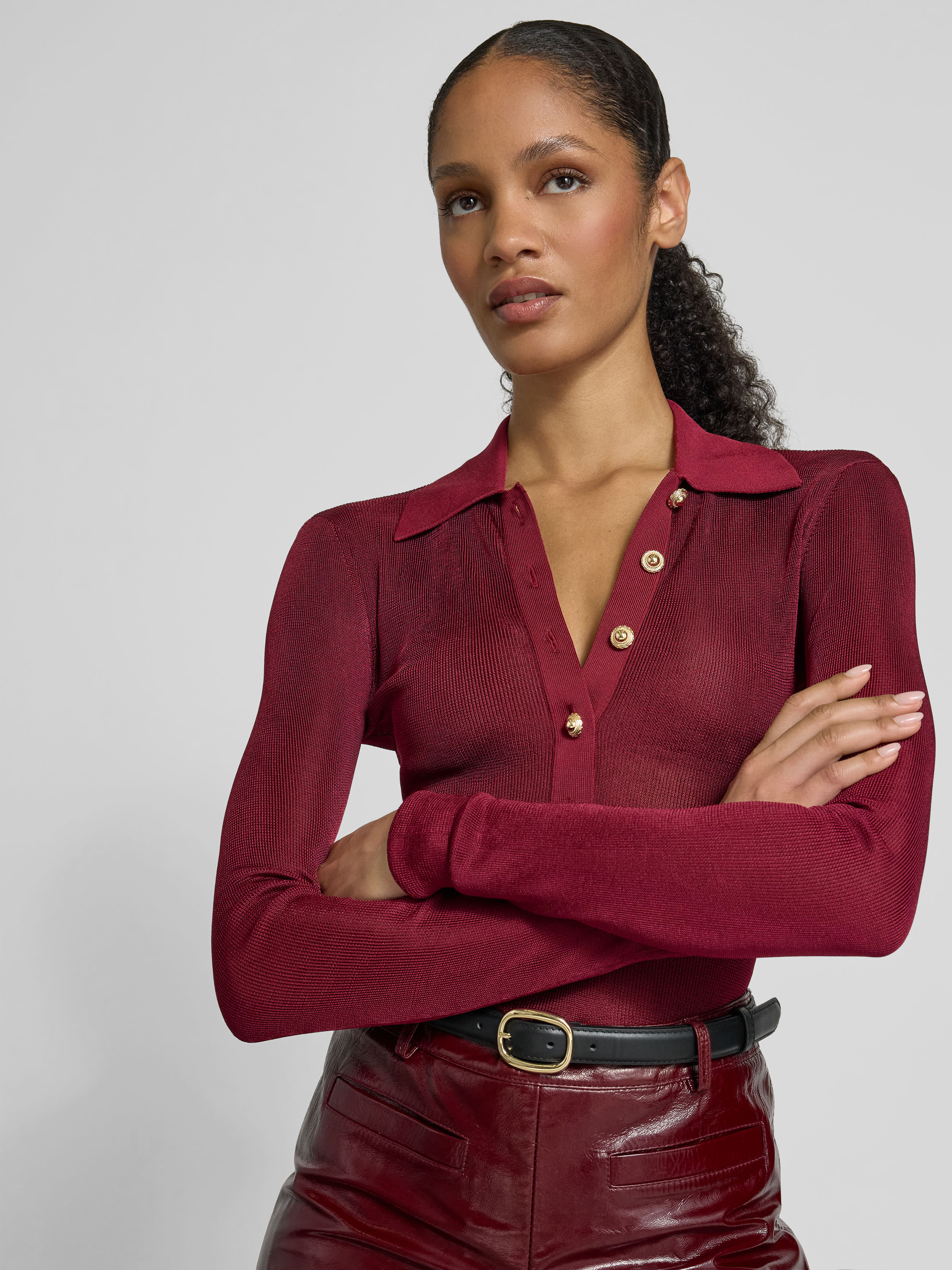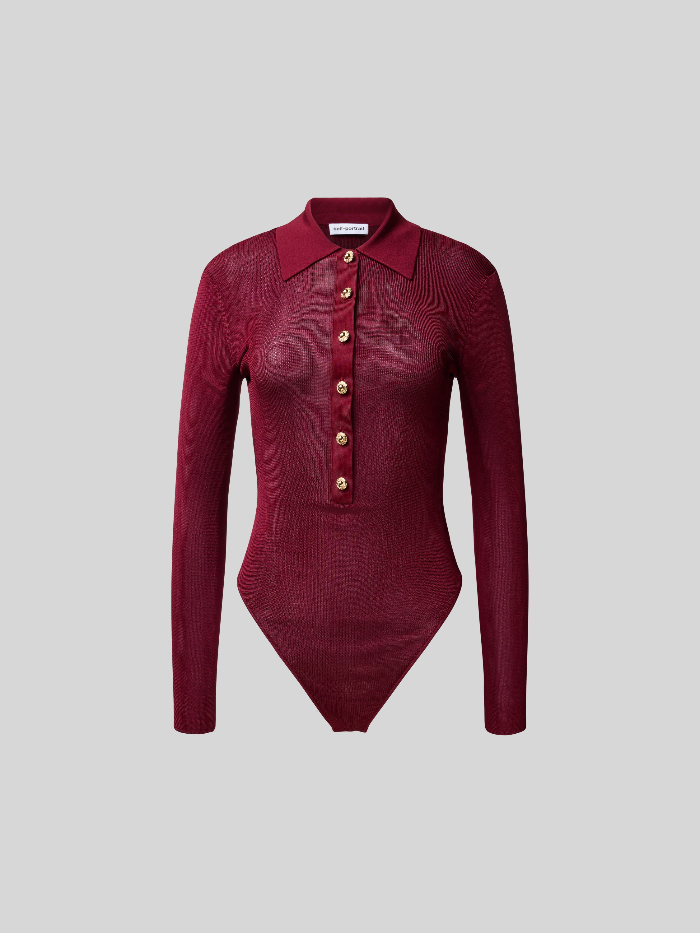 Der Body von Self-Portrait aus reiner Viskose besticht durch seine eng anliegende Passform, die sich sanft an die Silhouette schmiegt. Das semitransparente Strick-Design verleiht dem langärmeligen Modell mit Umlegekragen eine moderne Note, die vielseitig kombinierbar ist. Ideal für stilvolle Auftritte.