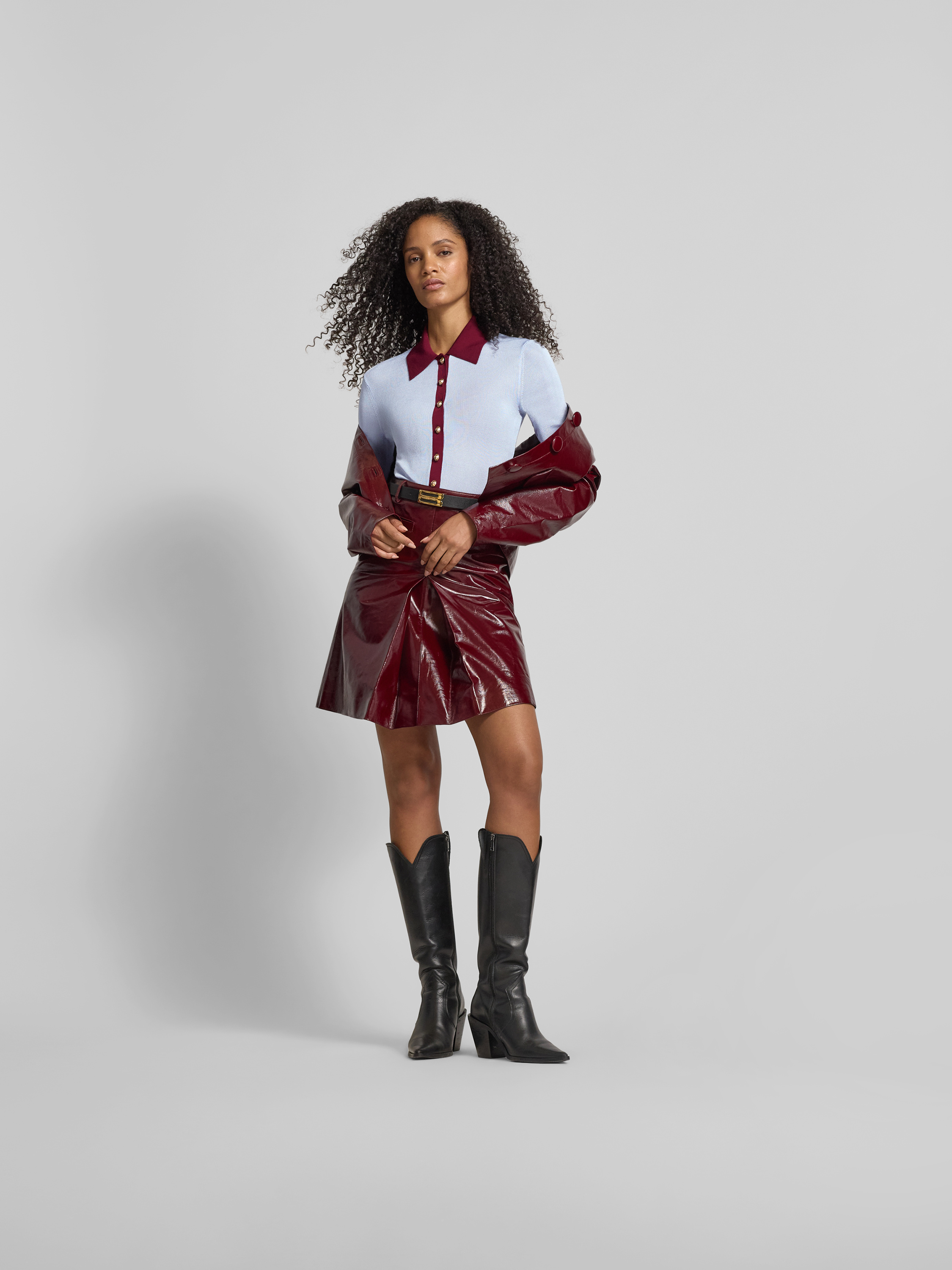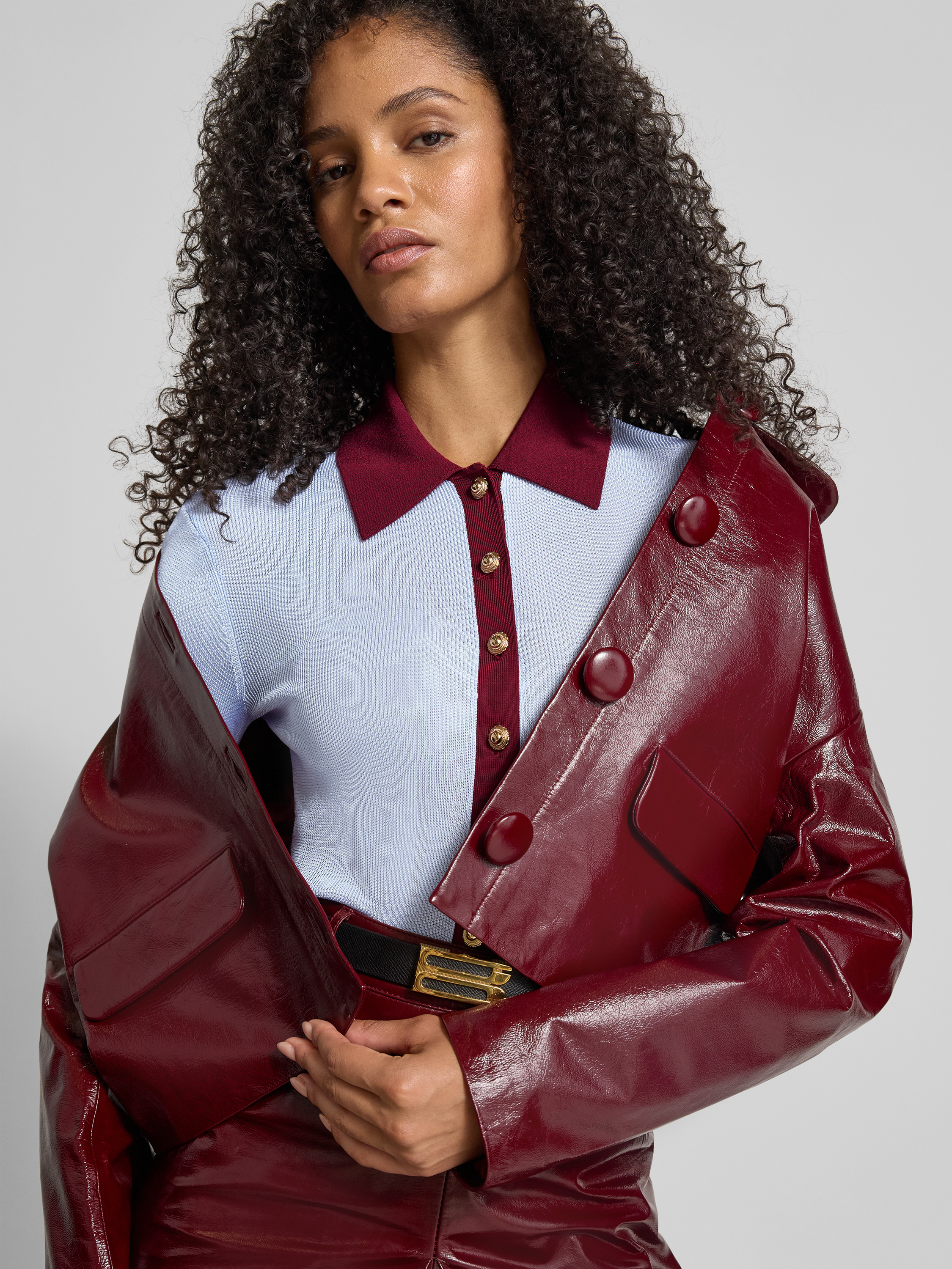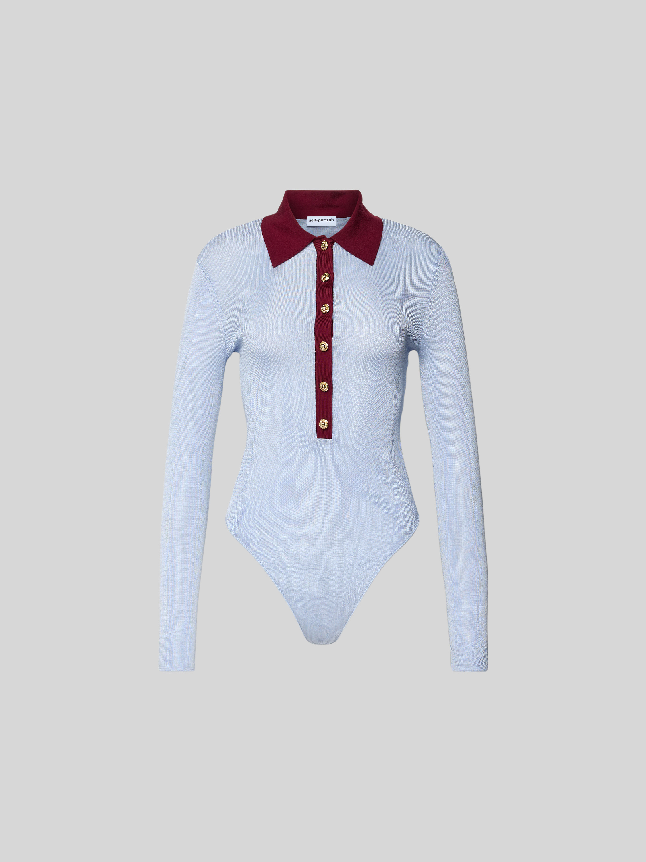 Der Damen Bodysuit von Self-Portrait fällt durch seine eng anliegende Passform auf, die sich sanft an den Körper schmiegt und Bewegungsfreiheit ermöglicht. Der Umlegekragen und das langärmelige Design bringen eine klassische Note in die Strick-Optik. So eignet sich das Modell für verschiedenste Anlässe.