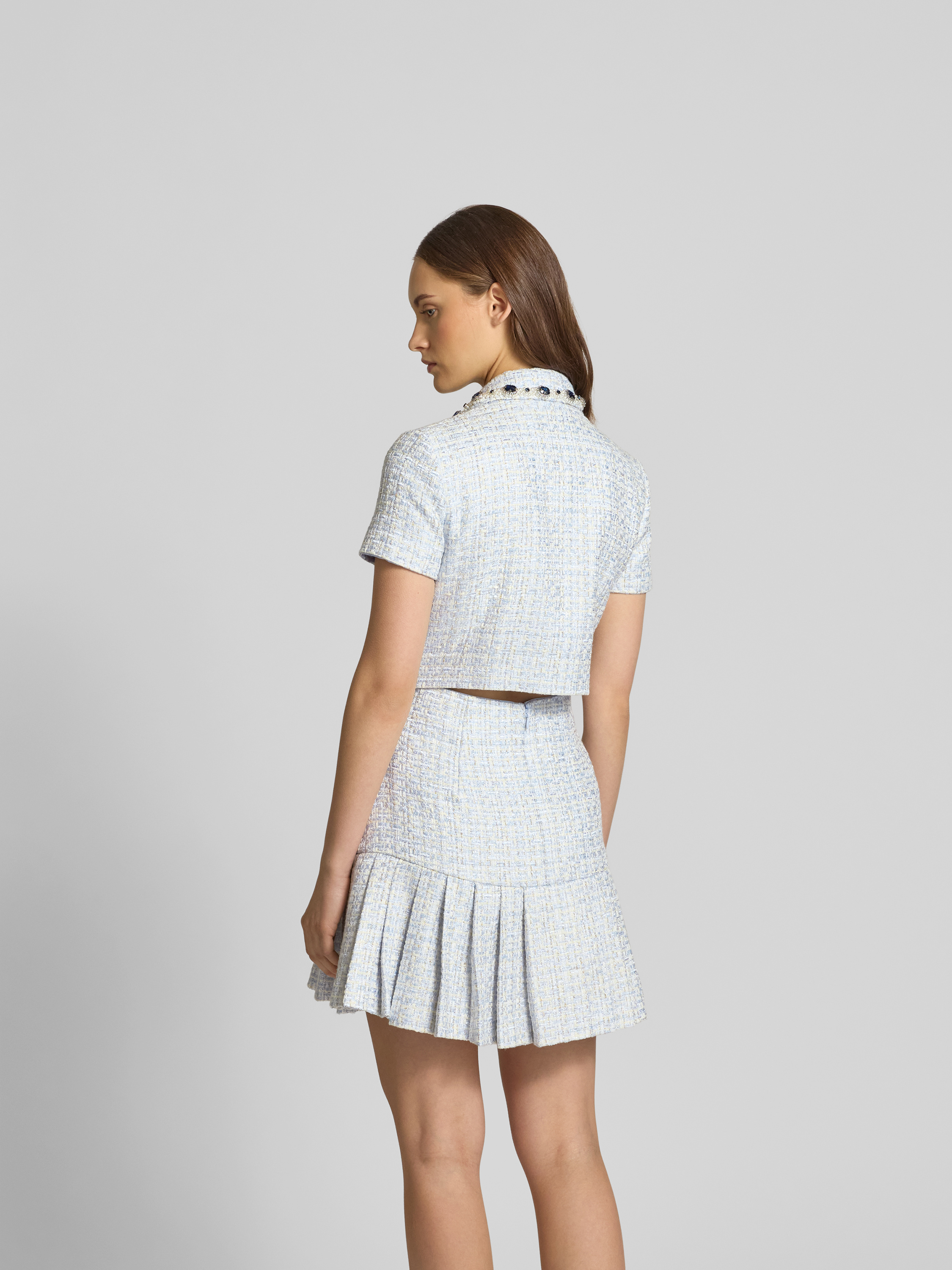 Self-PortraitKnielanges Kleid mit Hemdblusenkragen in hellblau