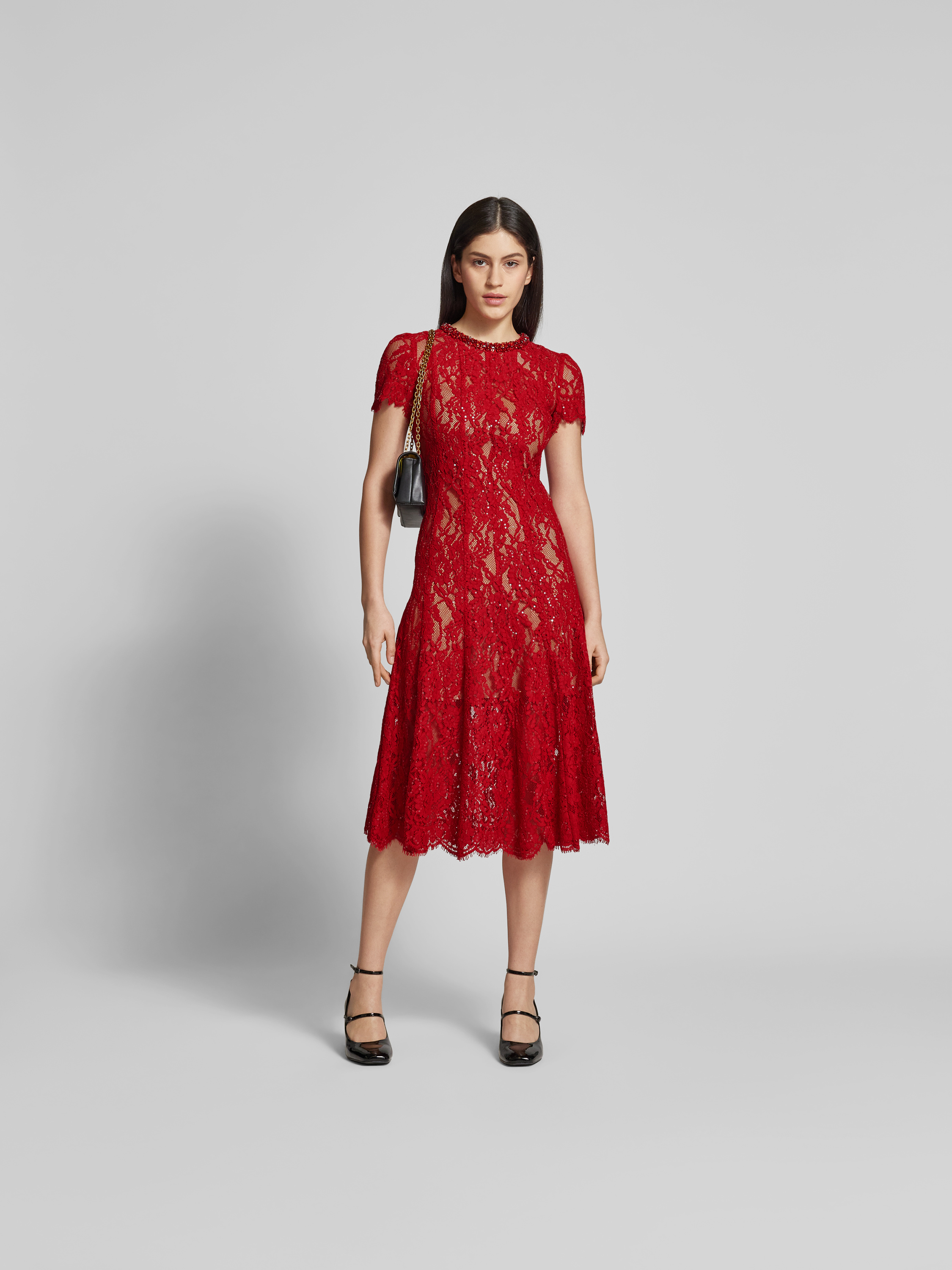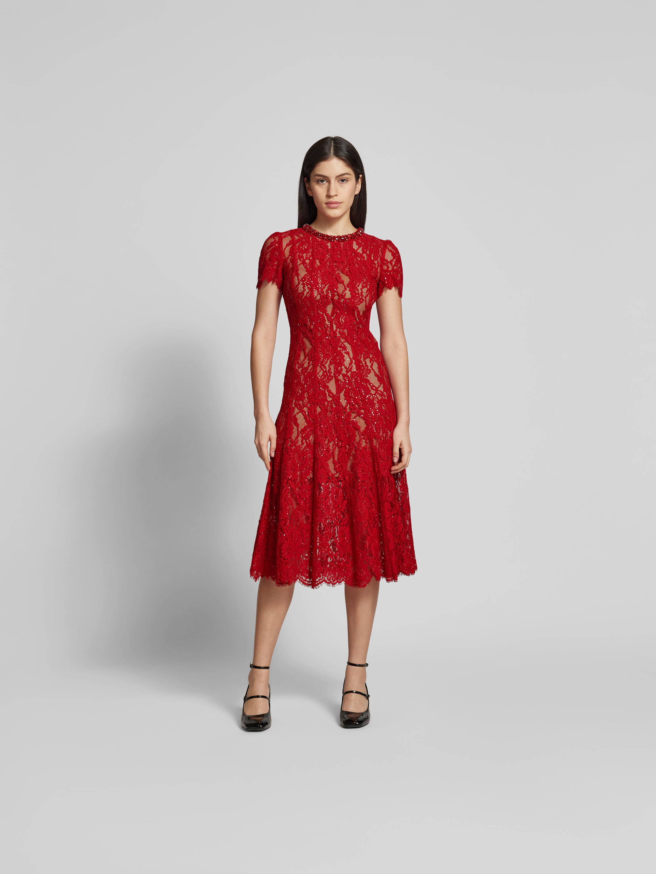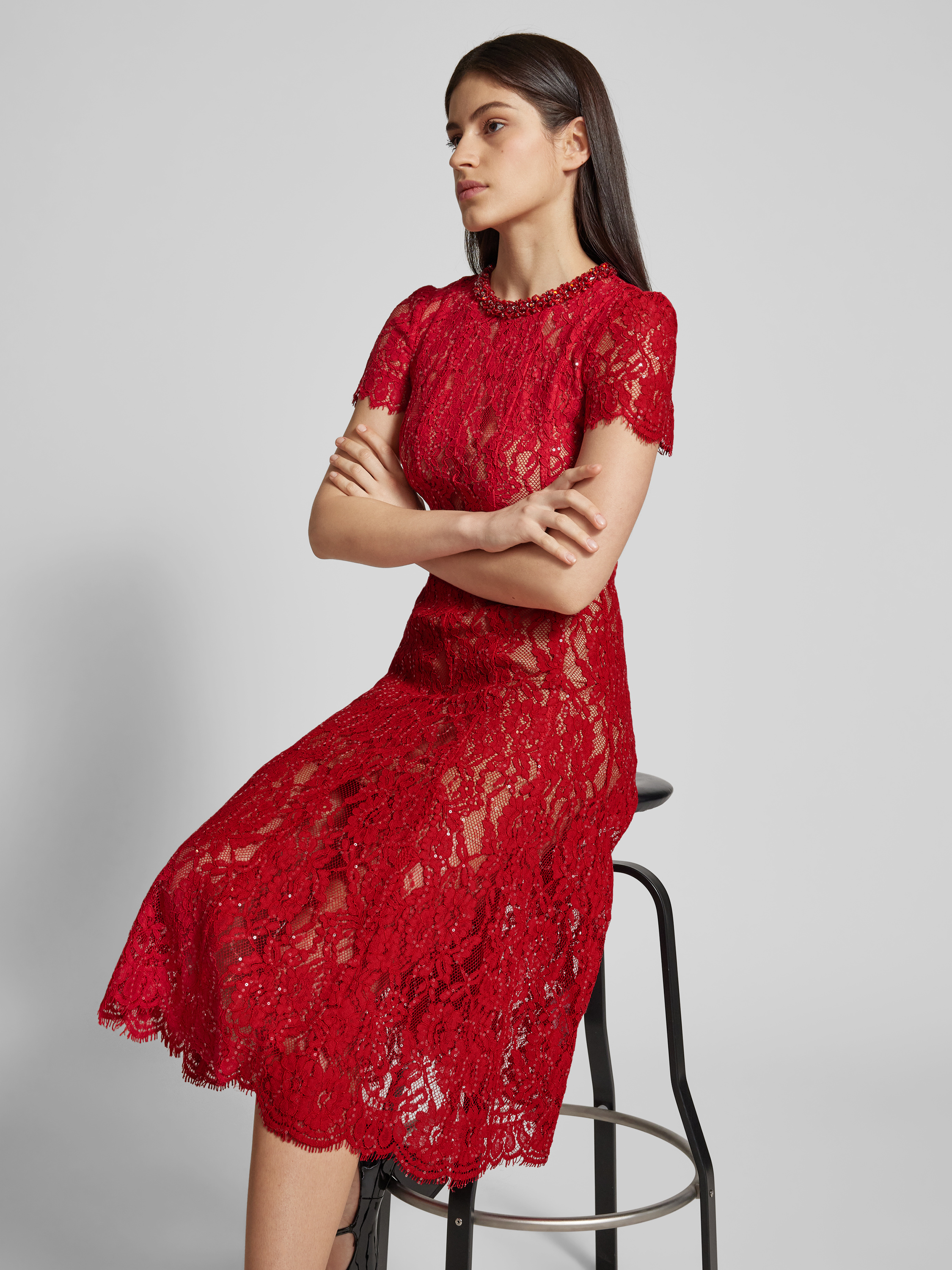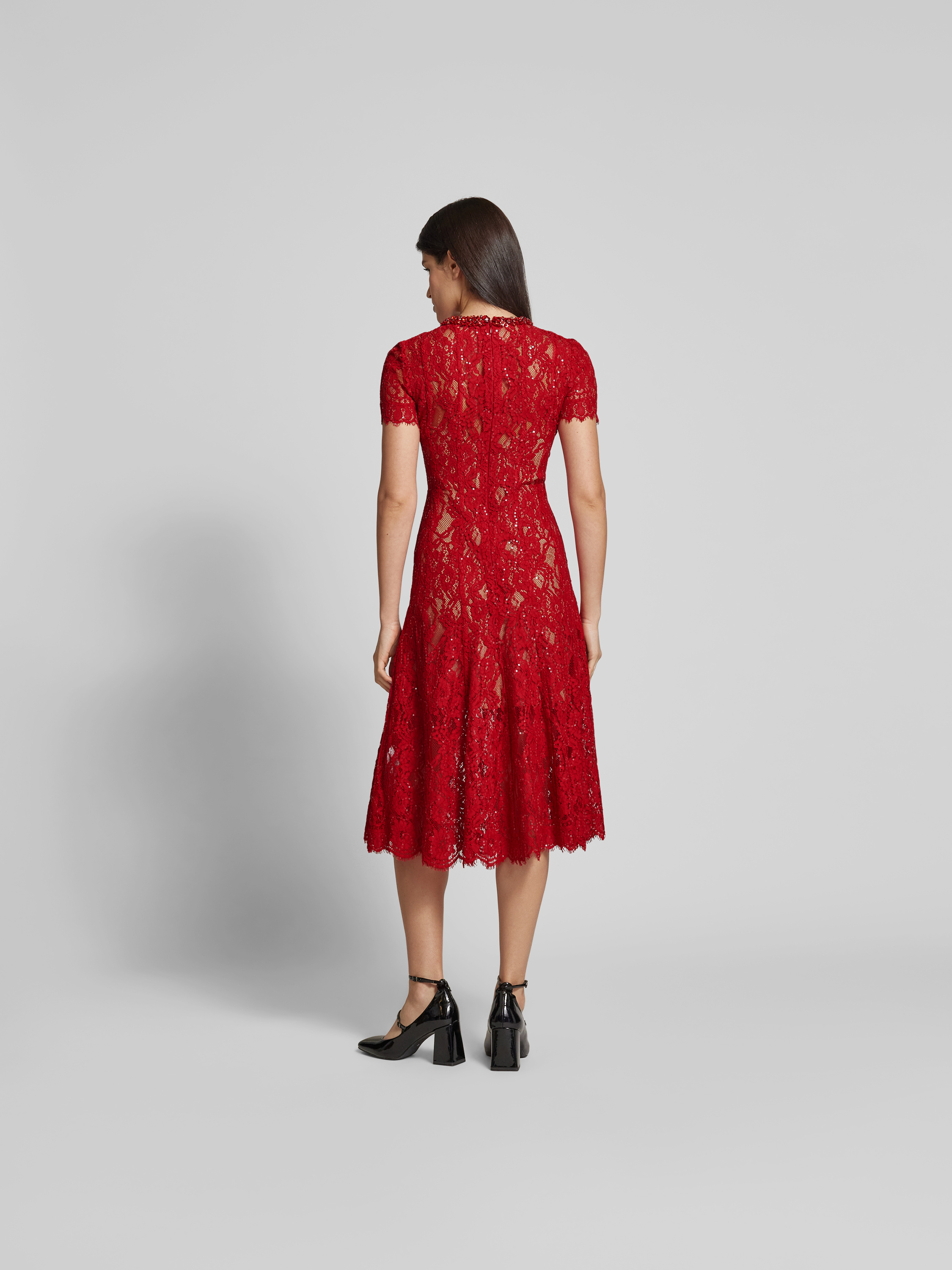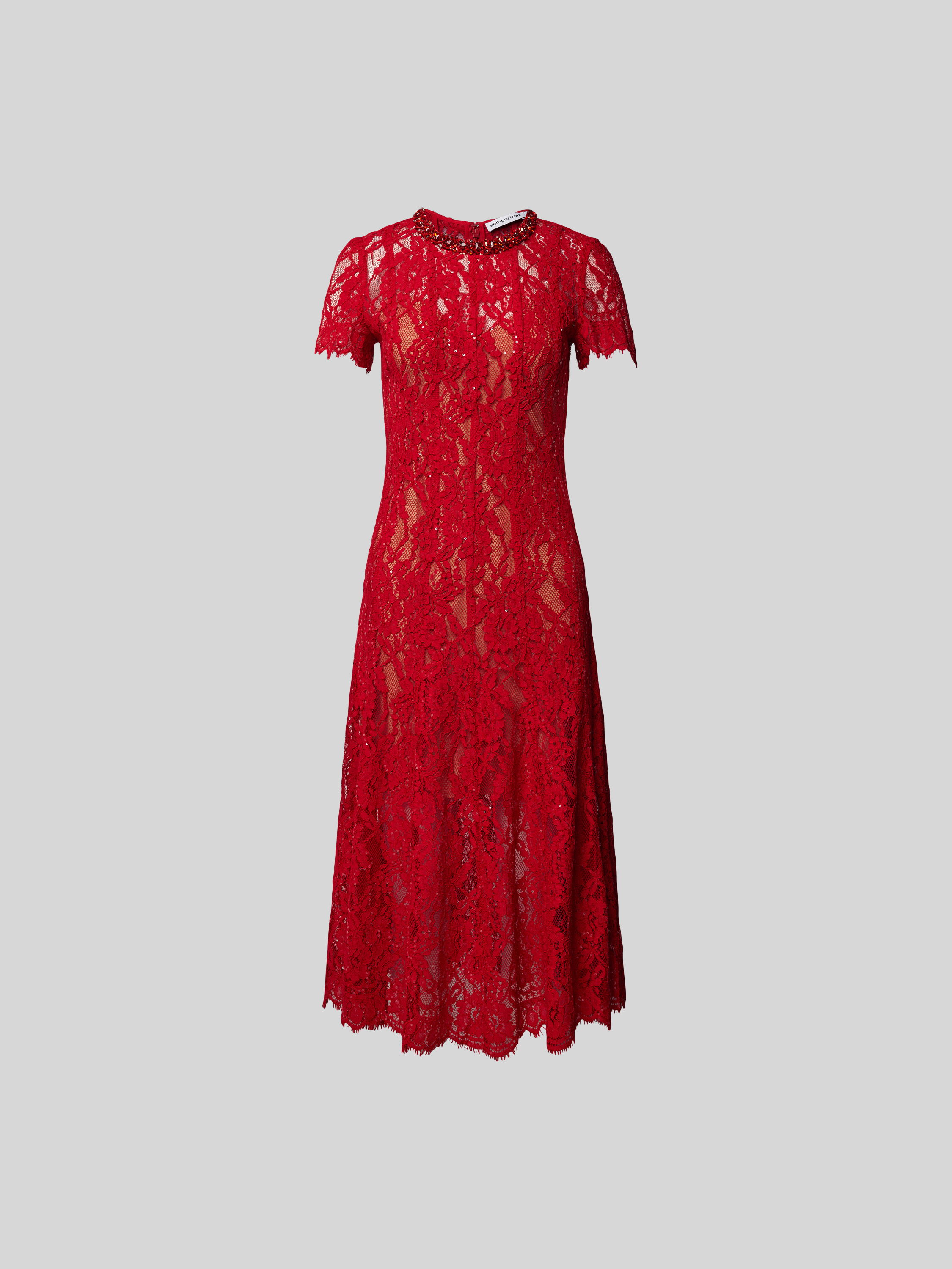 Self-PortraitMidikleid aus floraler Spitze in rot