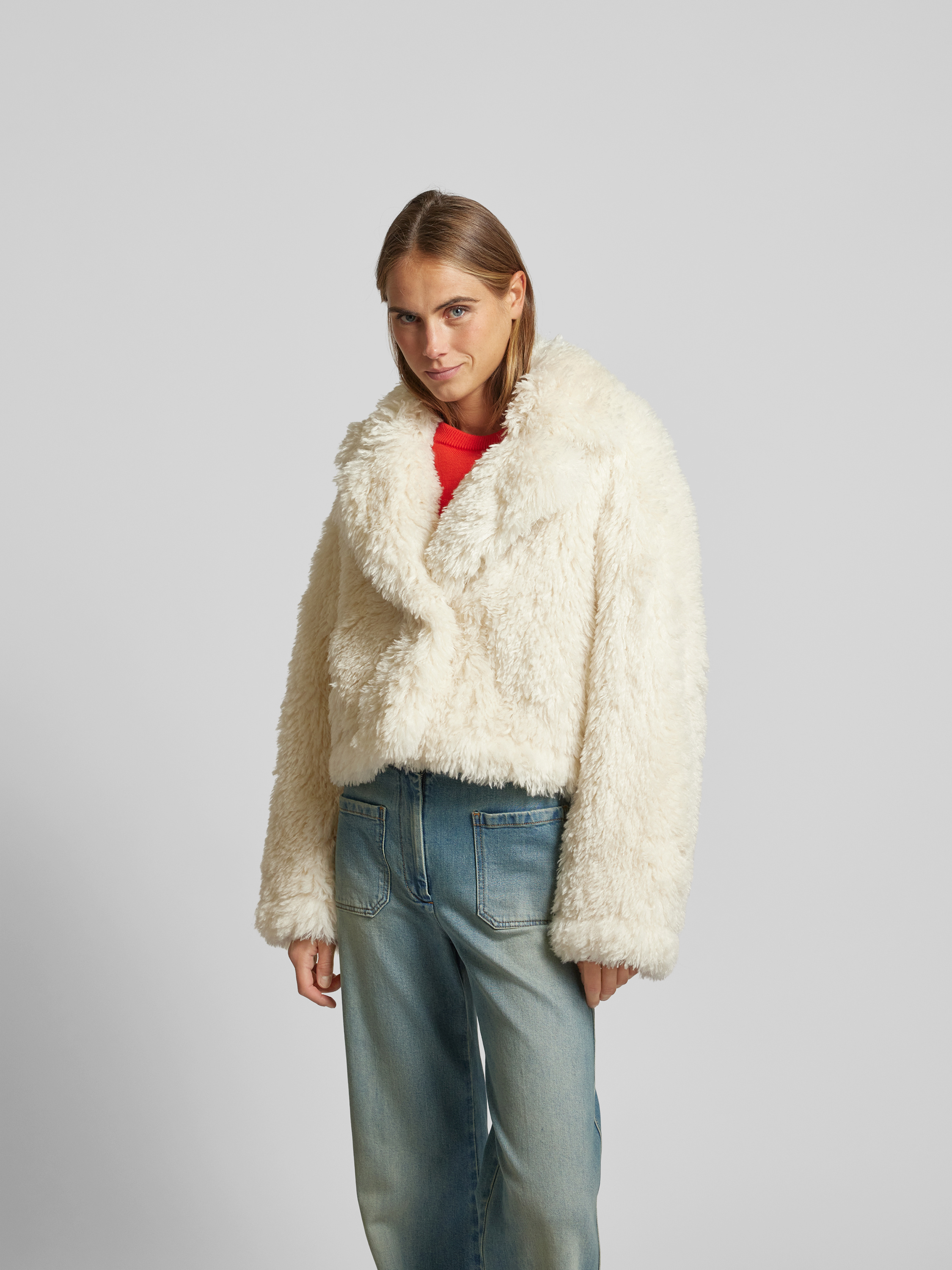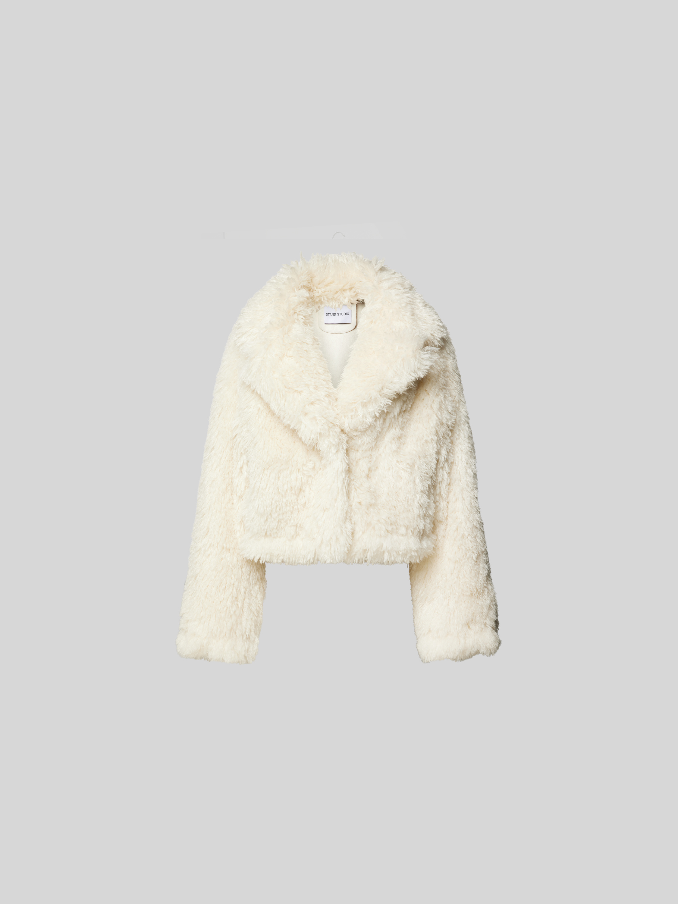 Die Cropped Jacke von Stand Studio zeigt sich in moderner Silhouette und bringt durch das Kunstfell eine angenehme Haptik ins Spiel. Ein klassischer Reverskragen verleiht dem Modell eine zeitlose Note, während der Regular Fit vielseitige Kombinationsmöglichkeiten eröffnet. So ergänzt sie mühelos unterschiedlichste Outfits.