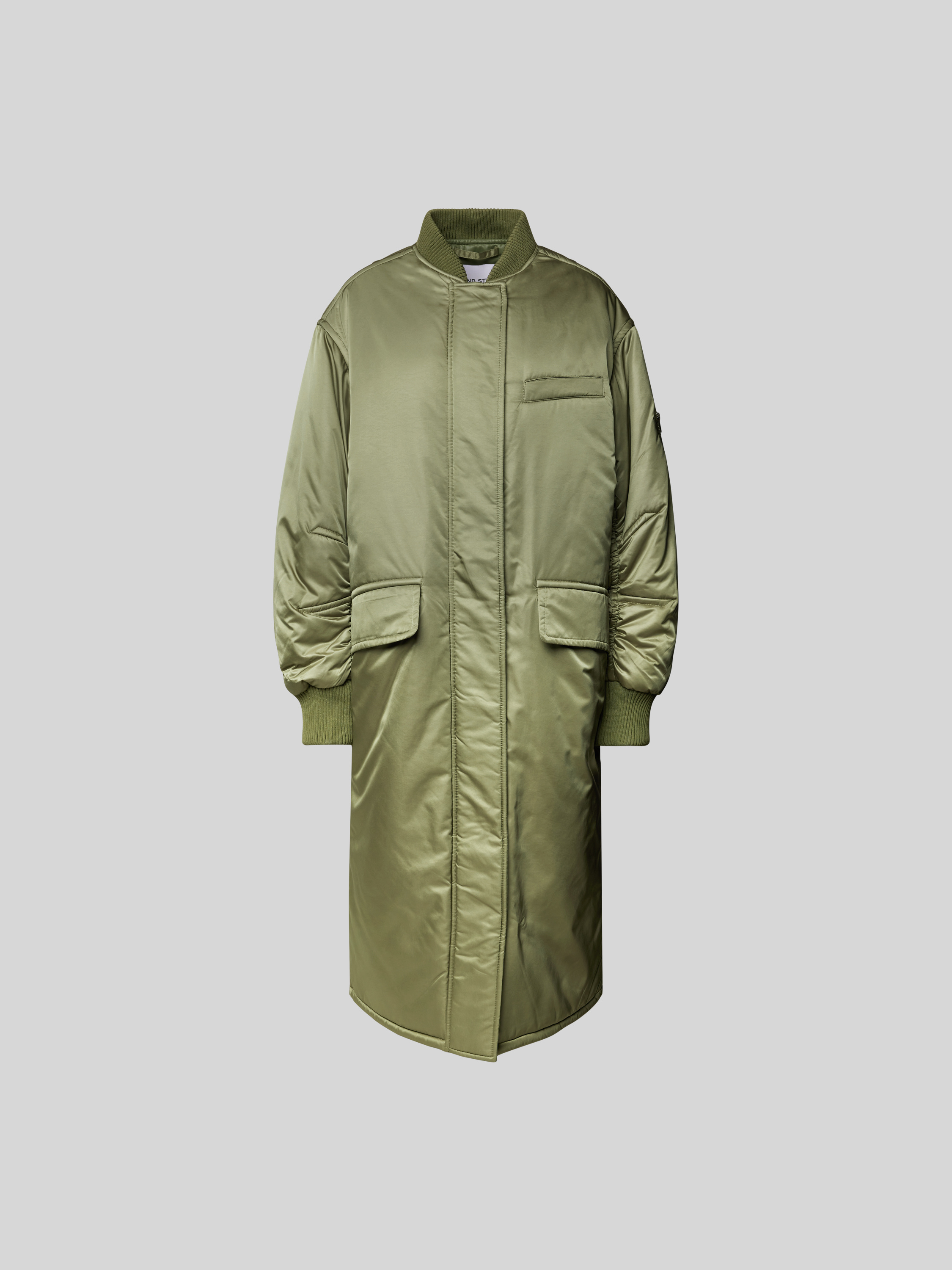 Der Damen Parkamantel von Stand Studio zeigt sich im Regular Fit und bringt durch den Stehkragen sowie die gerippten Abschlüsse eine angenehme Alltagstauglichkeit mit. Praktische Pattentaschen und eine Brusttasche unterstützen das strukturierte Design. So eignet sich der Mantel vielseitig für wechselnde Wetterlagen.