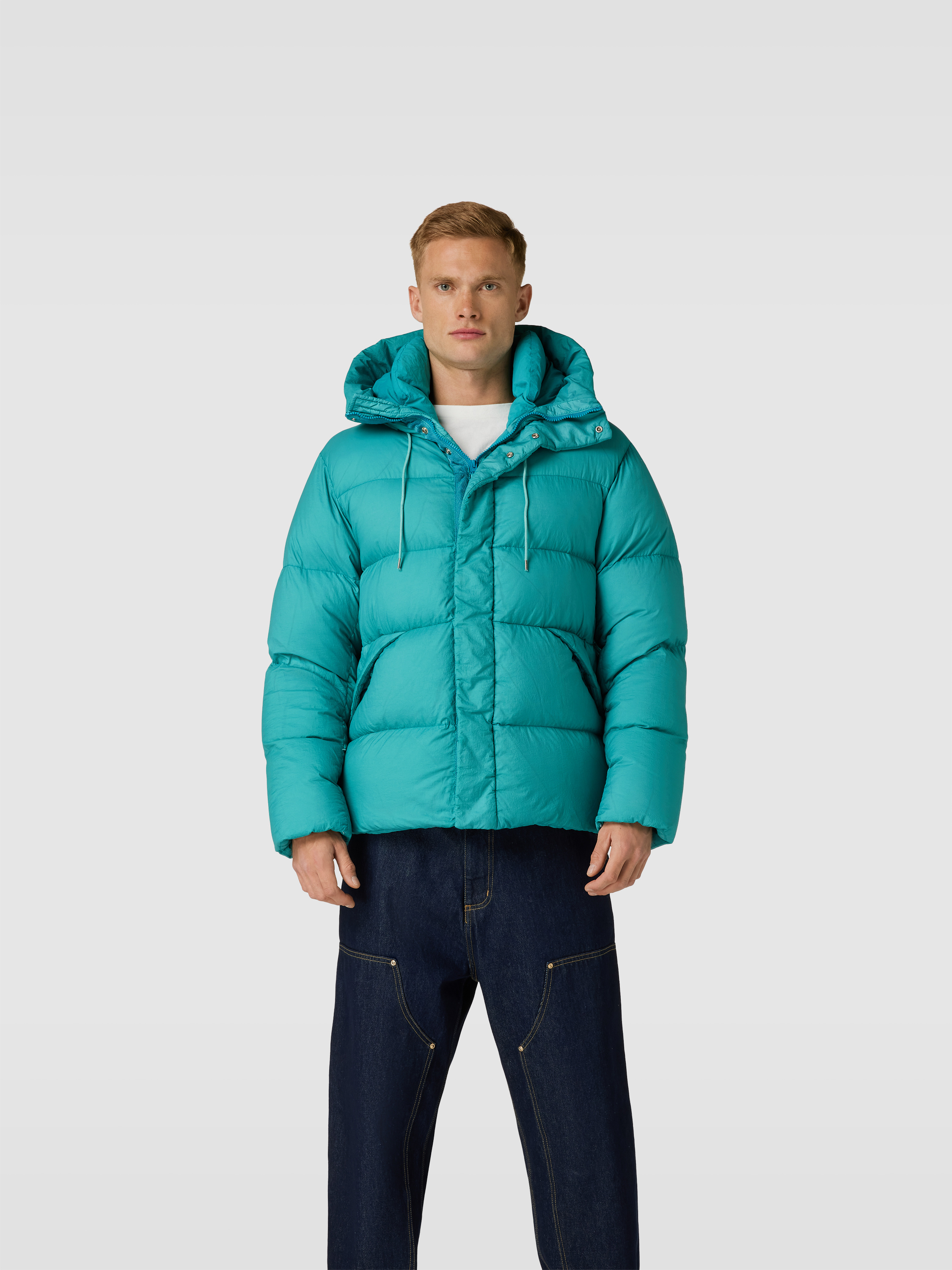 Die Daunenjacke mit Steppnähten von Ten C liegt angenehm am Körper und sorgt durch die hochwertige Daunenfüllung für wohlige Wärme. Mit Kapuze und praktischen Taschen ausgestattet, eignet sie sich ideal für kühlere Tage. Ihr moderner Schnitt unterstützt eine bewegliche und komfortable Passform.