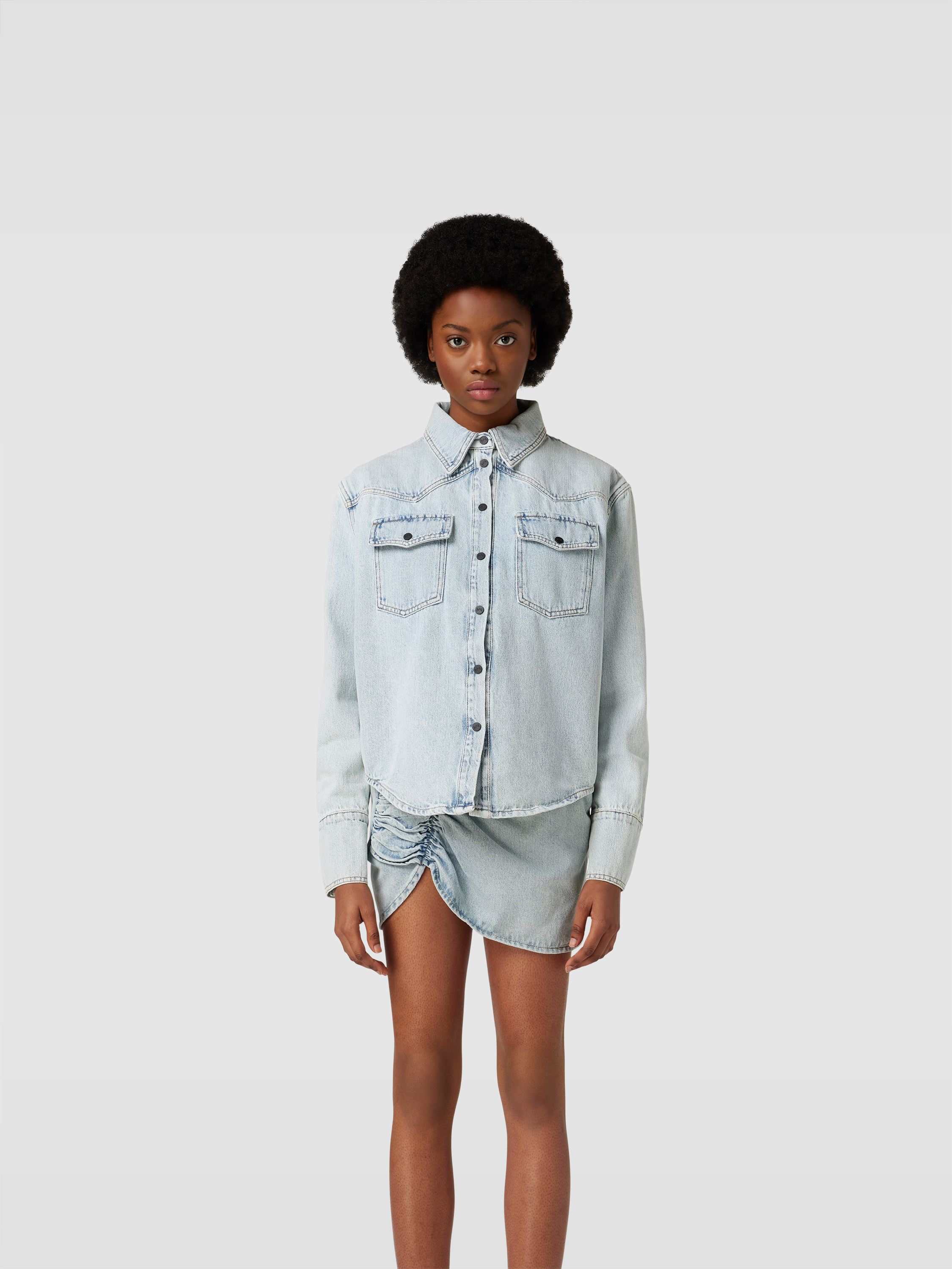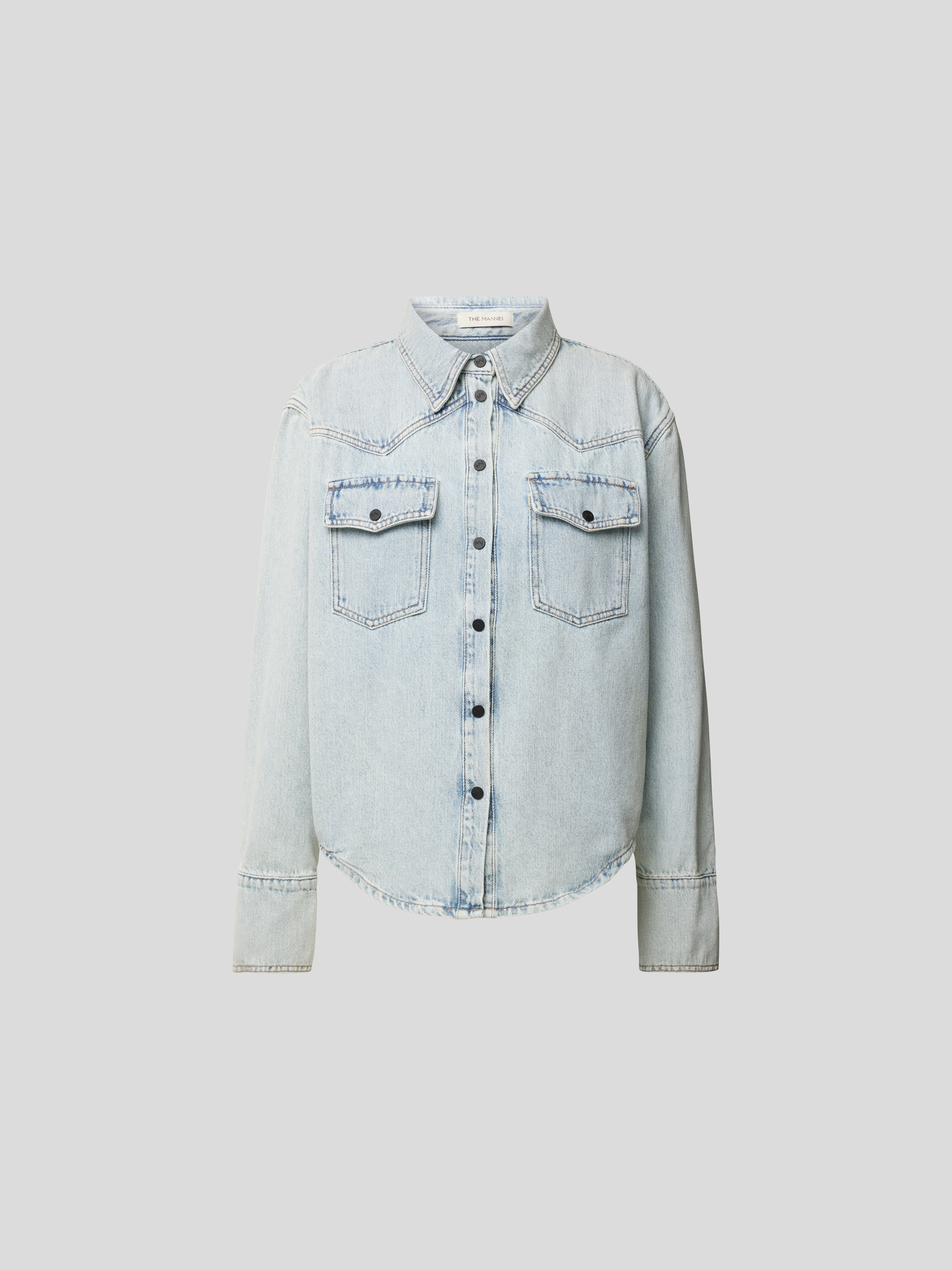 The ManneiJeansbluse aus reiner Baumwolle in jeansblau melange