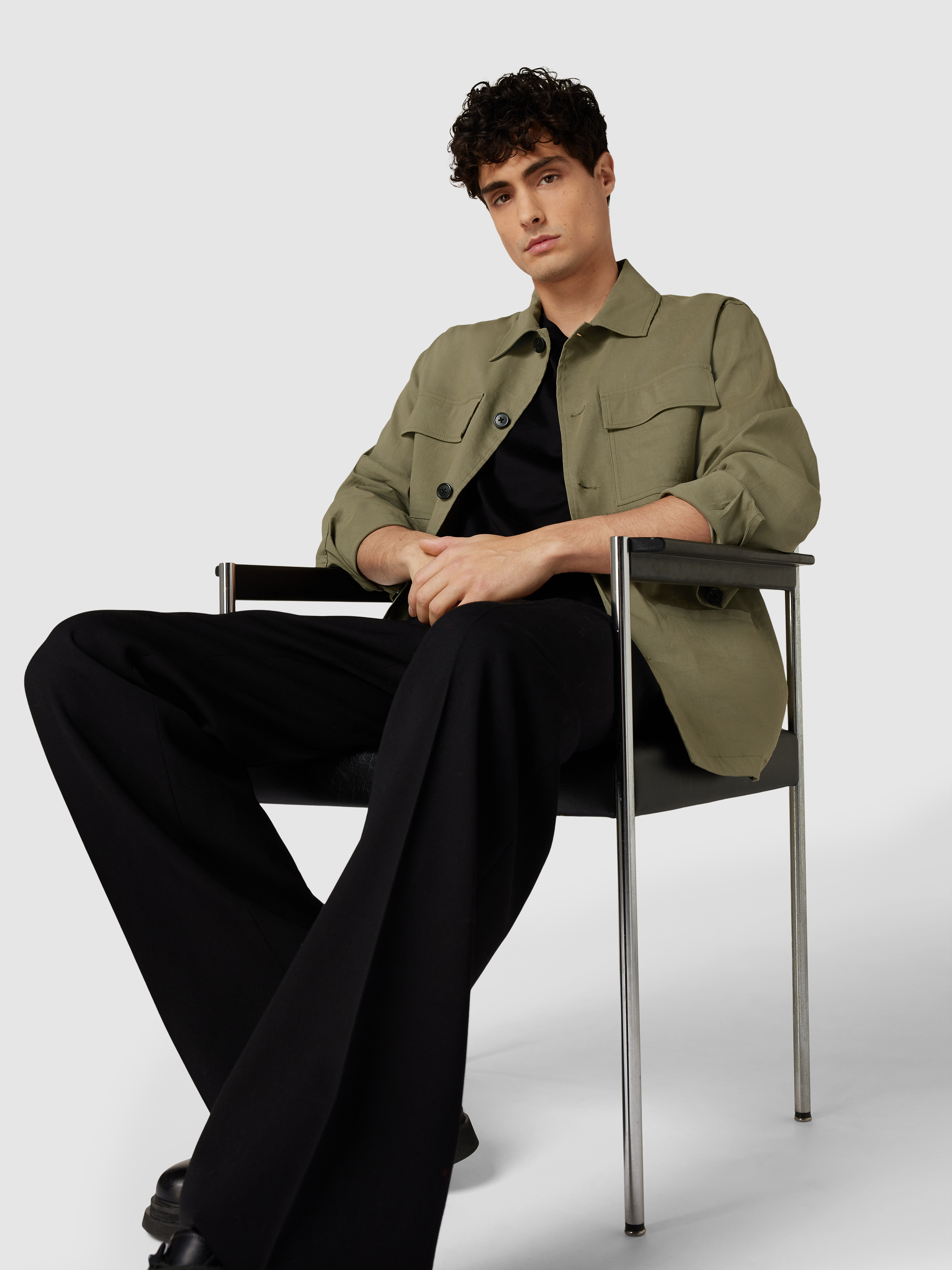 Die Hemdjacke von Theory verbindet dank des Leinen-Anteils eine angenehm leichte Haptik mit einem körpernahen Schnitt, der Bewegungsfreiheit zulässt. Praktische Eingriff- und Brusttaschen erleichtern den Alltag, während das langärmelige Design vielseitige Kombinationsmöglichkeiten für verschiedene Anlässe eröffnet.
