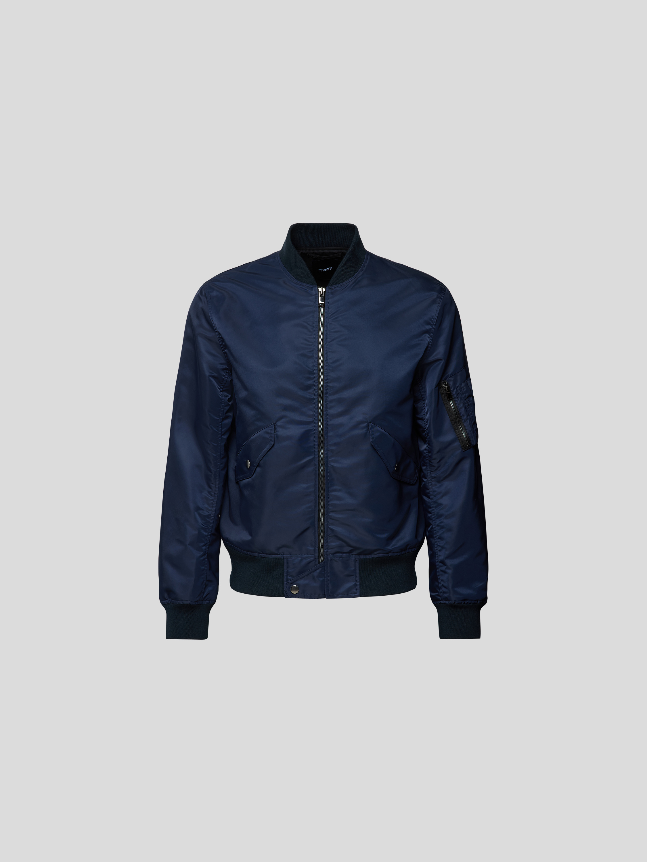 Die Jacke in Glanz-Optik von Theory fällt durch ihr strapazierfähiges Material und die lockere Passform angenehm auf. Ein elastischer Stehkragen sorgt für angenehmen Sitz, während praktische Taschen genügend Raum für Kleinigkeiten bieten. So eignet sich das Modell ideal für vielseitige Einsätze im Alltag.
