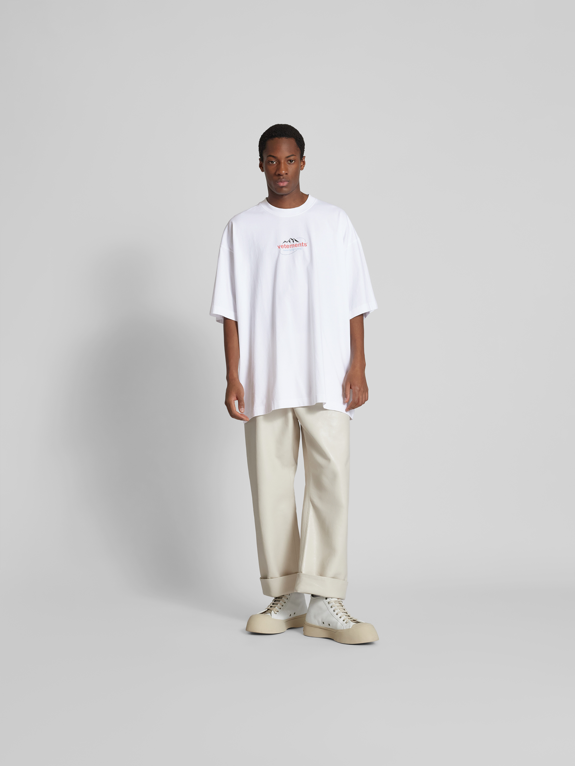 Das Herren T-Shirt von VETEMENTS fällt durch seinen großzügigen Schnitt angenehm locker und sorgt für Bewegungsfreiheit im Alltag. Gefertigt aus reiner Baumwolle, trägt sich das Oversized T-Shirt aus reiner Baumwolle besonders weich auf der Haut. Das schlichte Design mit Label-Print lässt sich vielseitig kombinieren.