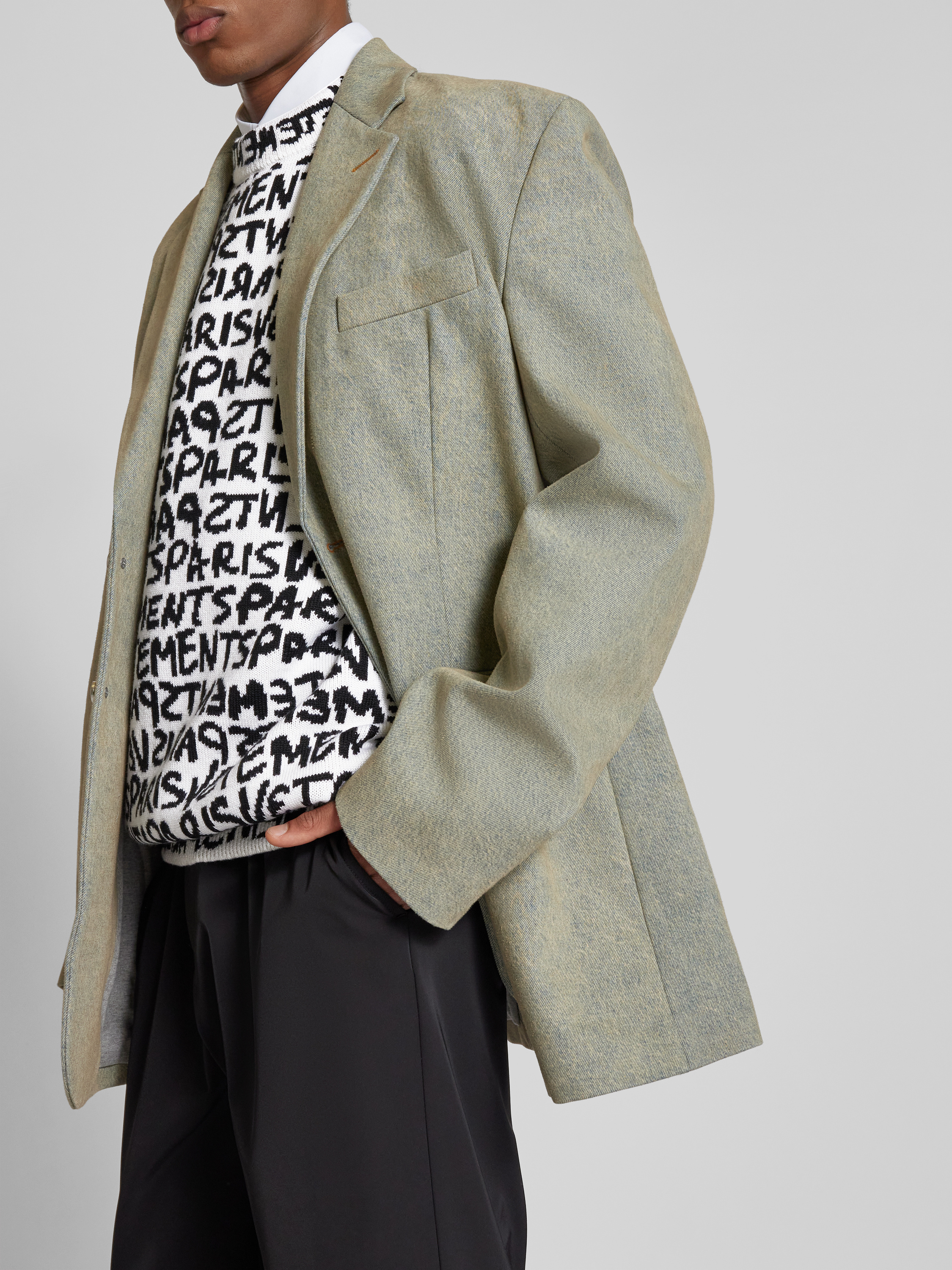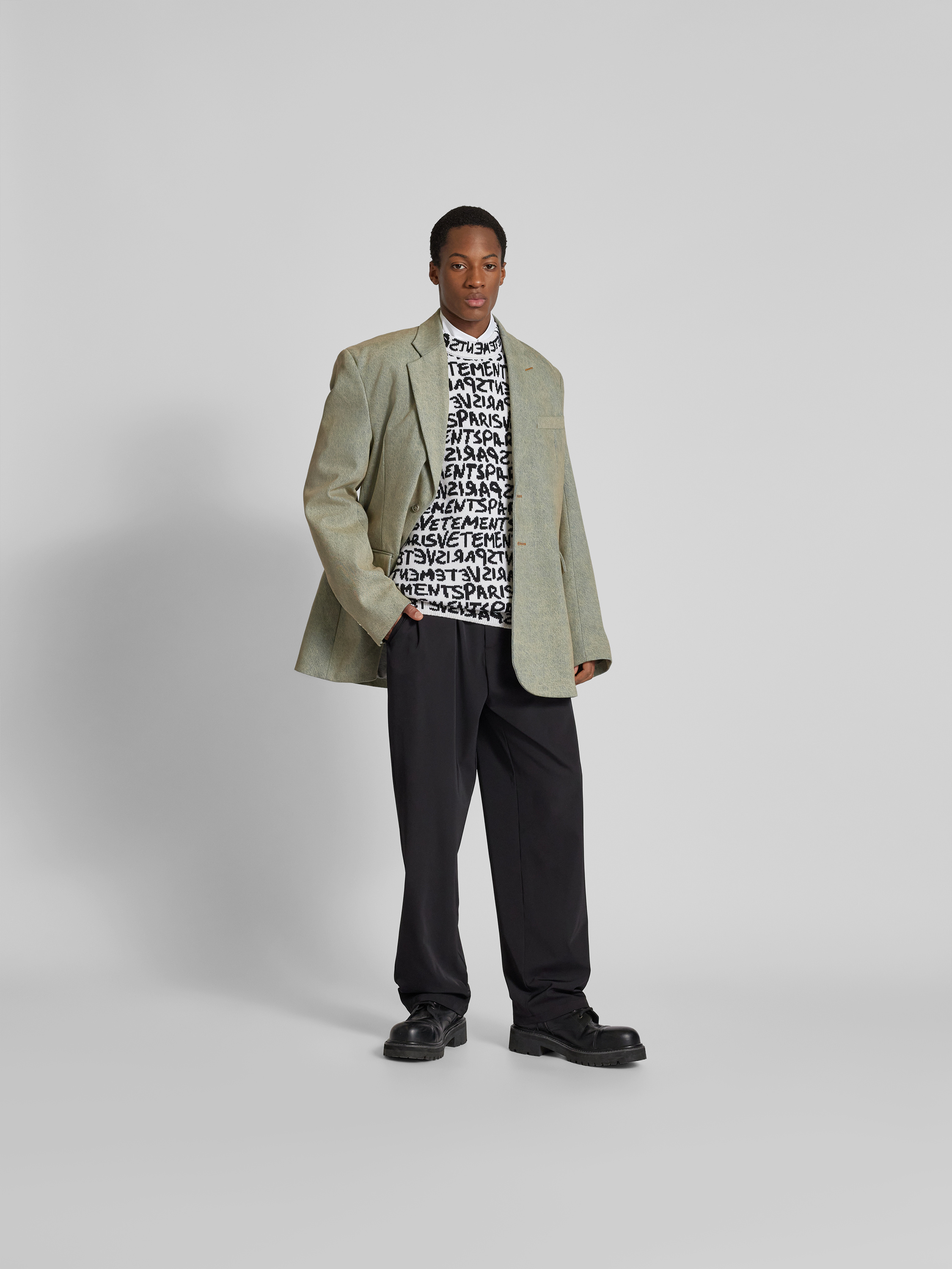 Der Herrenpullover von VETEMENTS aus reiner Wolle fällt durch seine großzügige Oversized-Passform angenehm locker. Der hohe Stehkragen und das markante Allover-Logo-Muster sorgen für einen entspannten Look, der im Alltag vielseitig eingesetzt werden kann. In Strick-Optik gehalten, fühlt sich der Oversized Wollpullover mit Stehkragen besonders weich an.