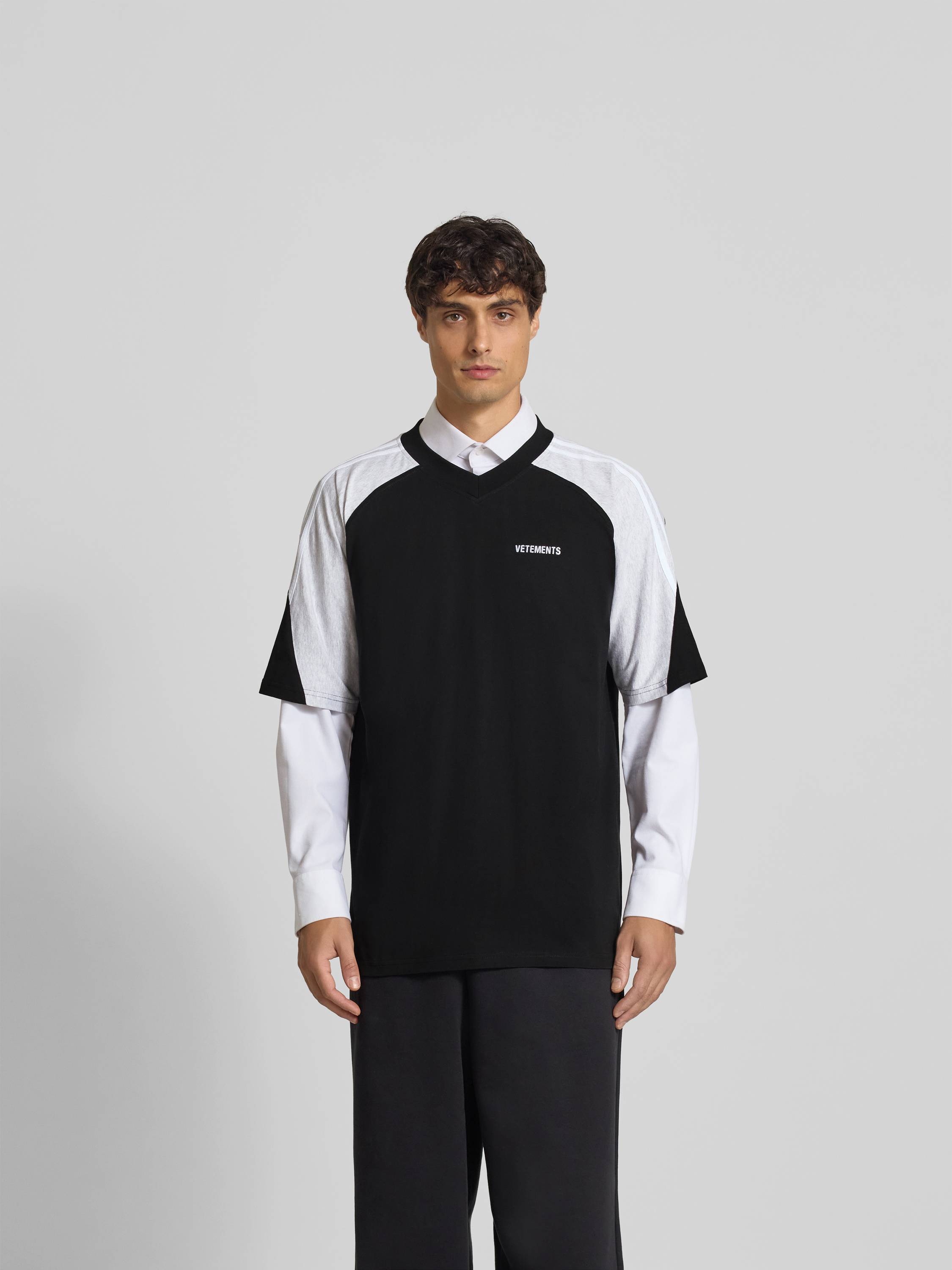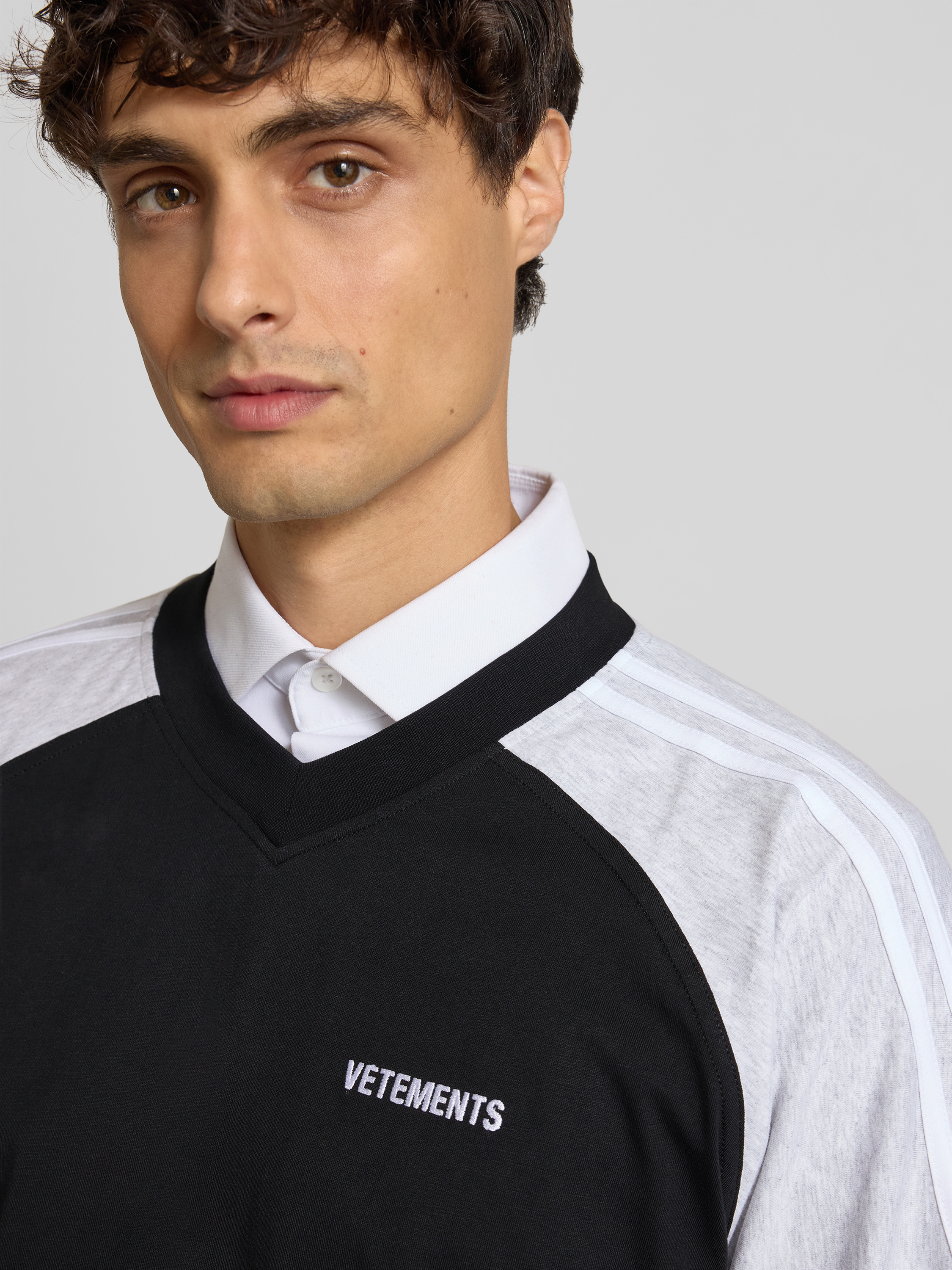 Das Herren Regular Fit T-Shirt von VETEMENTS vereint einen bequemen Schnitt mit einem modernen V-Ausschnitt und kurzen Ärmeln. Durch den angenehmen Baumwoll-Mix liegt es leicht auf der Haut und eignet sich ideal für vielseitige Kombinationen. Dezentes Logo-Stitching rundet das Design zurückhaltend ab.