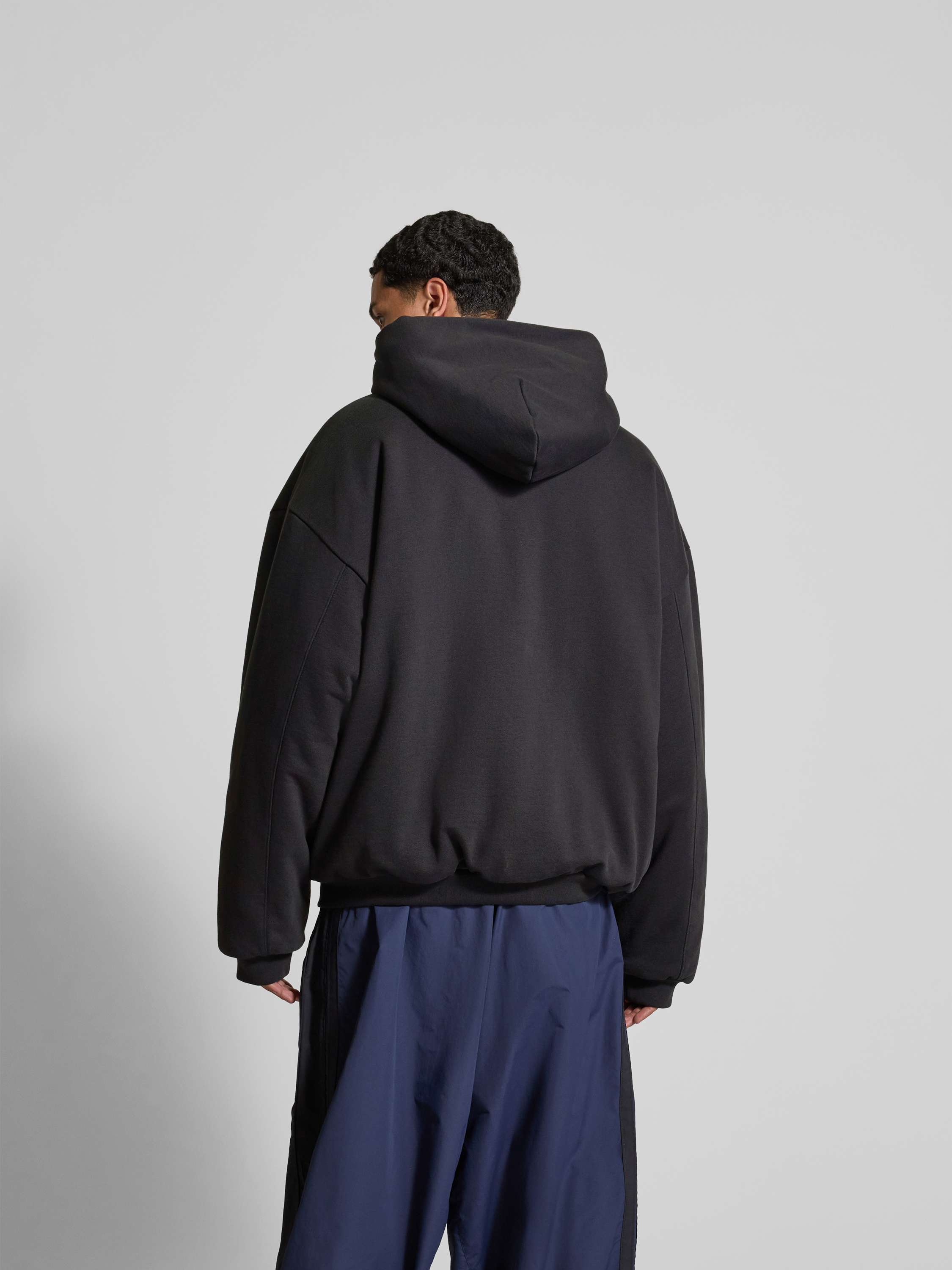 Die Herren Sweatjacke von VETEMENTS präsentiert sich im entspannten Relaxed-Fit und sorgt durch den weichen Baumwoll-Mix für ein angenehmes Tragegefühl. Eine großzügige Kapuze mit Tunnelzug sowie die Känguru-Tasche unterstreichen den sportlichen Charakter. So entsteht ein unkomplizierter Begleiter, der sich vielseitig kombinieren lässt.