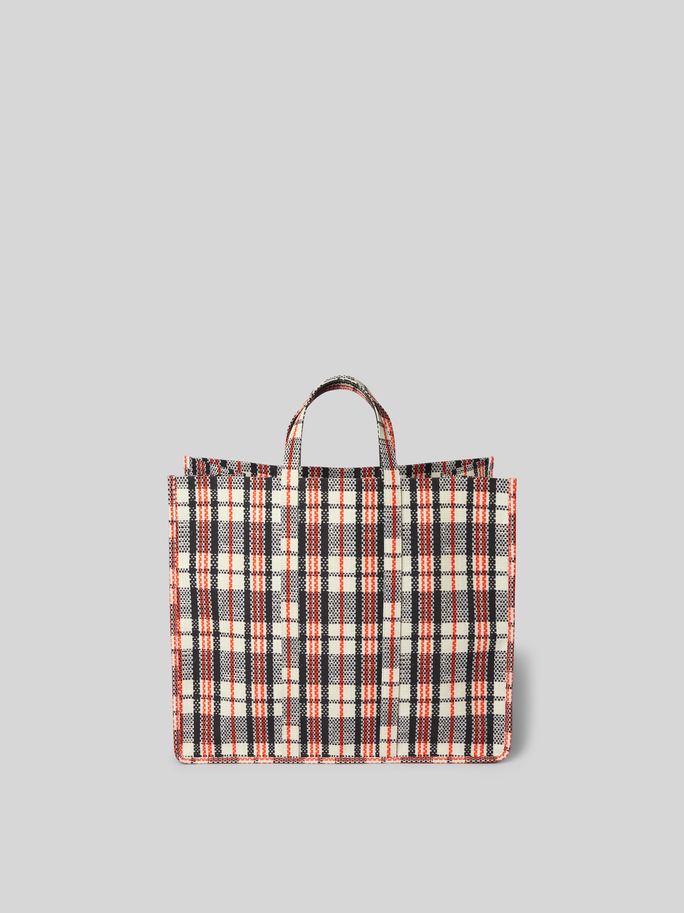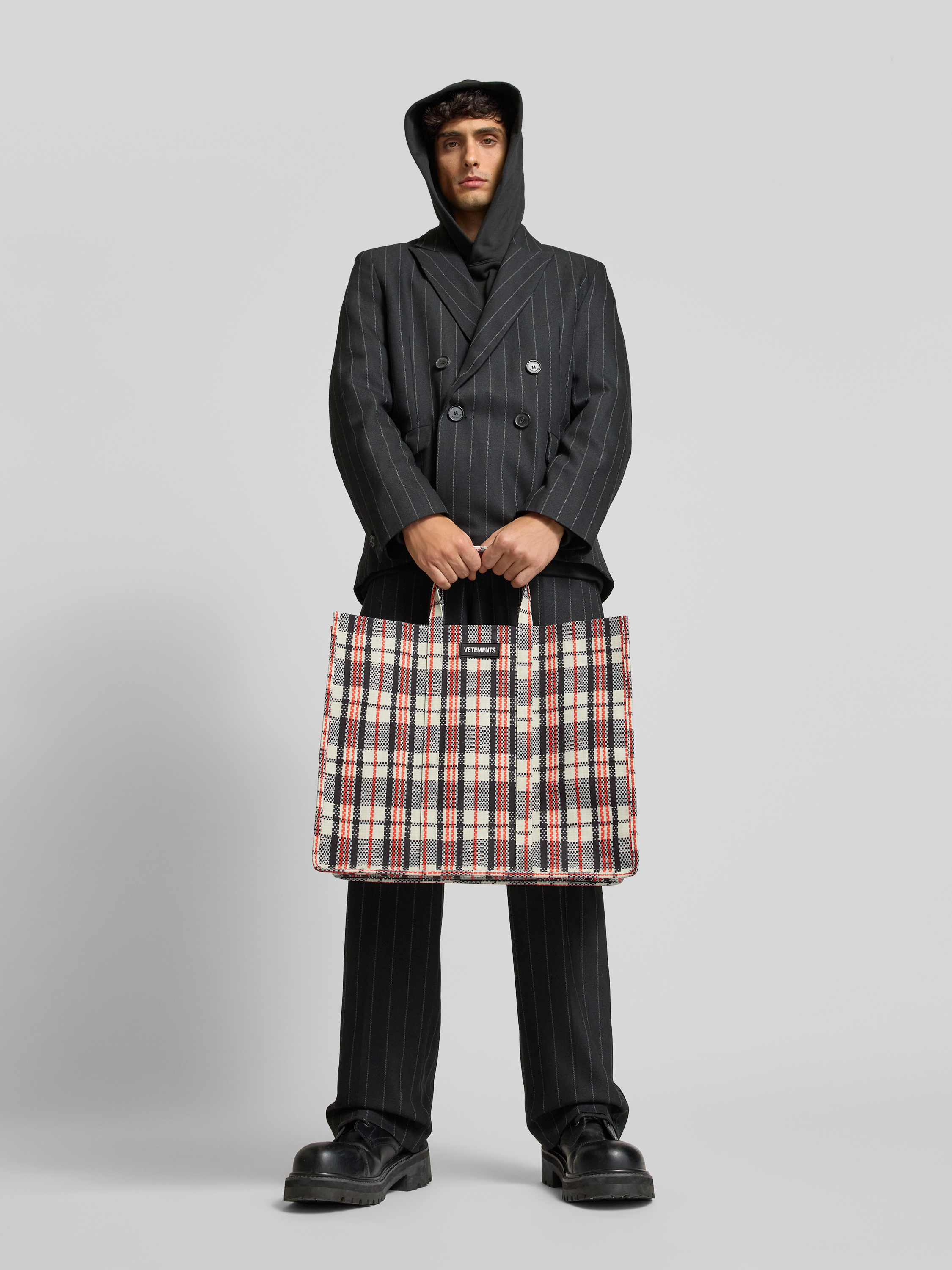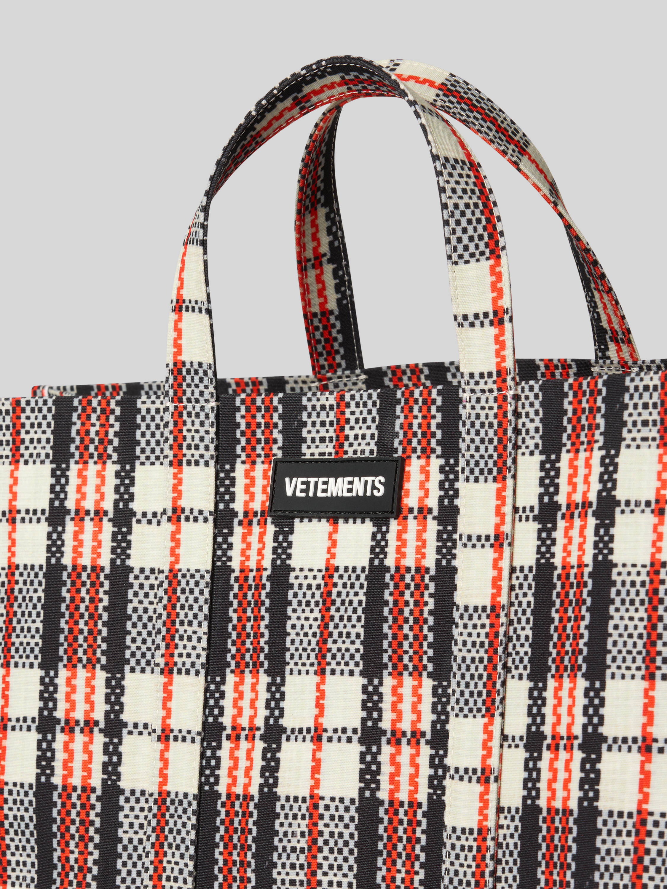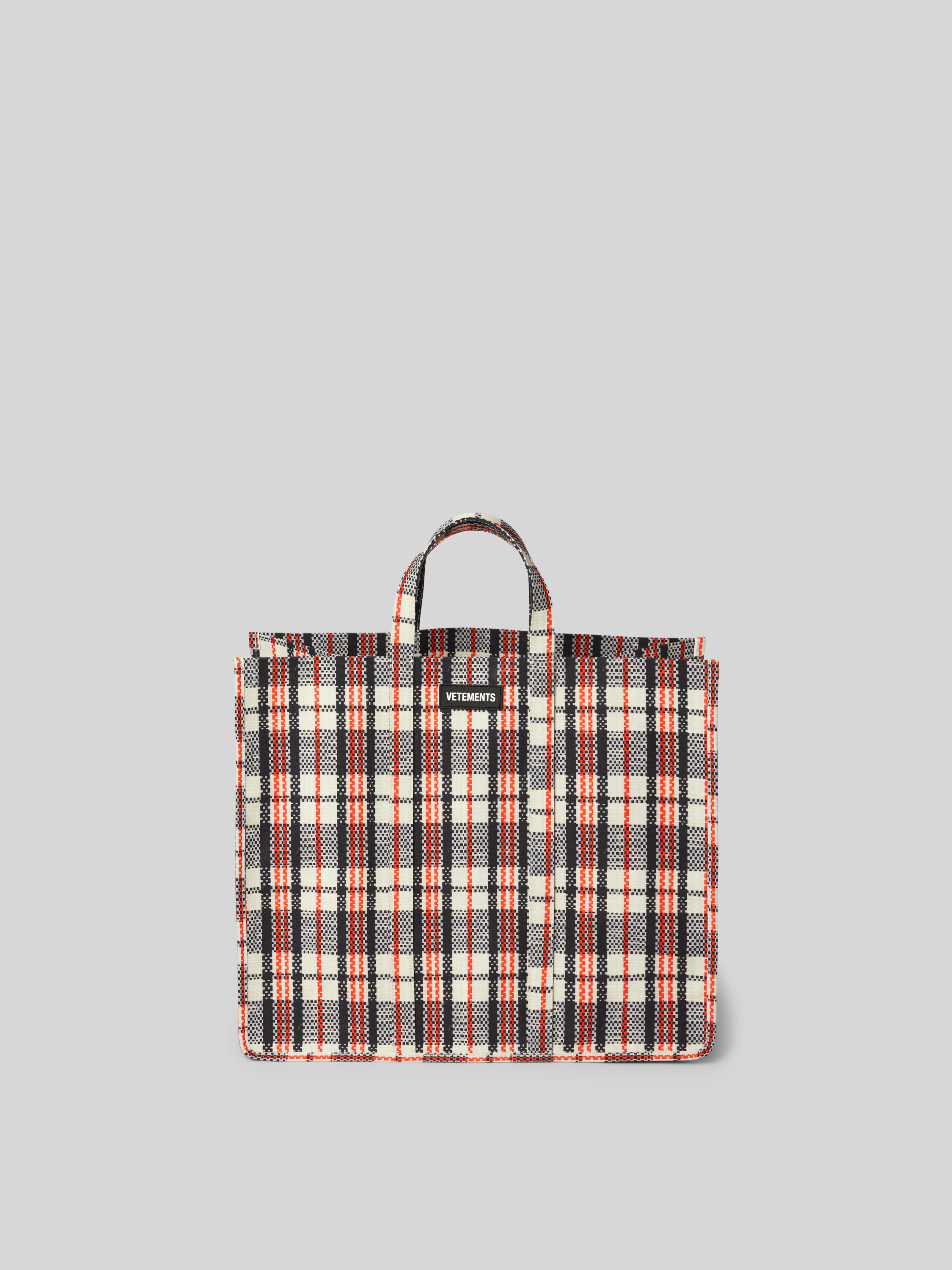 Der Herren Shopper von VETEMENTS zeigt sich in großzügigem Format und bietet mit offenem Hauptfach viel Platz für Alltägliches. Dank der robusten Tragehenkel liegt das Modell angenehm in der Hand. Ein dezentes Label-Detail setzt einen klaren, modernen Akzent.