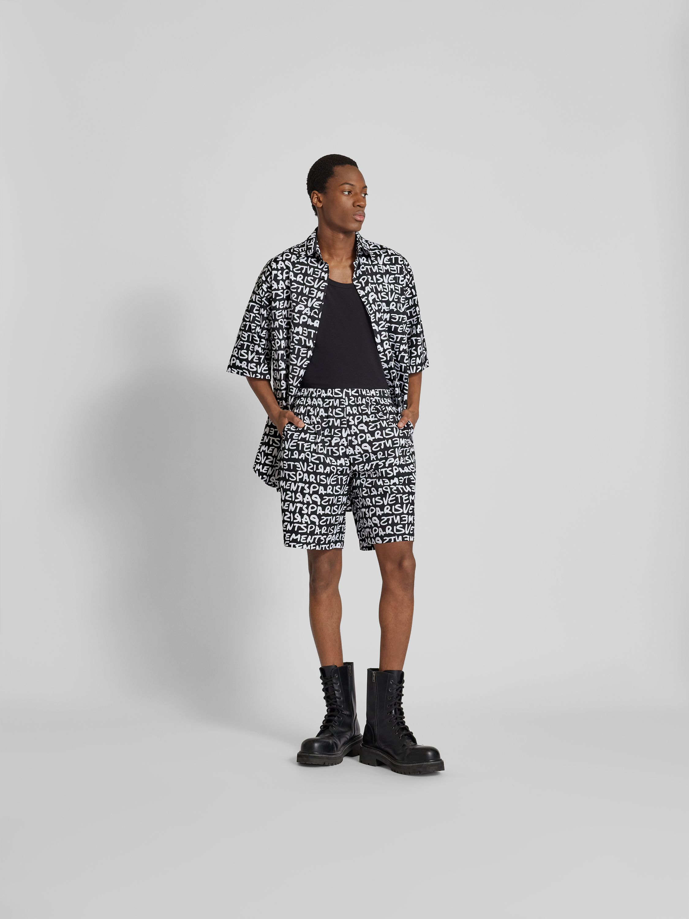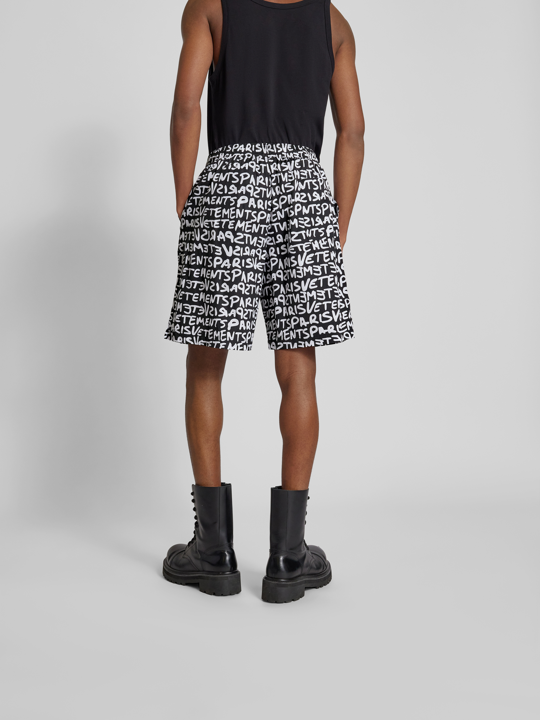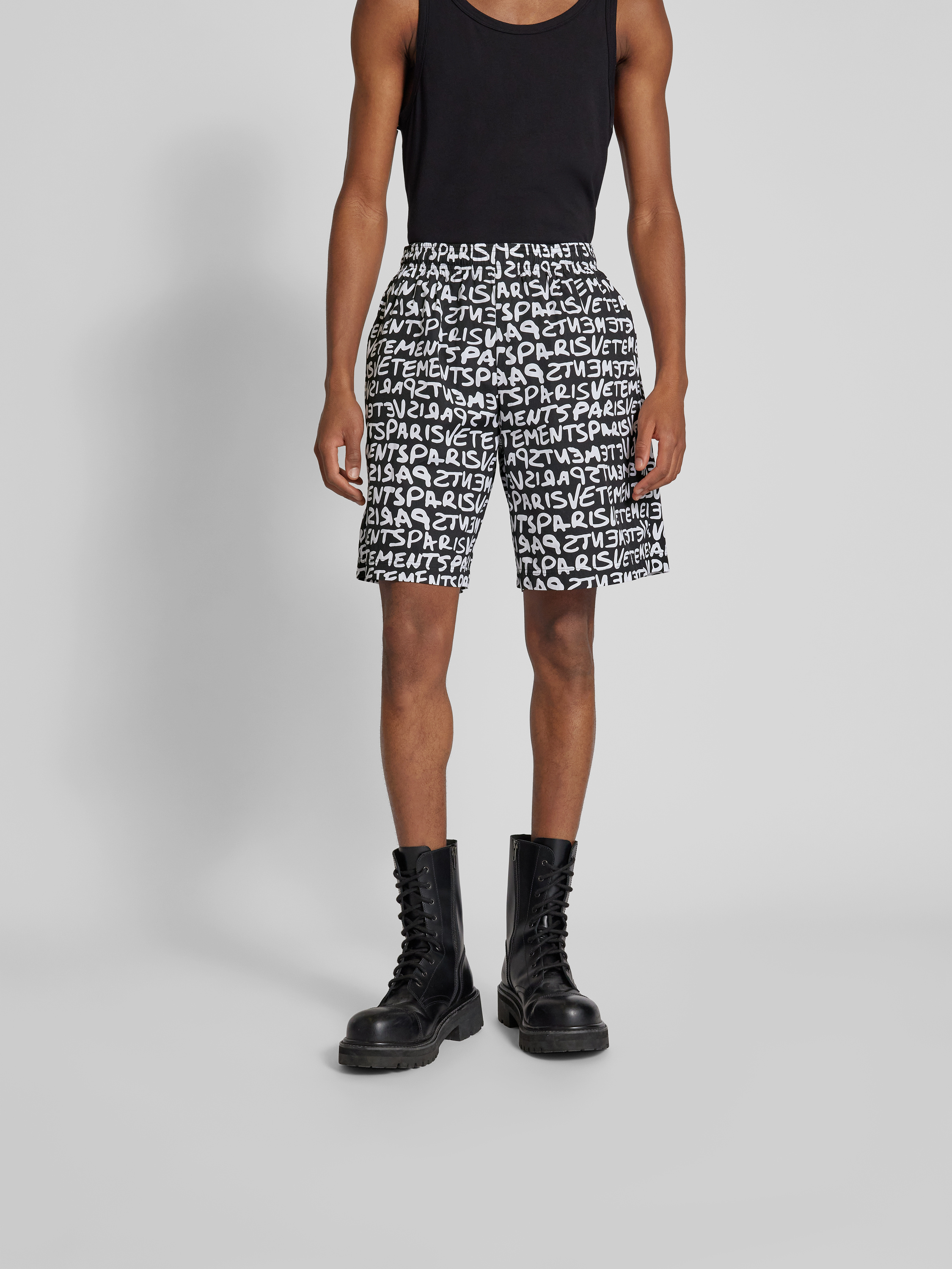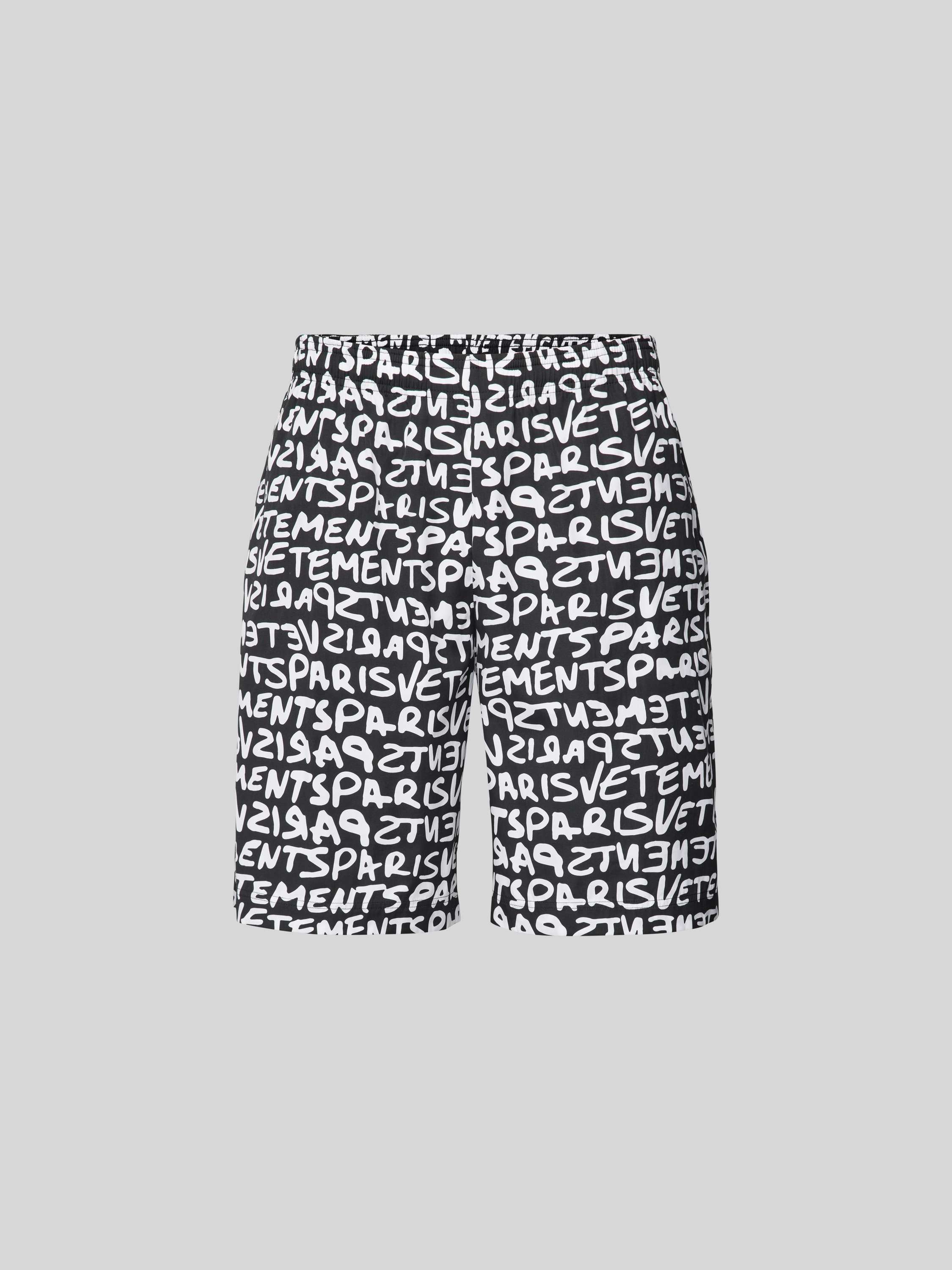 Die Herrenshorts von VETEMENTS zeigen sich in einer geraden Passform, die Bewegungsfreiheit zulässt und lässig wirkt. Reine Baumwolle sorgt für ein angenehmes Tragegefühl, während das Allover-Logo-Muster dem Look eine markante Note verleiht. Durch den elastischen Bund sitzt die Shorts bequem und unkompliziert.