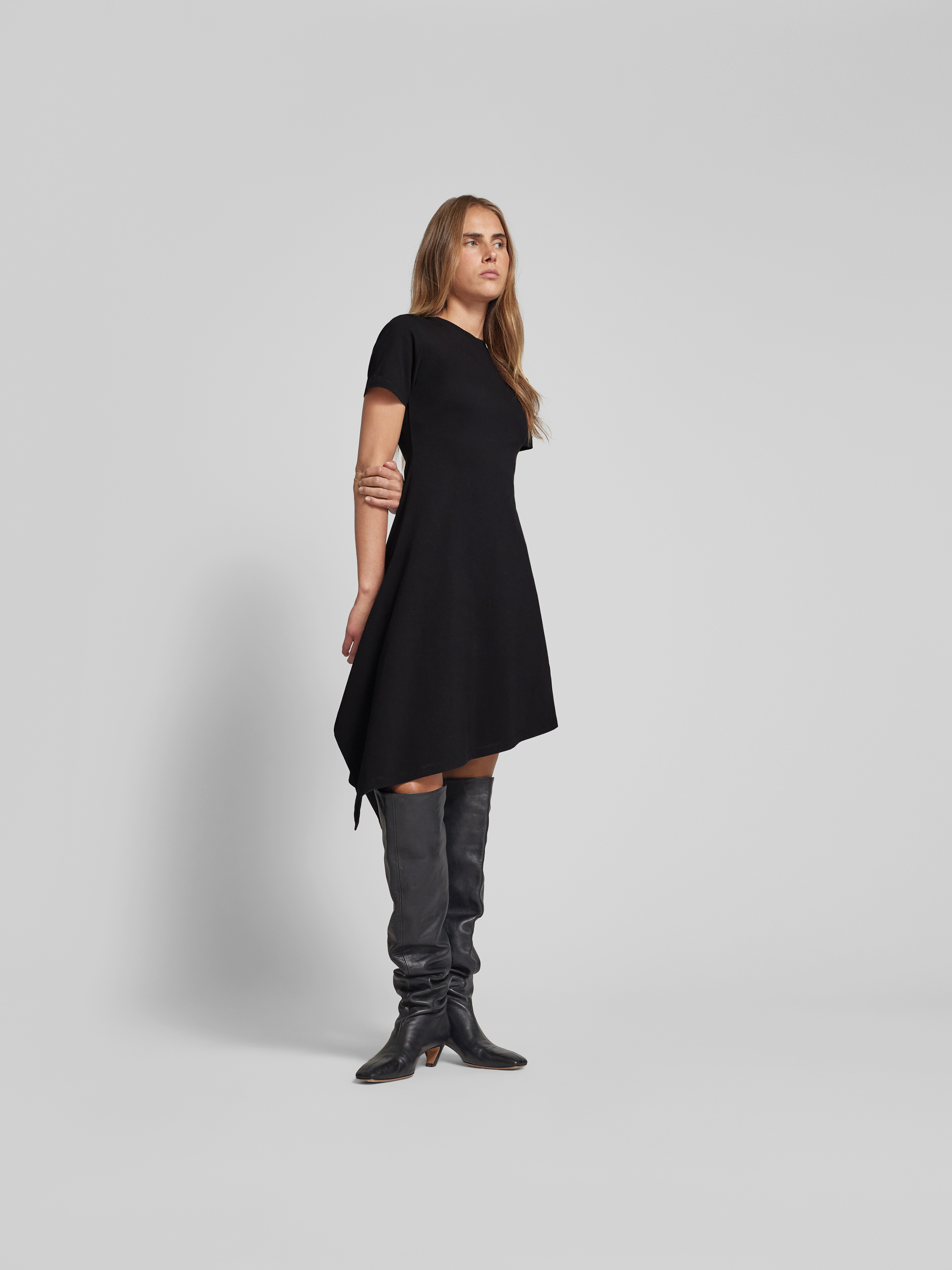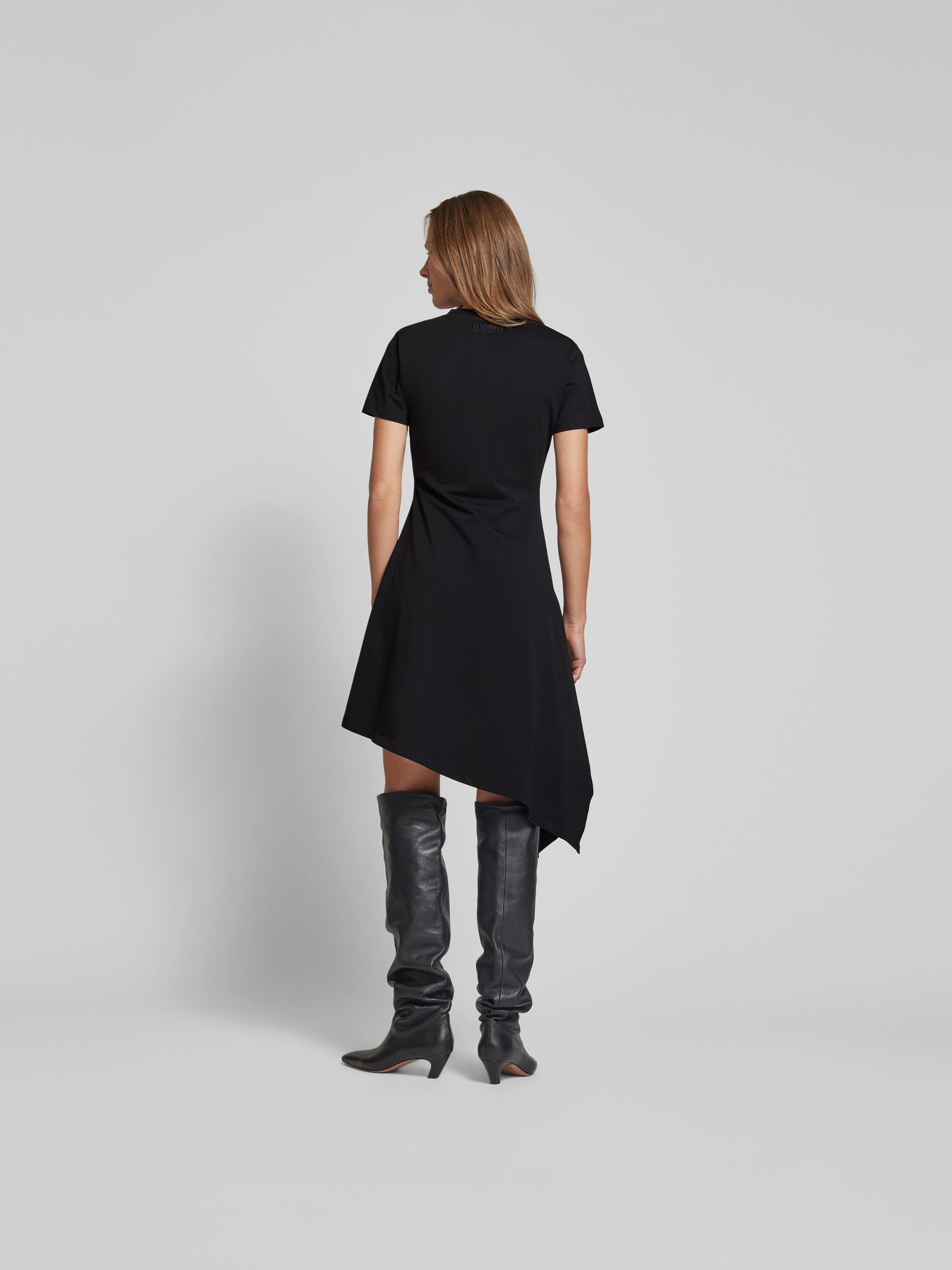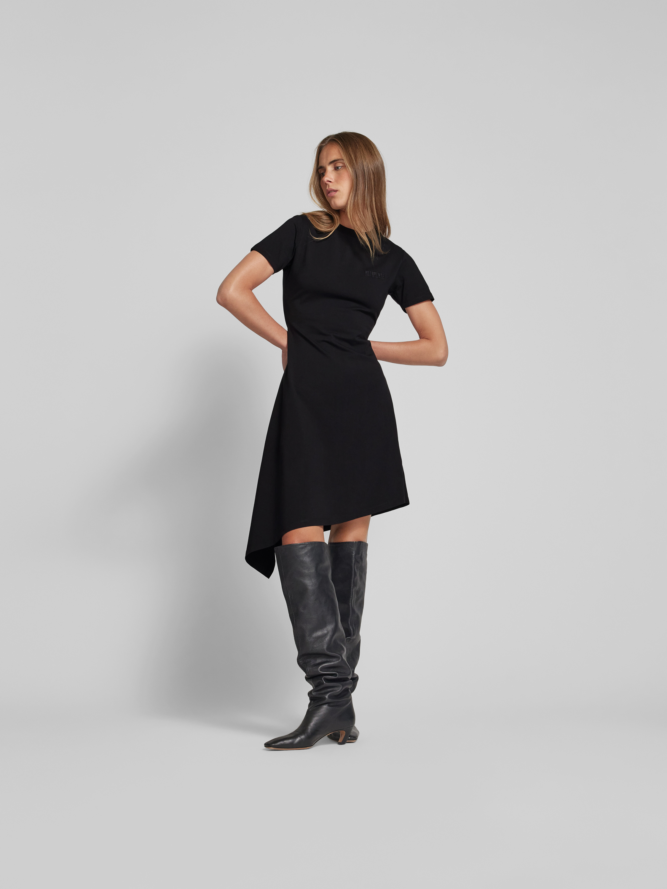 Das Damen T-Shirt-Kleid von VETEMENTS zeichnet sich durch eine taillierte Passform und ein asymmetrisches Design aus, wodurch es angenehm sitzt und Bewegung zulässt. Der Baumwoll-Elasthan-Mix sorgt für ein weiches Tragegefühl und erhält die Form auch nach längerem Tragen. Das dezente Label-Stitching rundet den modernen Gesamteindruck ab.