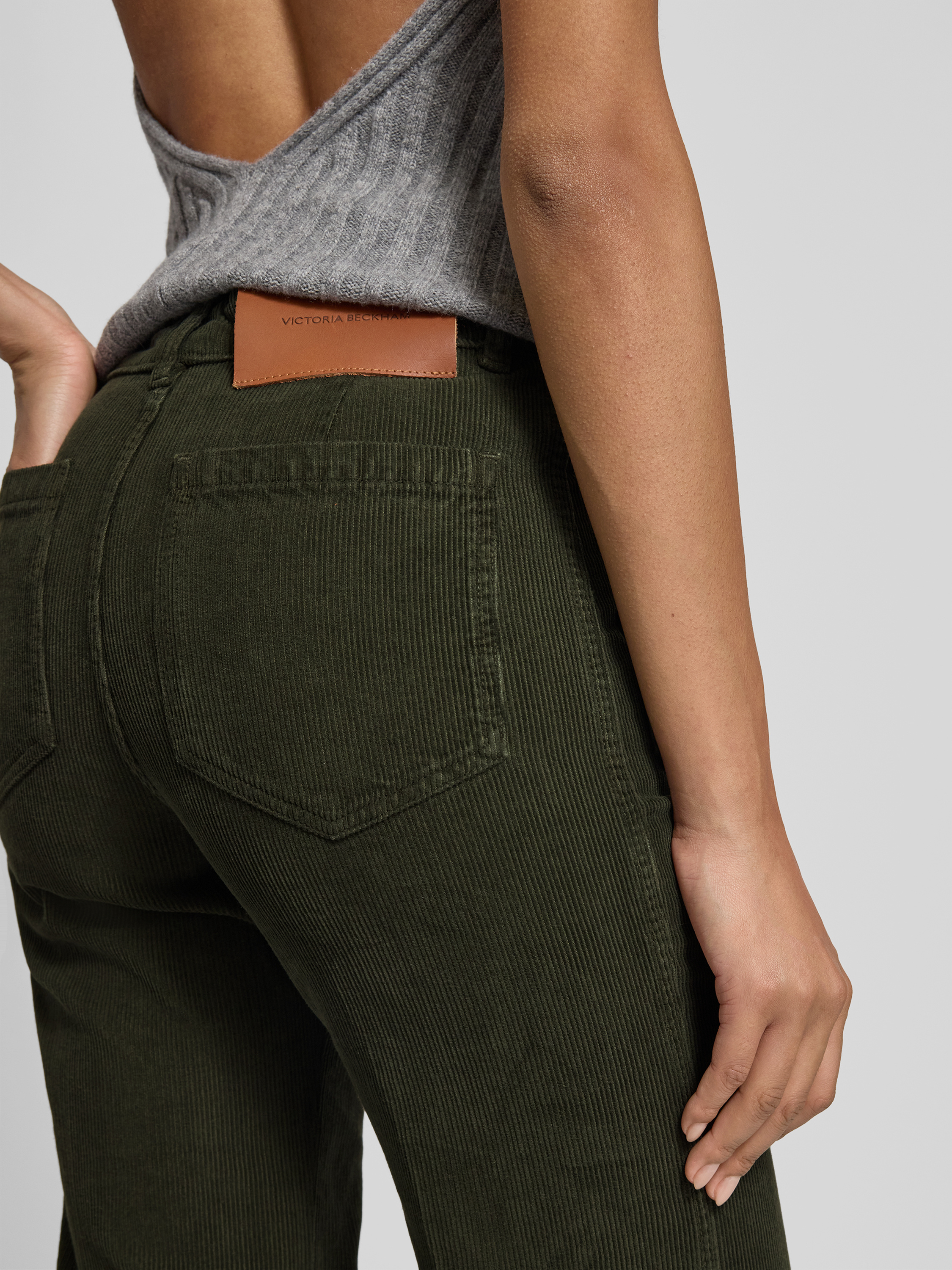 Die Hose High Rise Wide Fit Cordhose von Victoria Beckham präsentiert sich aus reiner Baumwolle in markanter Cord-Struktur. Durch den weiten Schnitt entsteht ein legeres Tragegefühl, das Bewegungsfreiheit mit einem entspannten Look verbindet. Praktische Eingriff- und Gesäßtaschen runden das Modell funktional ab.
