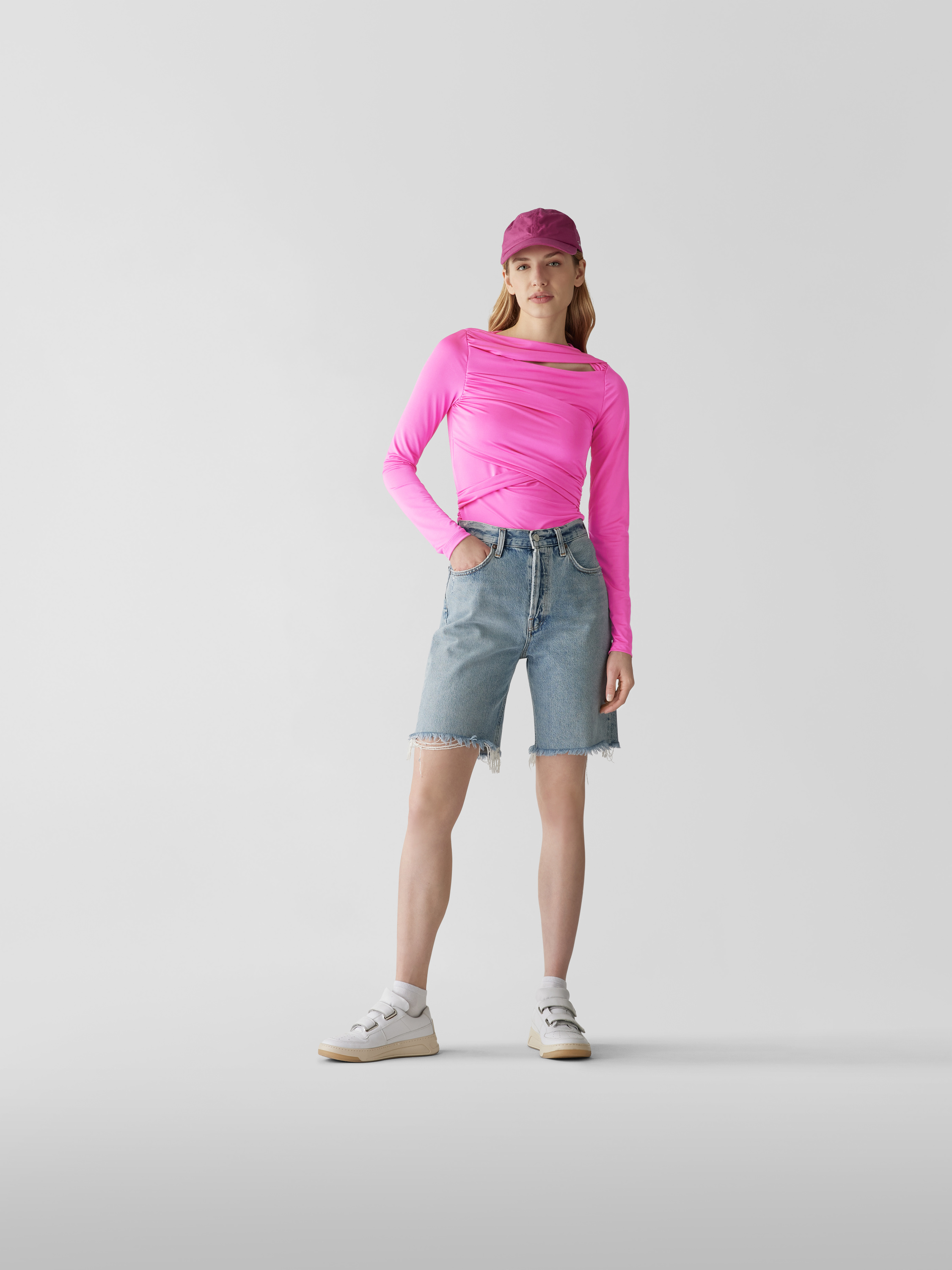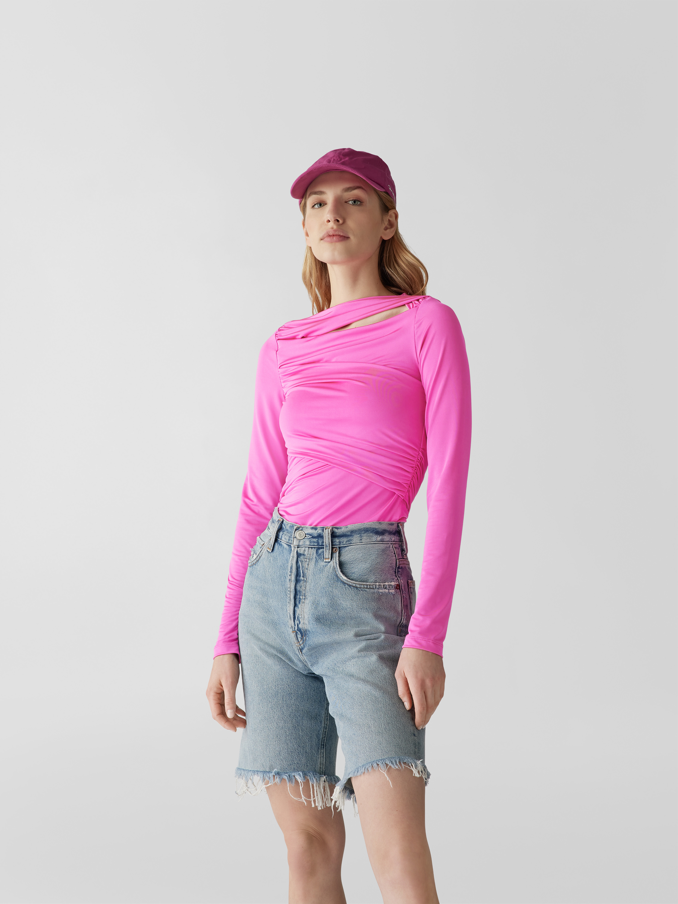 Das Damen Longsleeve von Victoria Beckham schmiegt sich durch seinen elastischen Material-Mix angenehm an die Silhouette und betont eine feminine Linie. Ein markanter Square-Neck-Ausschnitt sowie das Cut Out setzen gezielt Akzente, während der dezente Zierbesatz das Design abrundet. So eignet sich das Longsleeve mit Cut Out für vielseitige Kombinationen.