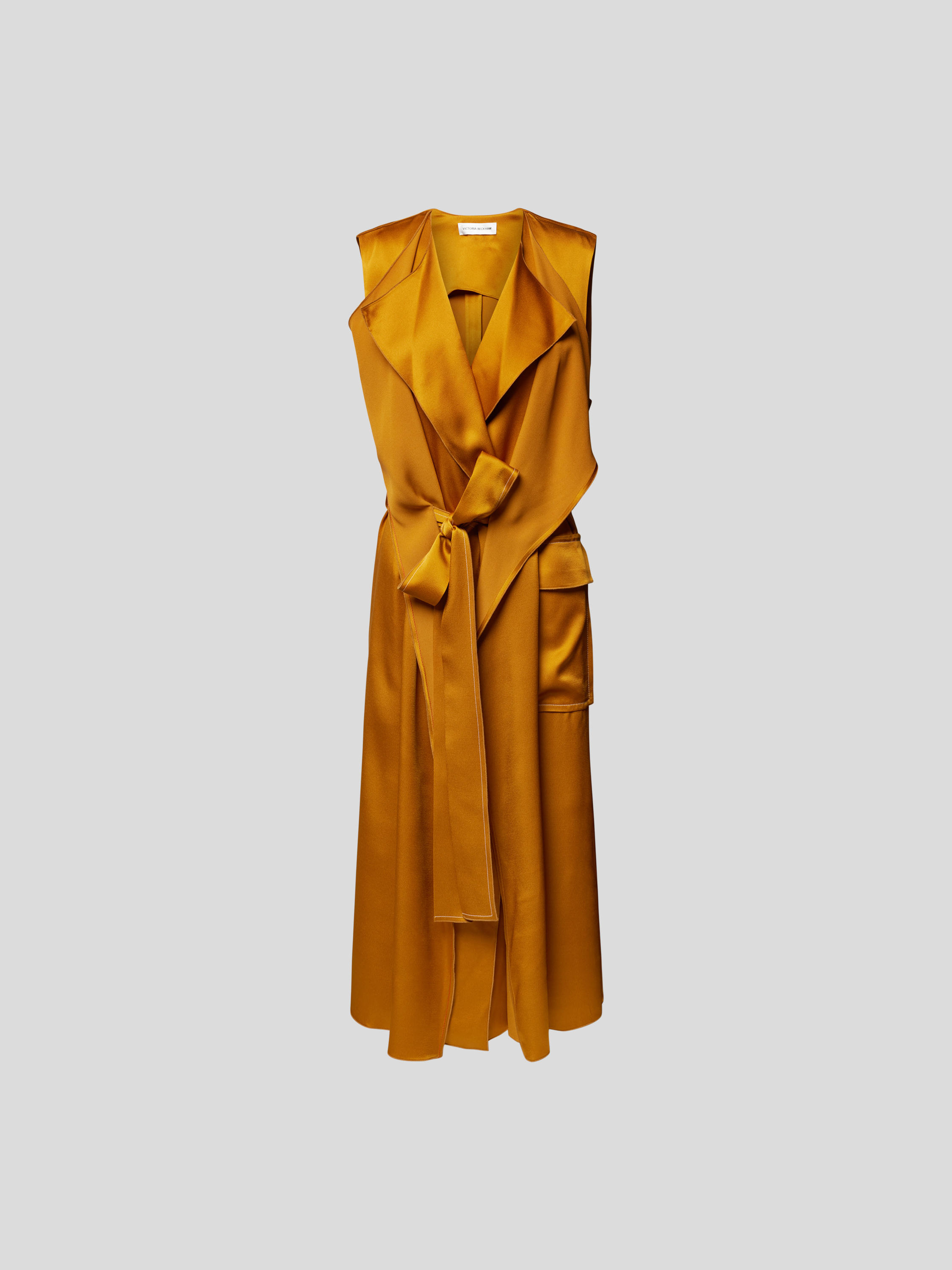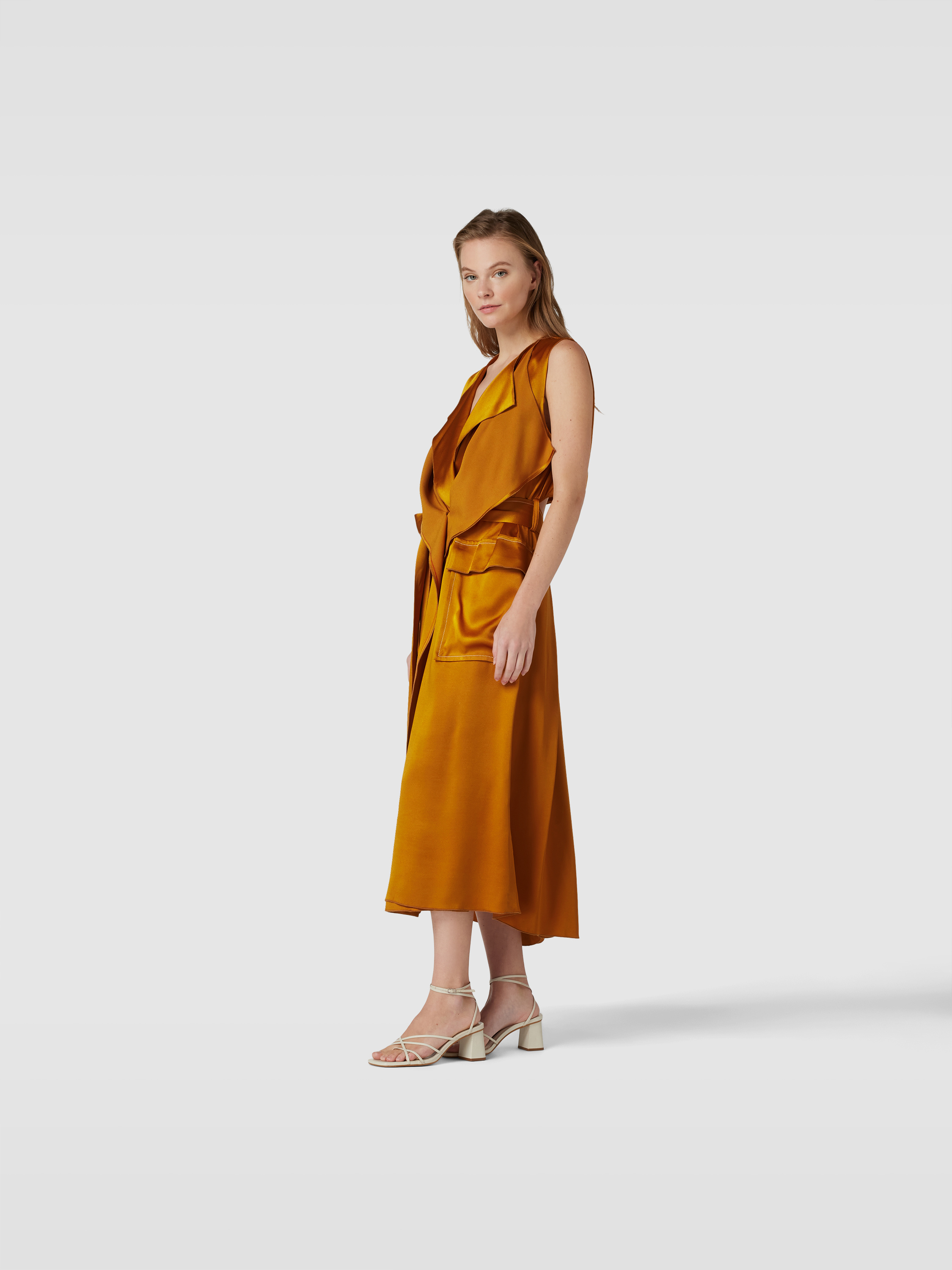 Das Maxikleid mit Eingrifftasche von Victoria Beckham zeigt sich mit geradem Schnitt und ärmellosem Design, wodurch Bewegungsfreiheit entsteht. Durch den feinen Satin erhält das Kleid einen geschmeidigen Fall, der angenehm auf der Haut liegt. Eine praktische Tasche rundet das Gesamtbild funktional ab.