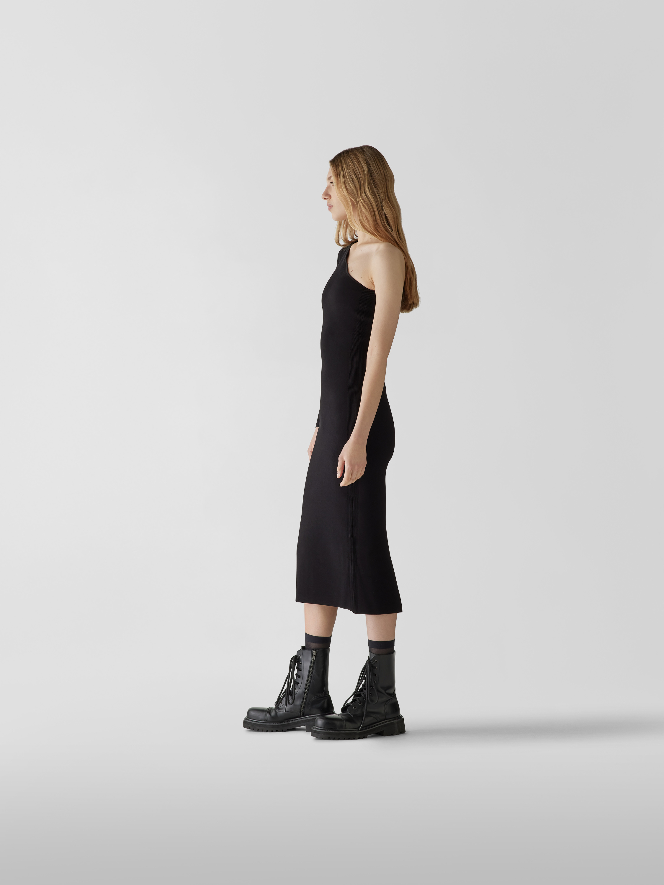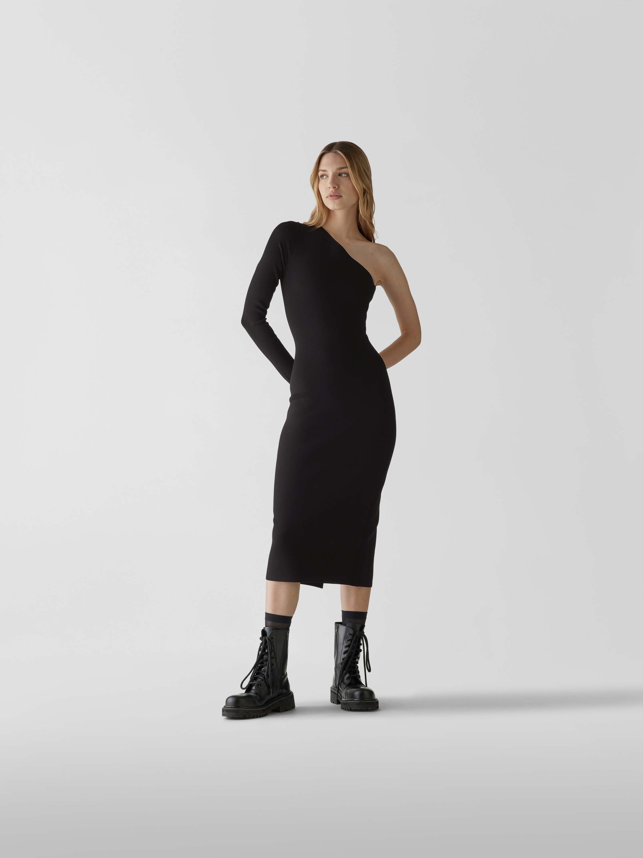 Das Damen Midikleid von Victoria Beckham fällt durch seinen eng anliegenden Schnitt und den modernen One-Shoulder-Look ins Auge. Der Ripp-Einsatz setzt dezente Akzente, während der tiefe Gehschlitz für Bewegungsfreiheit sorgt. Dank Viskose-Elasthan-Mix schmiegt sich das Midikleid angenehm an.