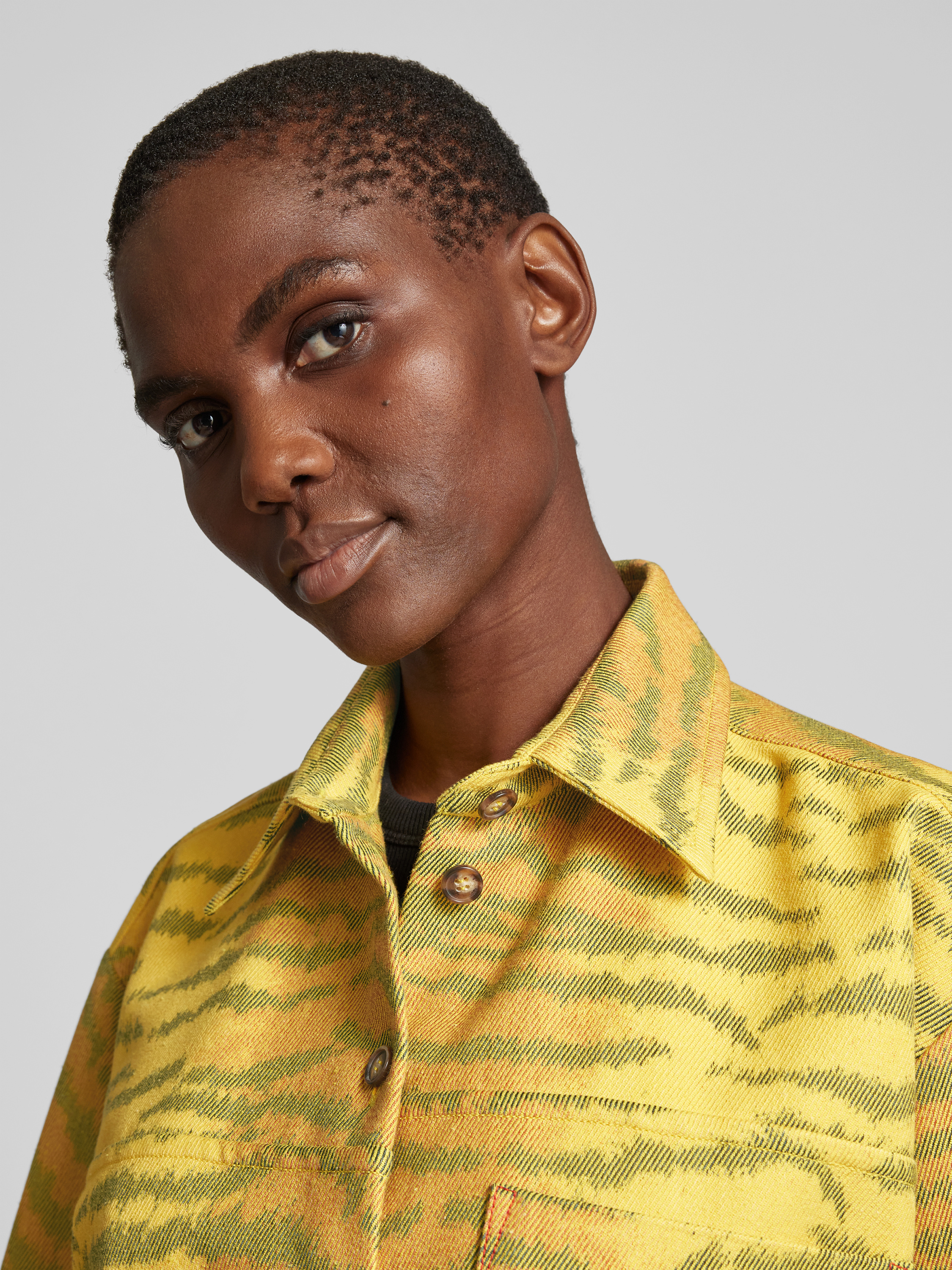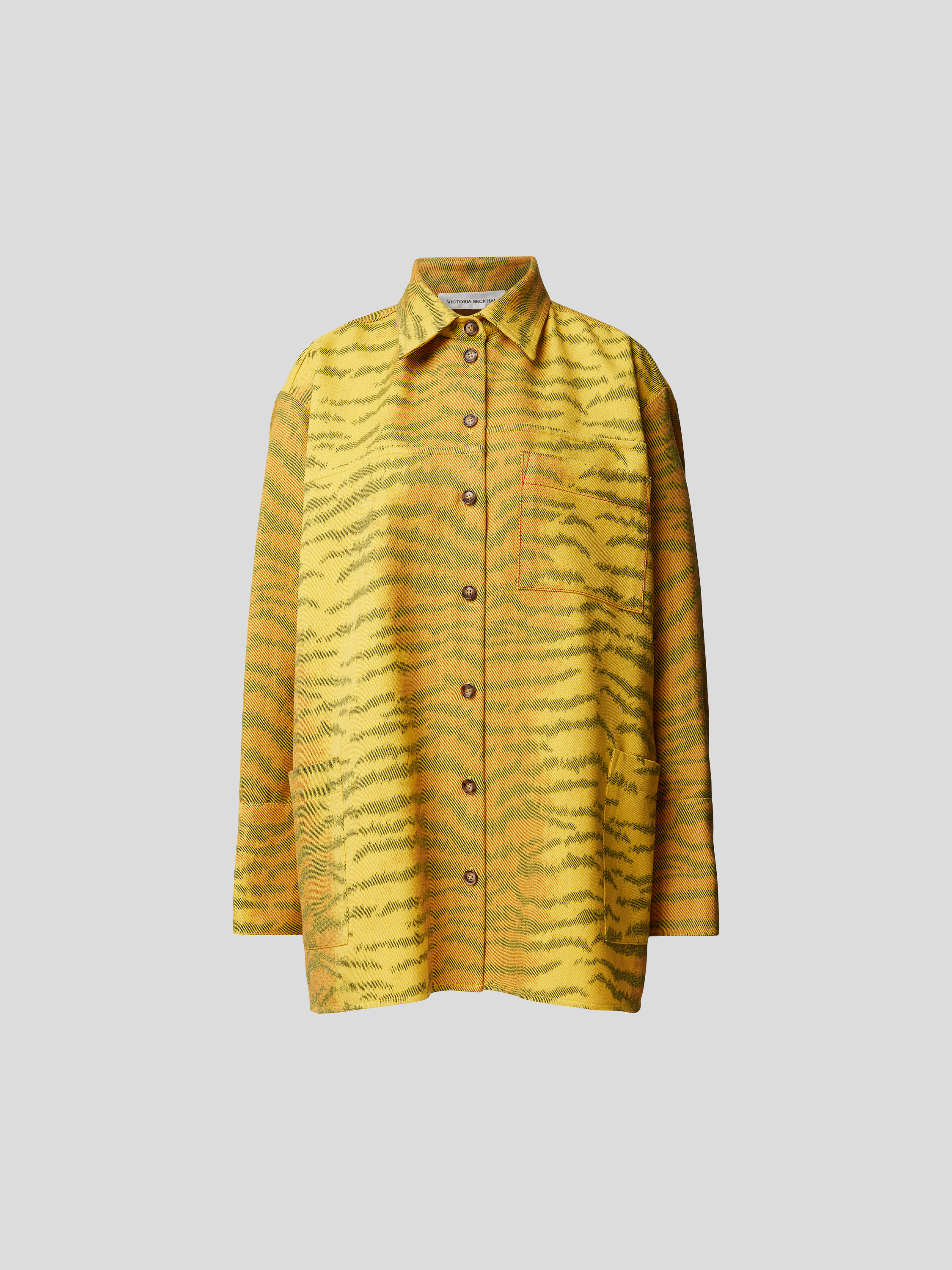 Victoria BeckhamOversized Hemdbluse mit Animal-Print in hellgelb melange