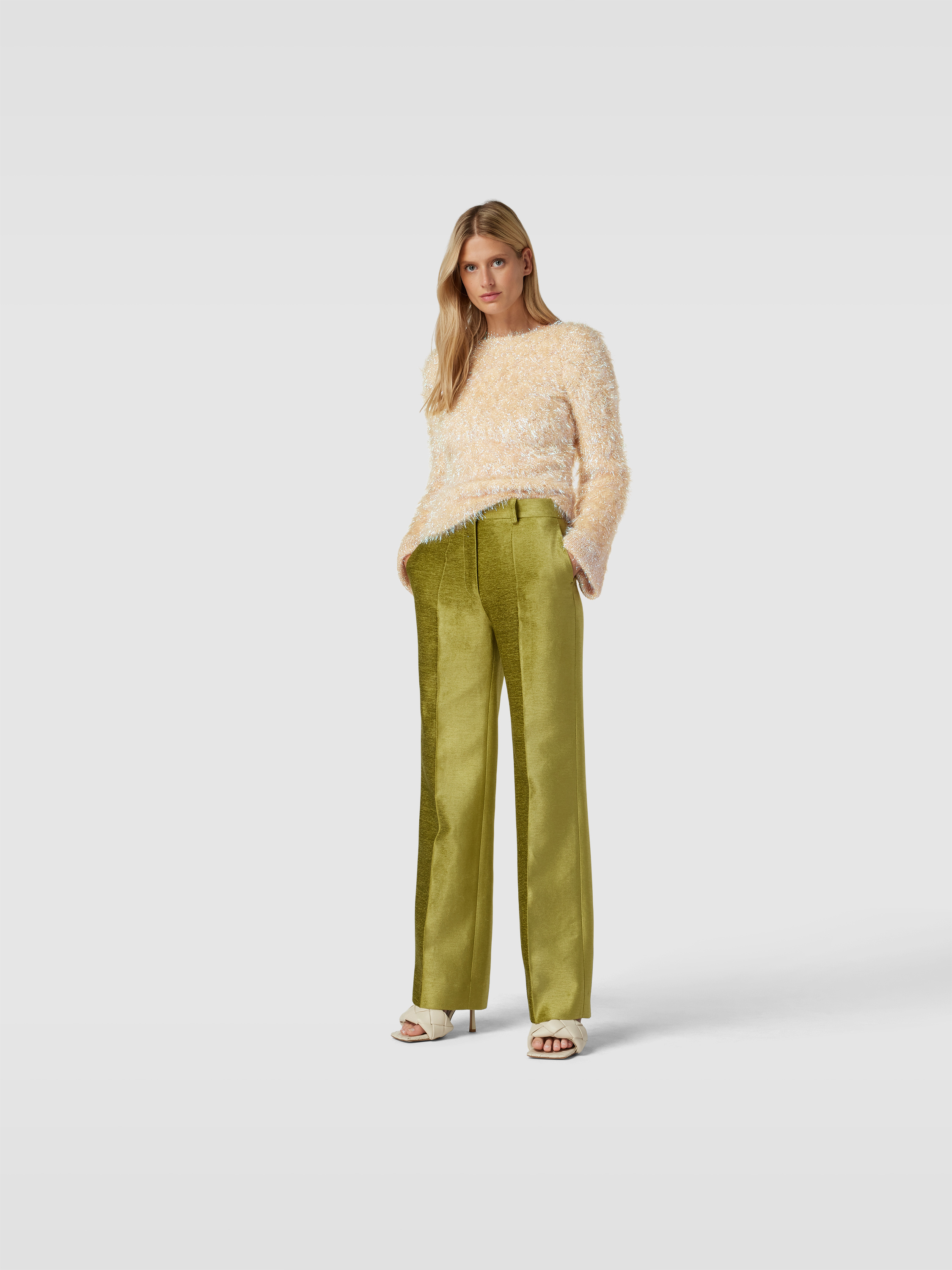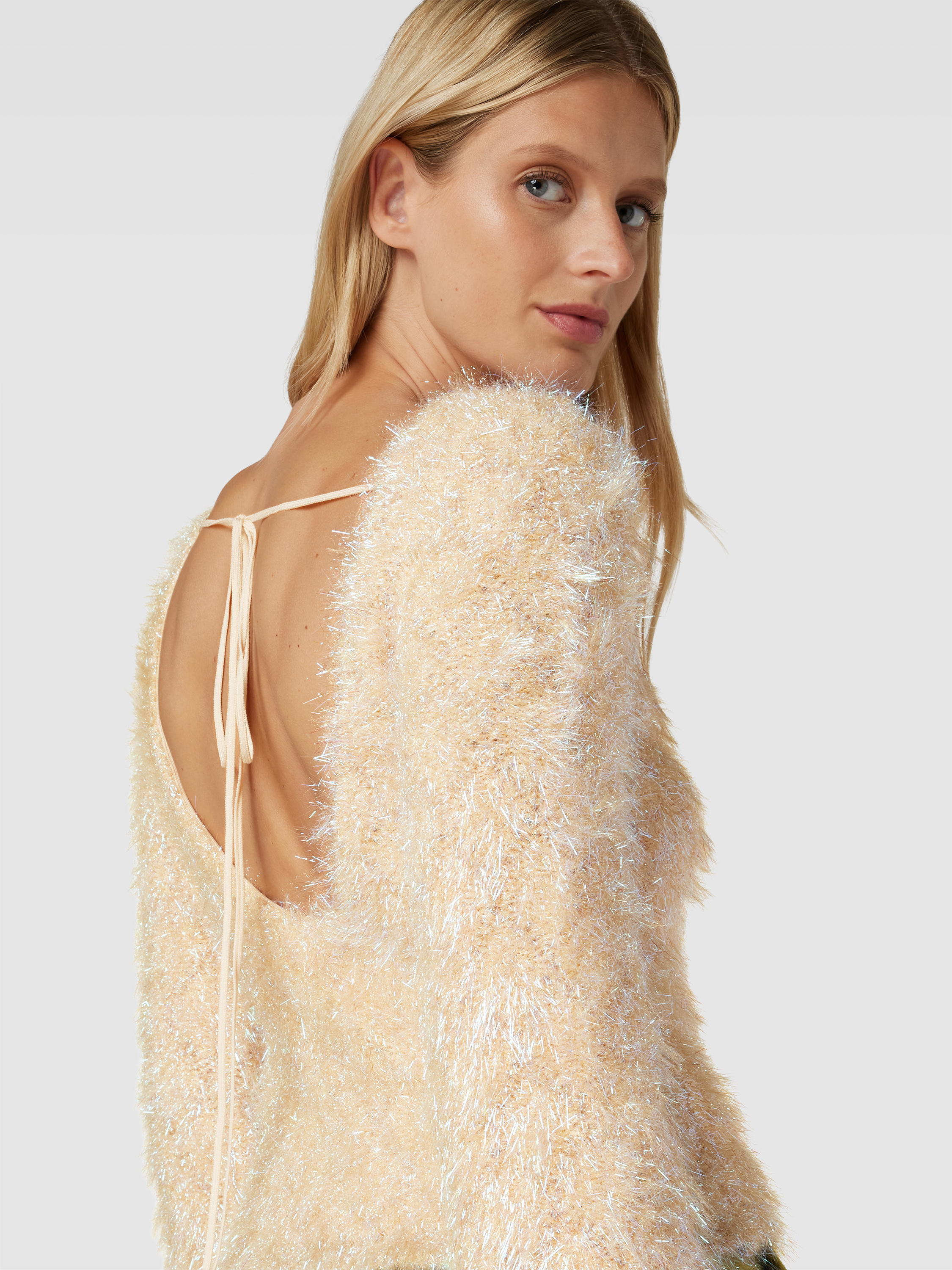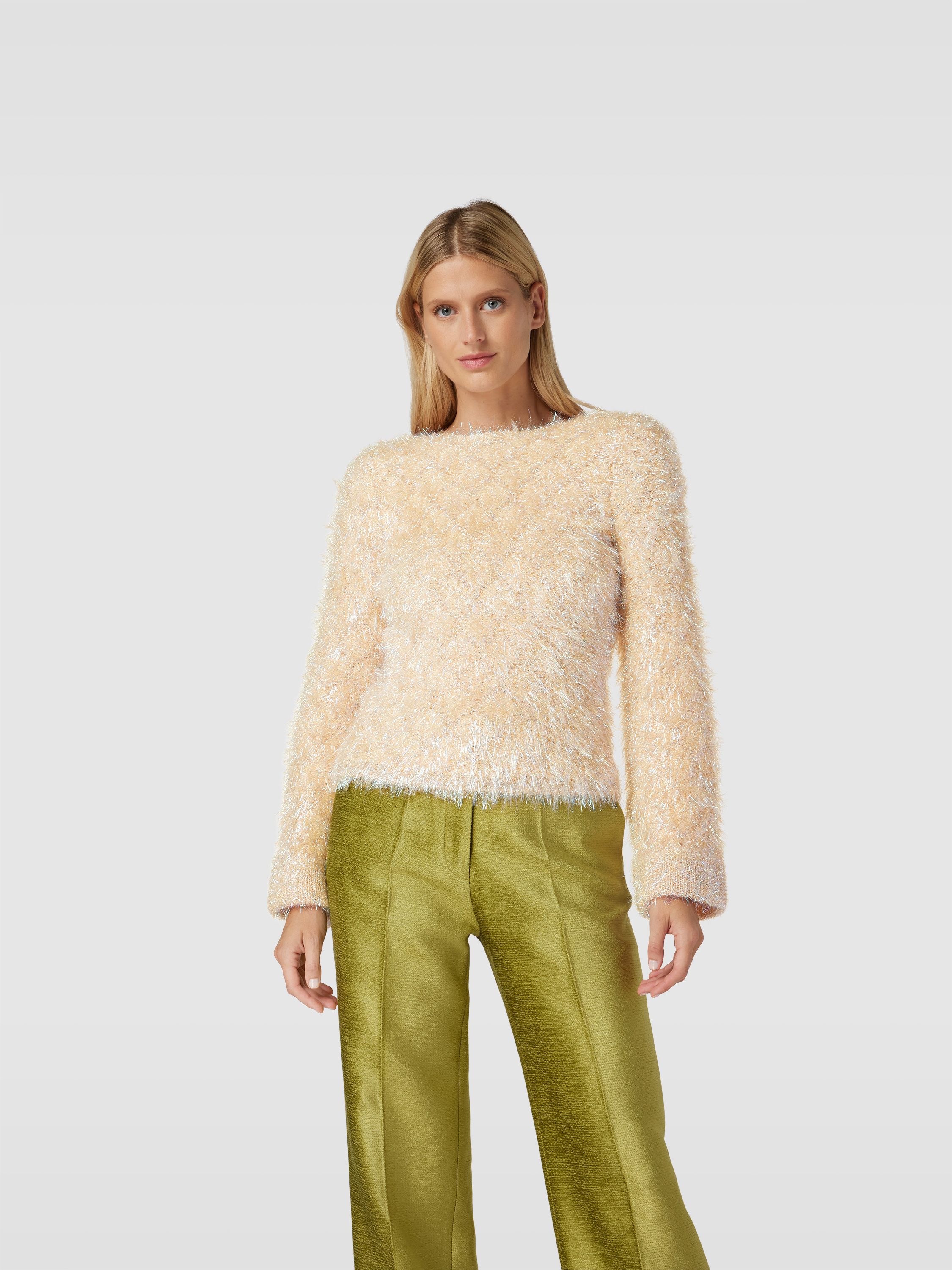 Der Damen Pullover von Victoria Beckham fällt durch seine körpernahe Passform auf, wodurch sich der Schnitt angenehm an die Silhouette schmiegt. Das Effektgarn in Fell-Optik sorgt für eine interessante Haptik, während der dezente Rundhalsausschnitt dem unifarbenen Design eine ruhige Note verleiht. Dank des Material-Mix mit Viskose-Anteil trägt sich der Pullover mit Viskose-Anteil angenehm leicht.