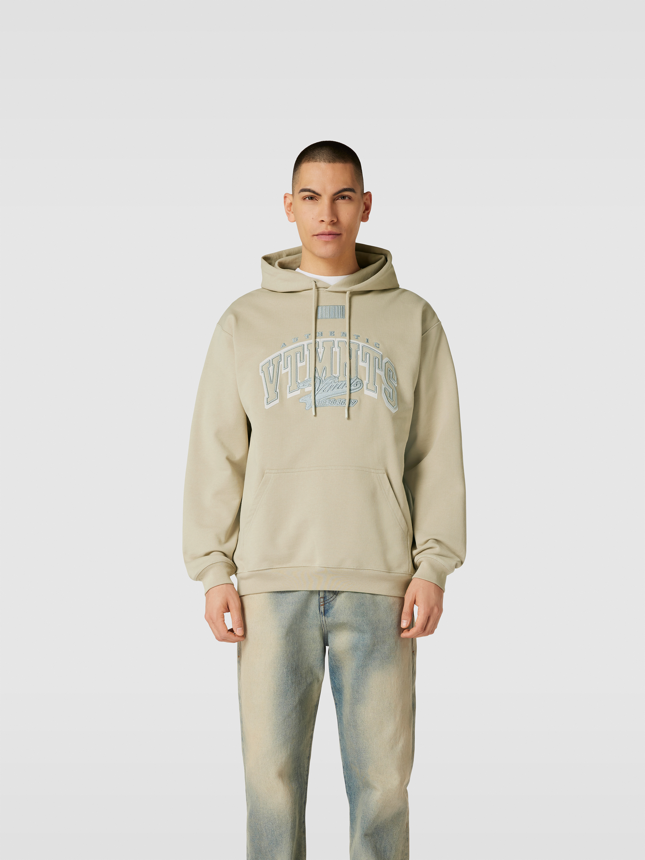 Der Herren Hoodie von VETEMENTS legt mit lockerer Passform und weichem Baumwoll-Elasthan-Mix Wert auf angenehmen Tragekomfort im Alltag. Durch die Kapuze und die großzügige Känguru-Tasche lassen sich verschiedene Situationen flexibel meistern. Das prägnante Label-Stitching rundet den sportlichen Look dezent ab.