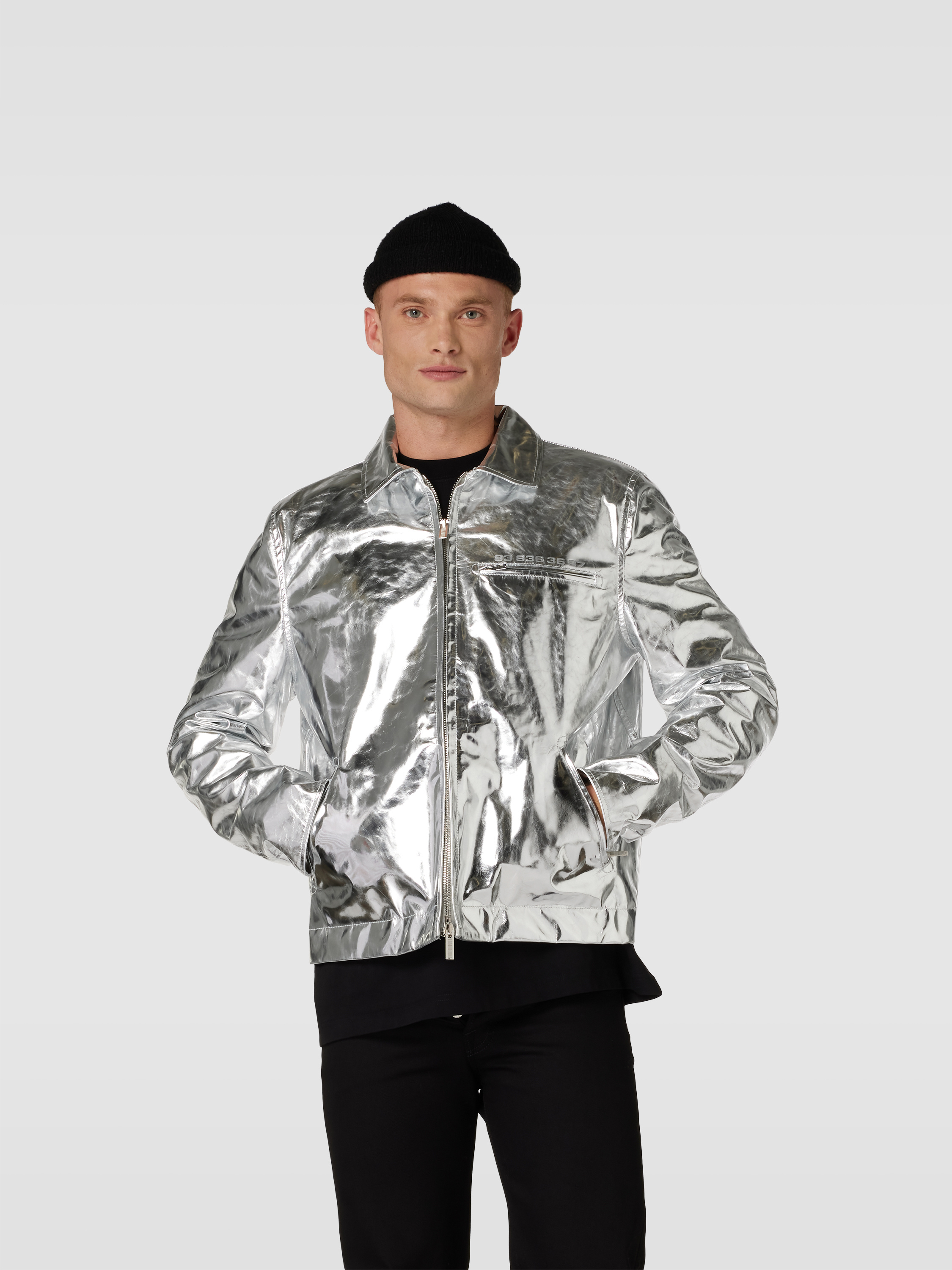 Die Herren Lederjacke von VETEMENTS fällt durch ihr echtes Leder und die lockere Passform auf, wodurch Bewegungsfreiheit erhalten bleibt. Ihr metallischer Schimmer setzt moderne Akzente und ergänzt unterschiedlichste Outfits. Mit ihrer markanten Optik eignet sich die Lederjacke aus echtem Leder in metallic für vielseitige Anlässe.