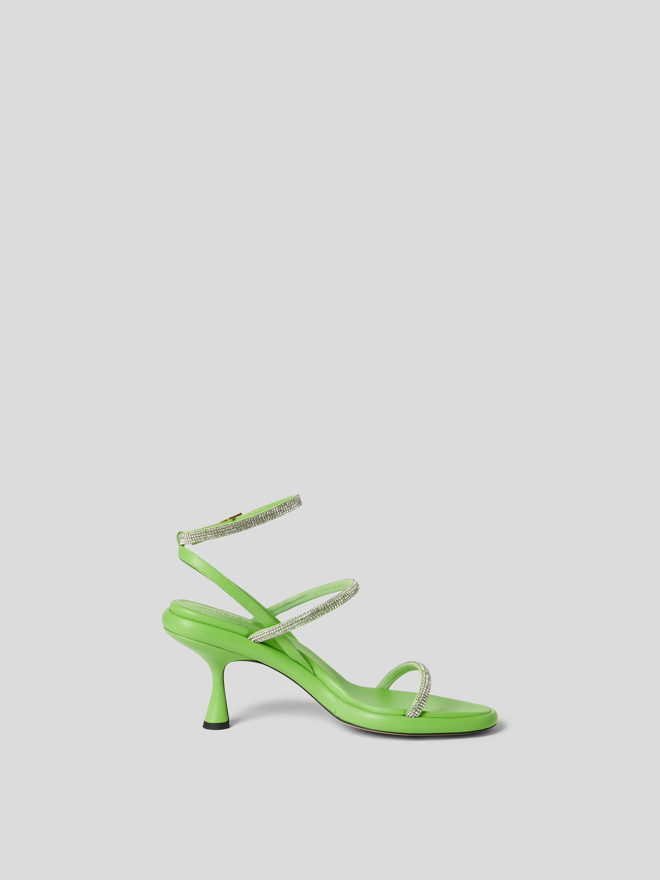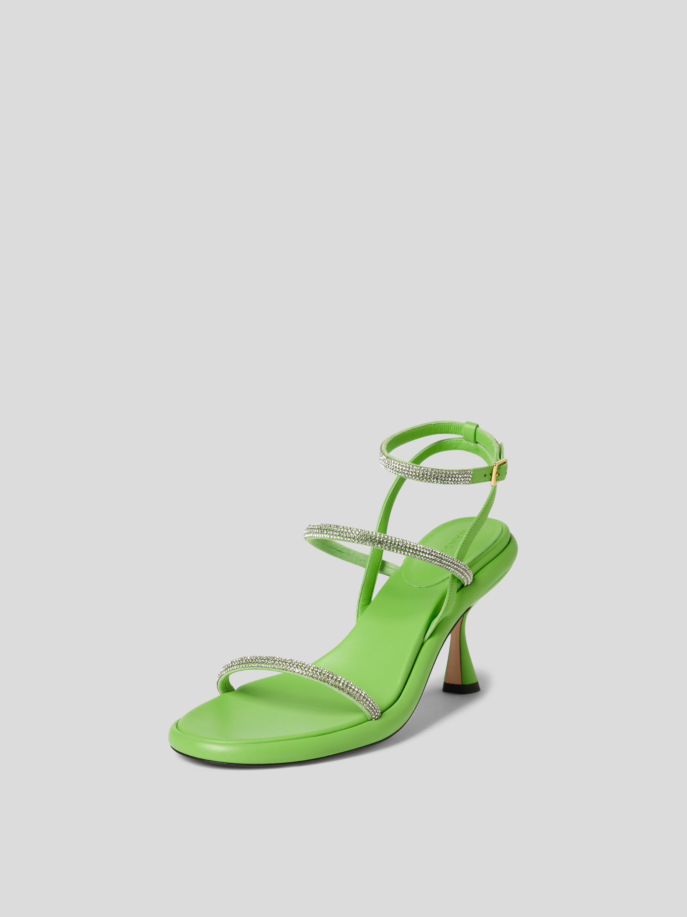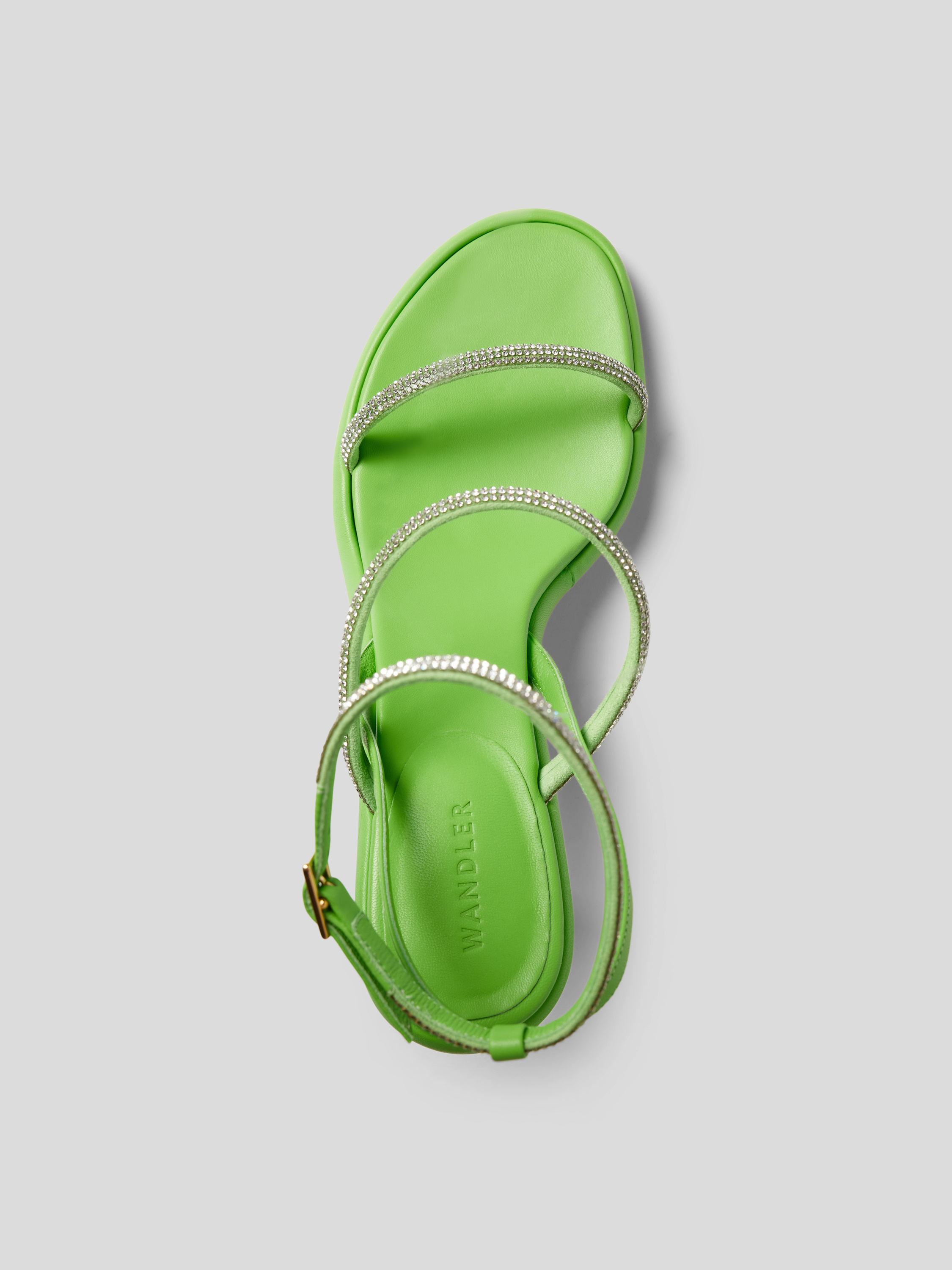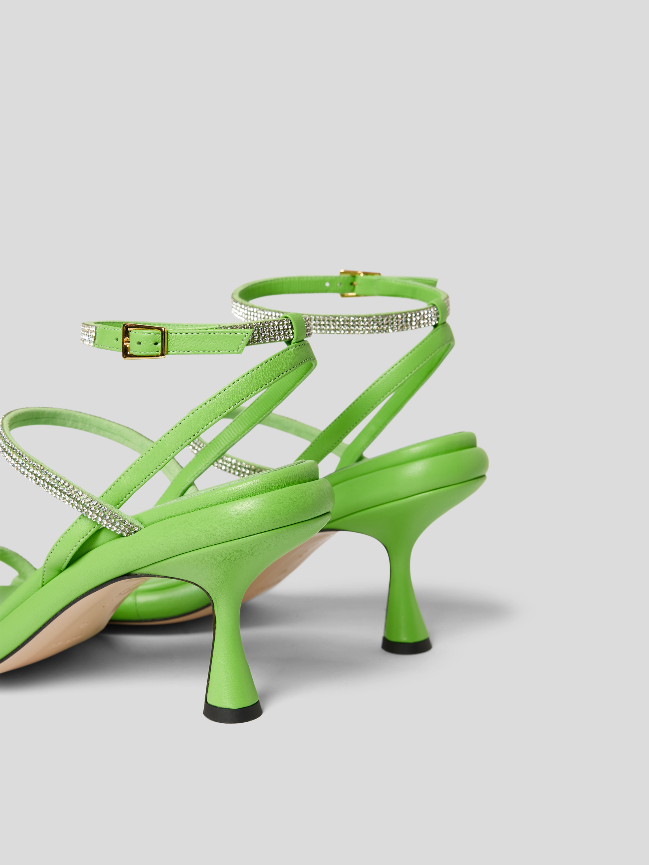 Die Sandalette aus Leder-Mix von Wandler Shoes verbindet ein elegantes Erscheinungsbild mit hochwertigem Leder und sorgfältigem Ziersteinbesatz. Durch den schmalen Pfennigabsatz entsteht eine feminine Silhouette, die den Fuß wirkungsvoll betont. So eignet sich dieses Modell für besondere Anlässe oder stilvolle Alltagsmomente.