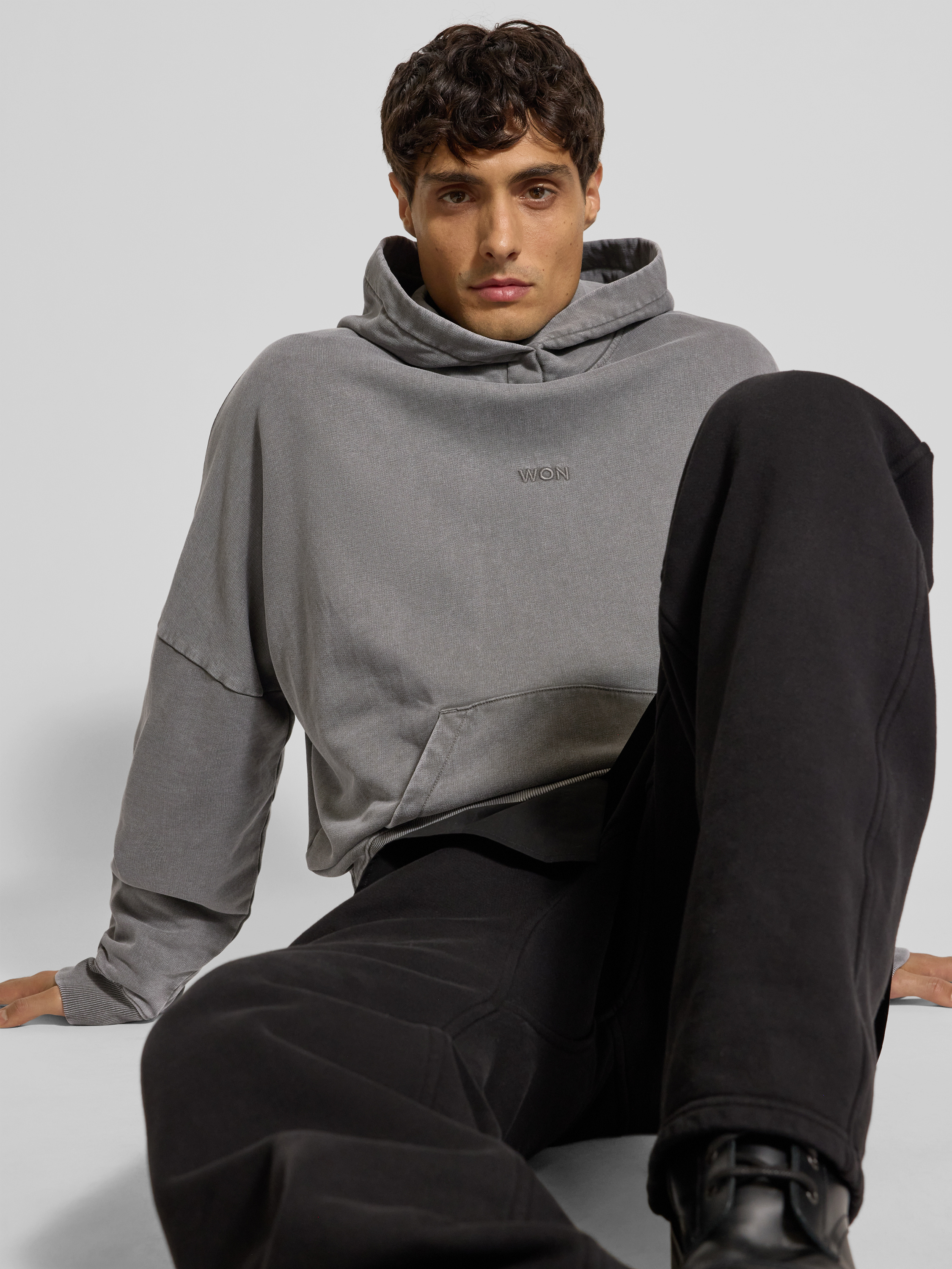 WON HUNDREDOversized Hoodie mit Logo-Stitching in mittelgrau