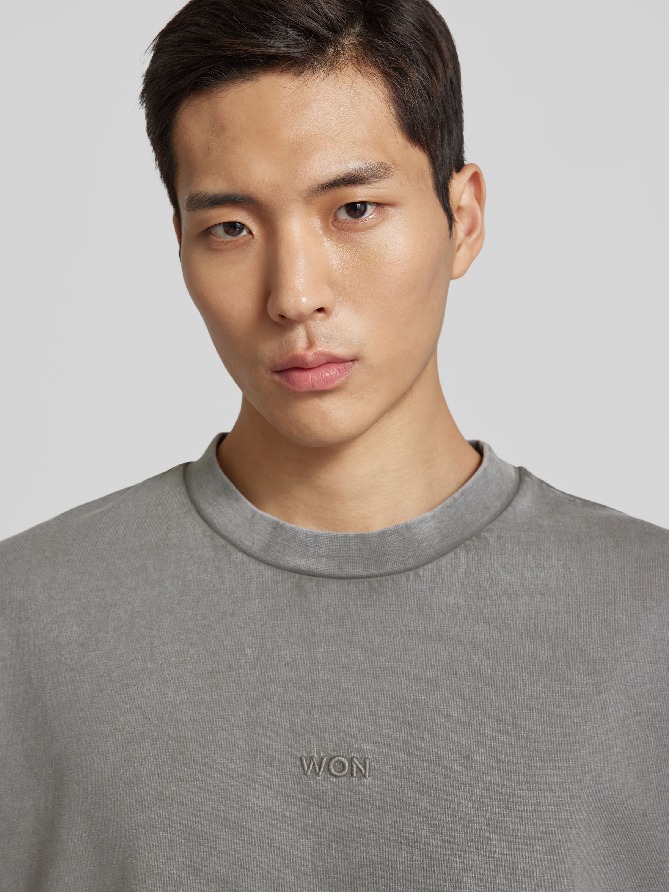 WON HUNDREDT-Shirt mit Label-Stitching in mittelgrau