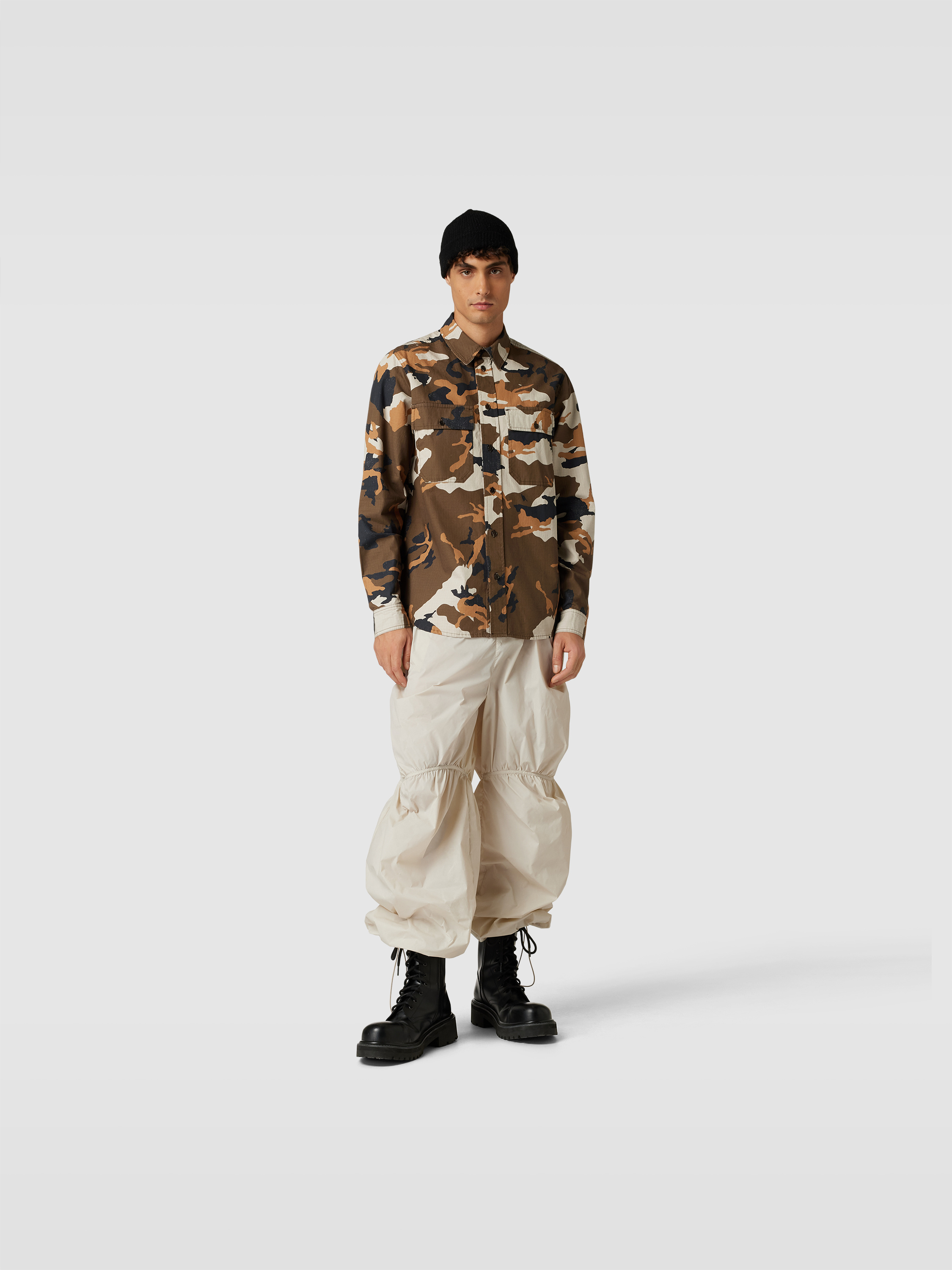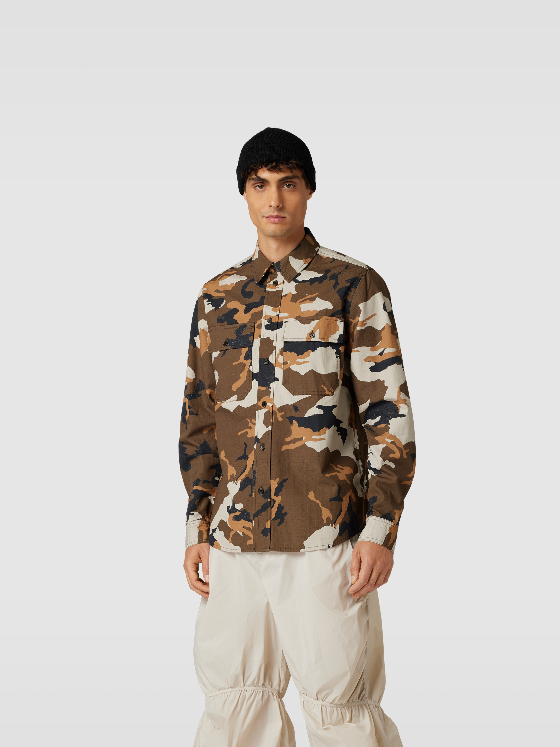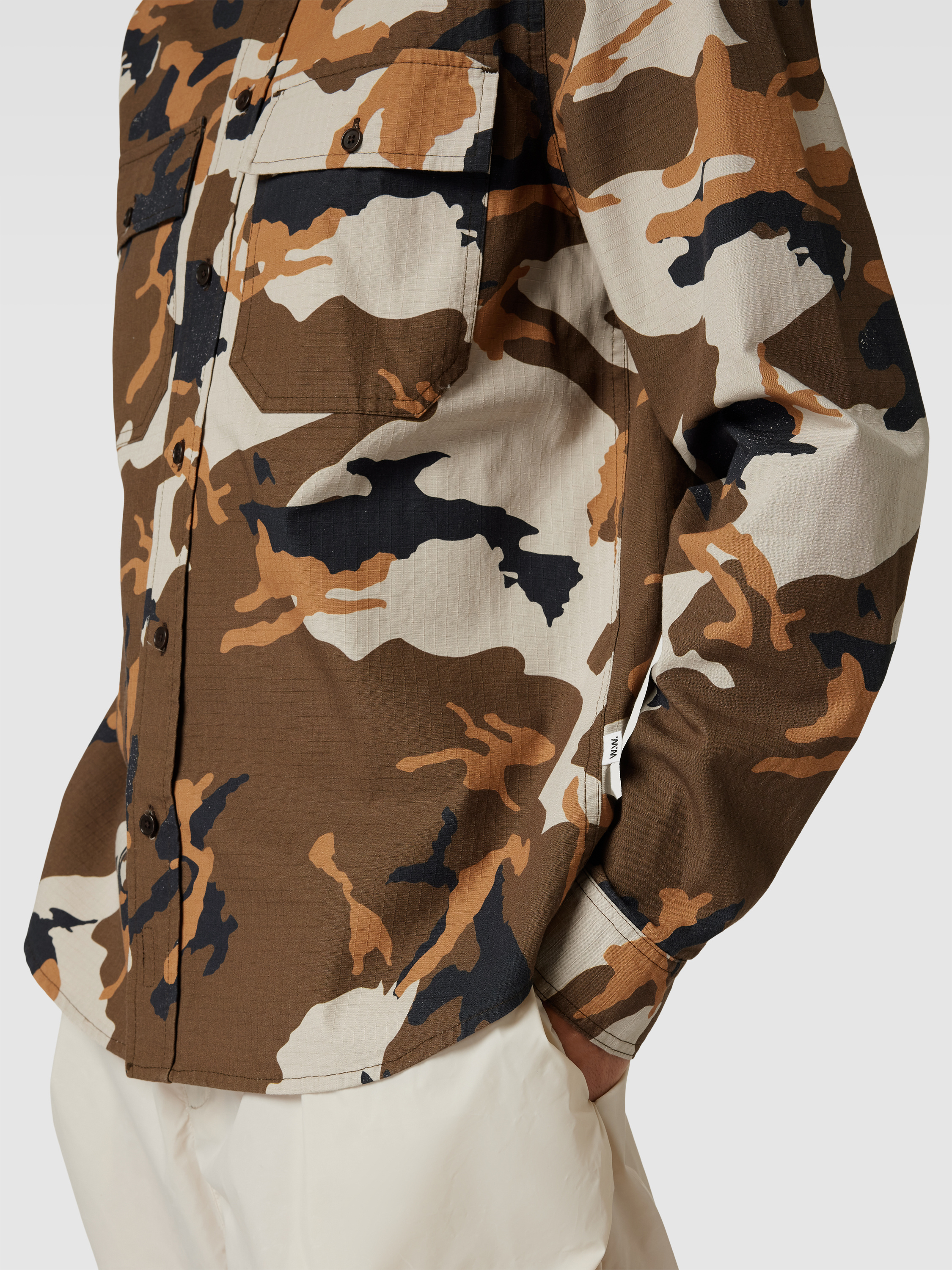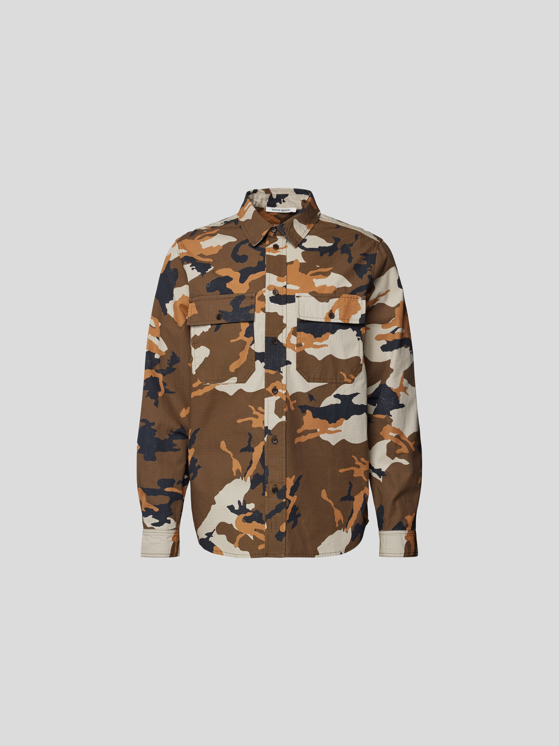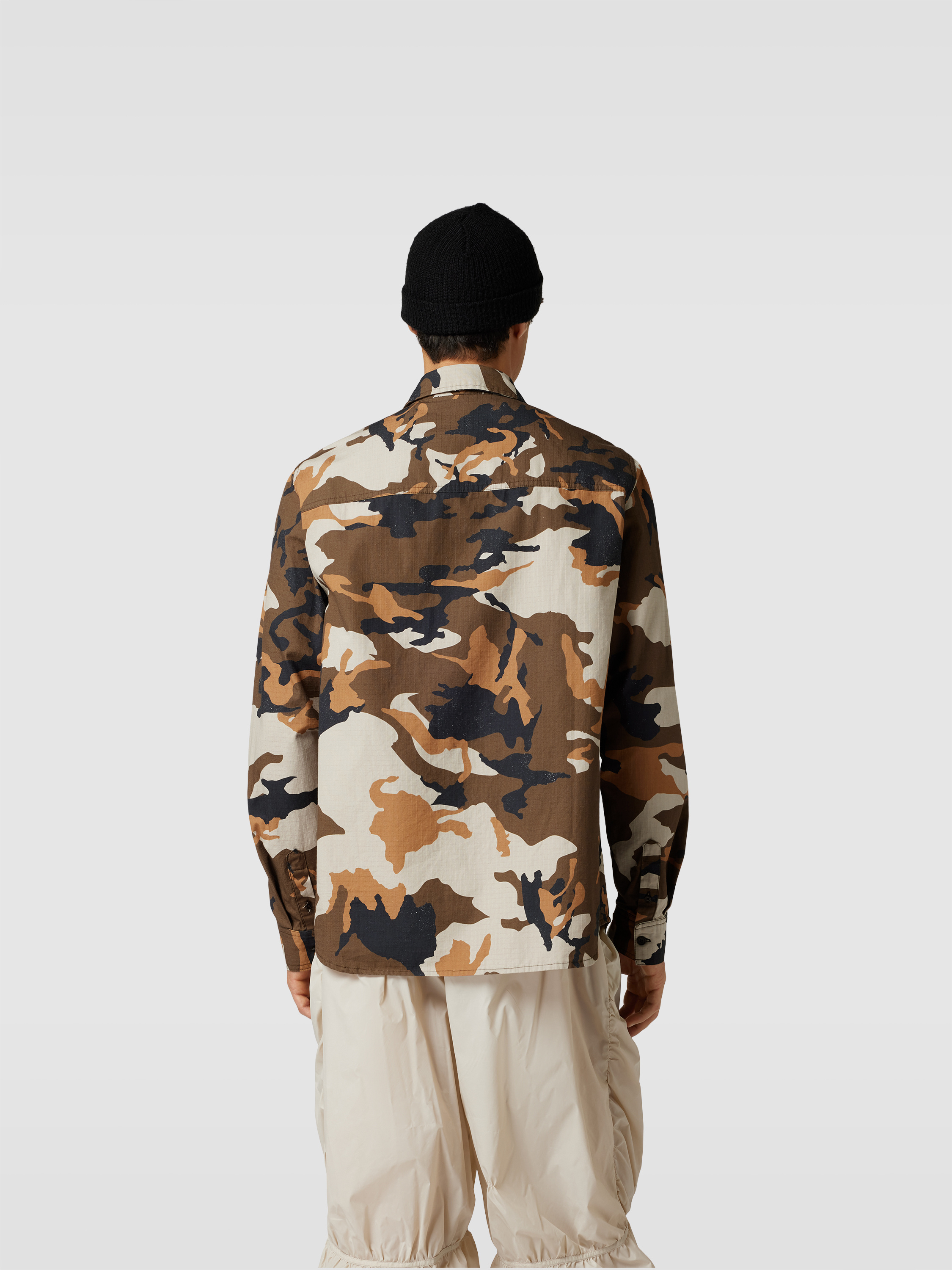 Das Freizeithemd mit Camouflage-Muster von WOOD WOOD zeigt sich in reiner Baumwolle und liegt angenehm auf der Haut. Durch den geraden Schnitt entsteht eine entspannte Silhouette, die vielseitig kombiniert werden kann. Das langärmelige Design eignet sich besonders für wechselhafte Tage.