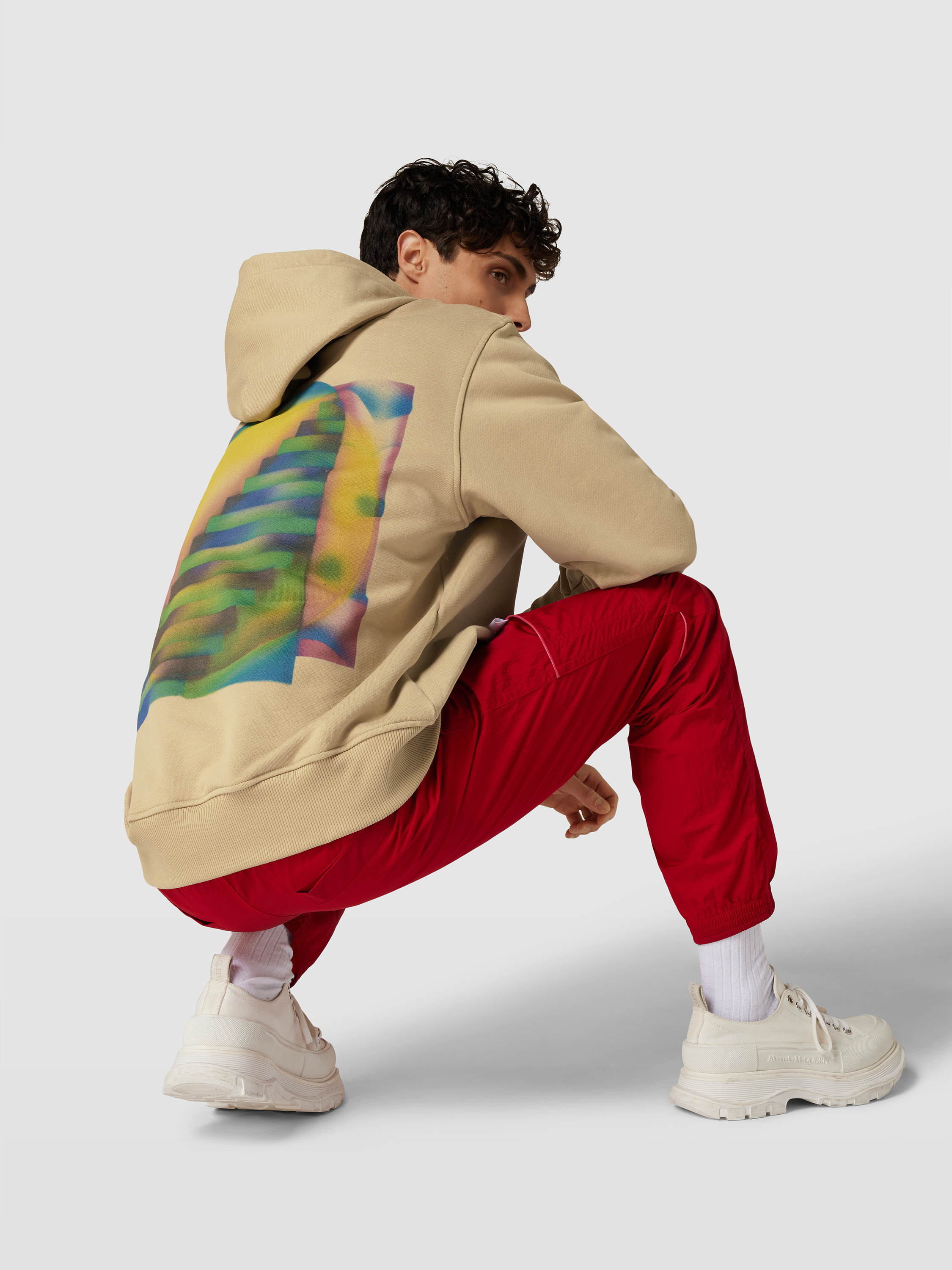 Der Herren Hoodie von WOOD WOOD zeigt sich in großzügigem Oversized-Schnitt und reiner Baumwolle, wodurch ein angenehmes Tragegefühl entsteht. Der markante Foto-Print setzt einen modernen Akzent, während die Känguru-Tasche praktische Details für den Alltag bereithält. Durch die Kapuze mit Tunnelzug bleibt der Look entspannt.