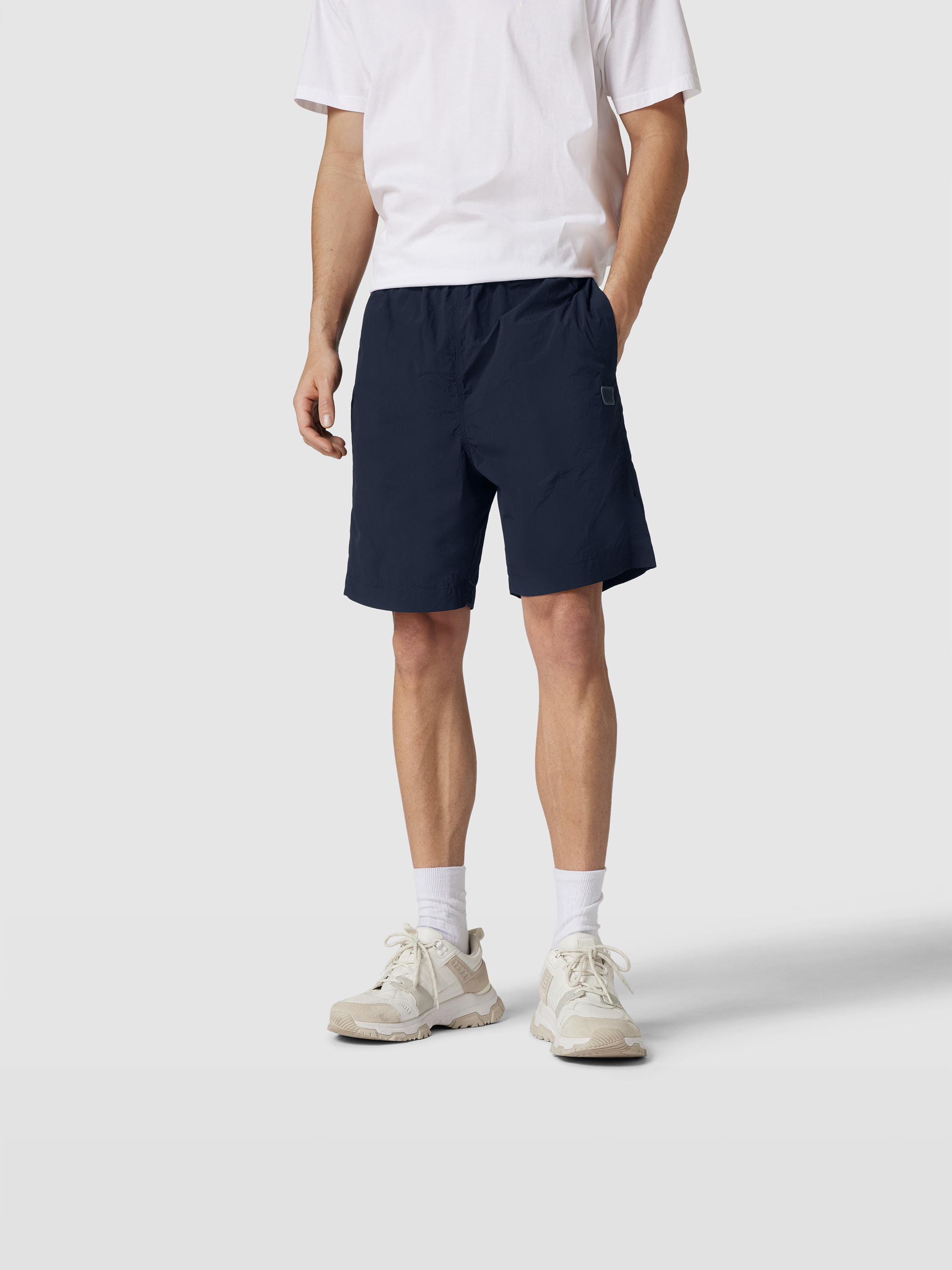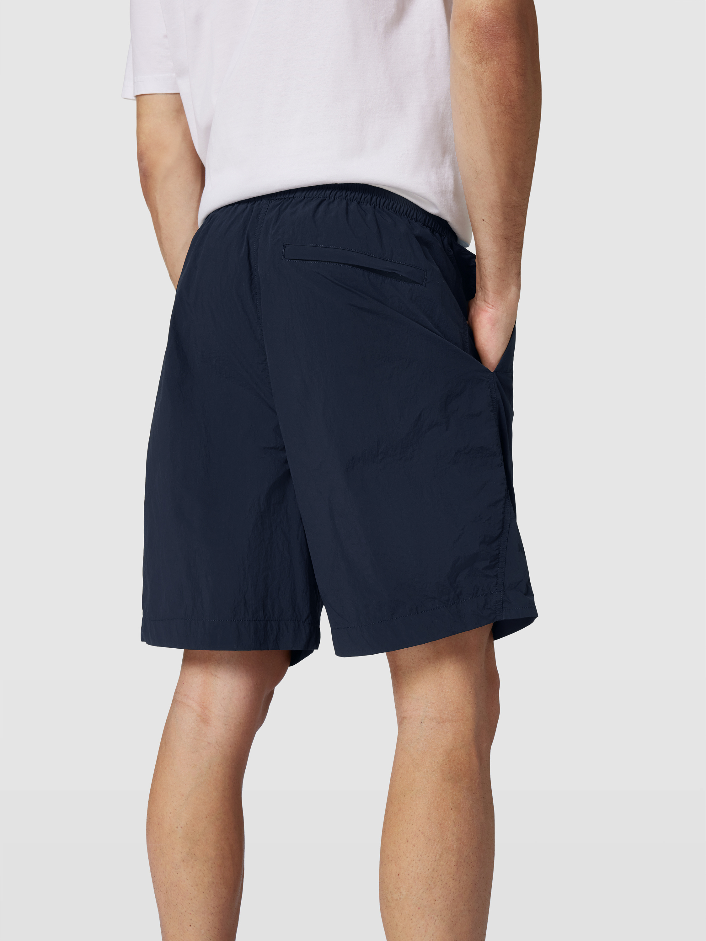 Die Herren Shorts von WOOD WOOD zeigen sich in glattem Stoff und lockerem Schnitt, wodurch ein angenehmes Tragegefühl entsteht. Durch den elastischen Bund sitzt die Shorts entspannt und bleibt flexibel im Alltag. Eingrifftaschen und ein dezenter Label-Patch runden das Gesamtbild funktional ab.