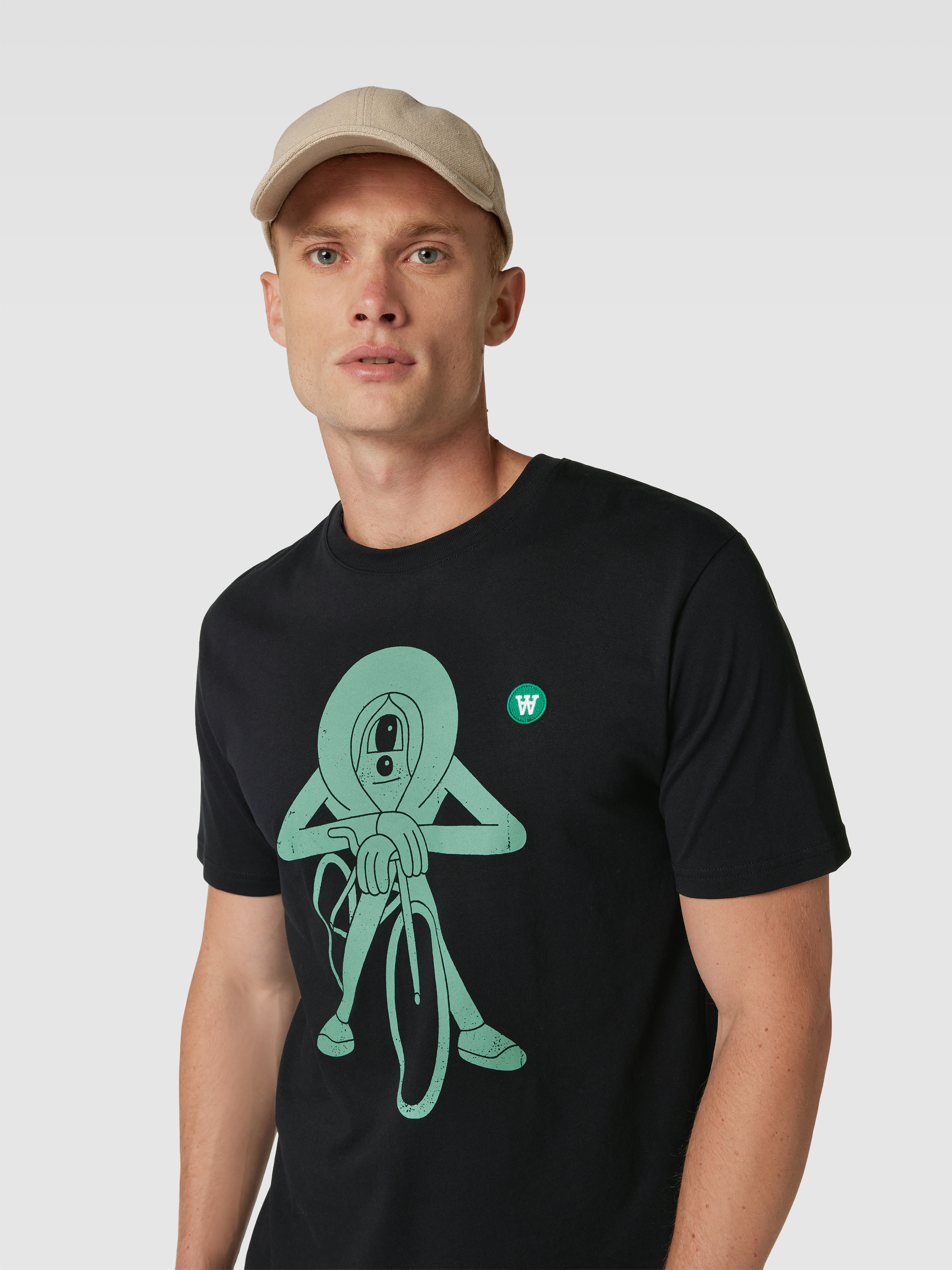 Das Herren-T-Shirt von WOOD WOOD aus reiner Baumwolle fühlt sich angenehm auf der Haut an und zeichnet sich durch eine gerade Passform aus. Ein dezentes unifarbenes Design wird durch einen modernen Motiv-Print belebt. So eignet sich das Shirt unkompliziert für lässige Alltagskombinationen.
